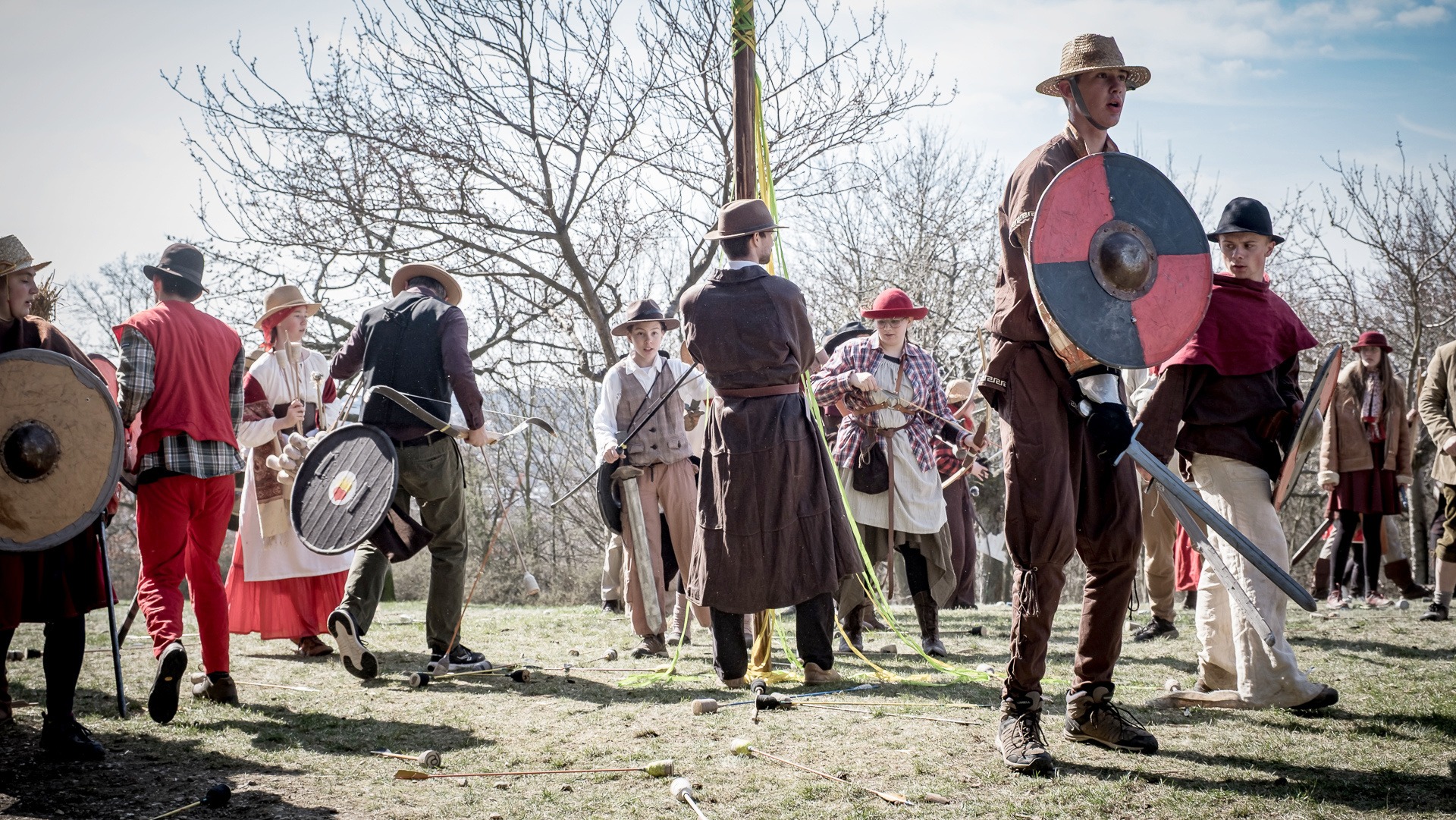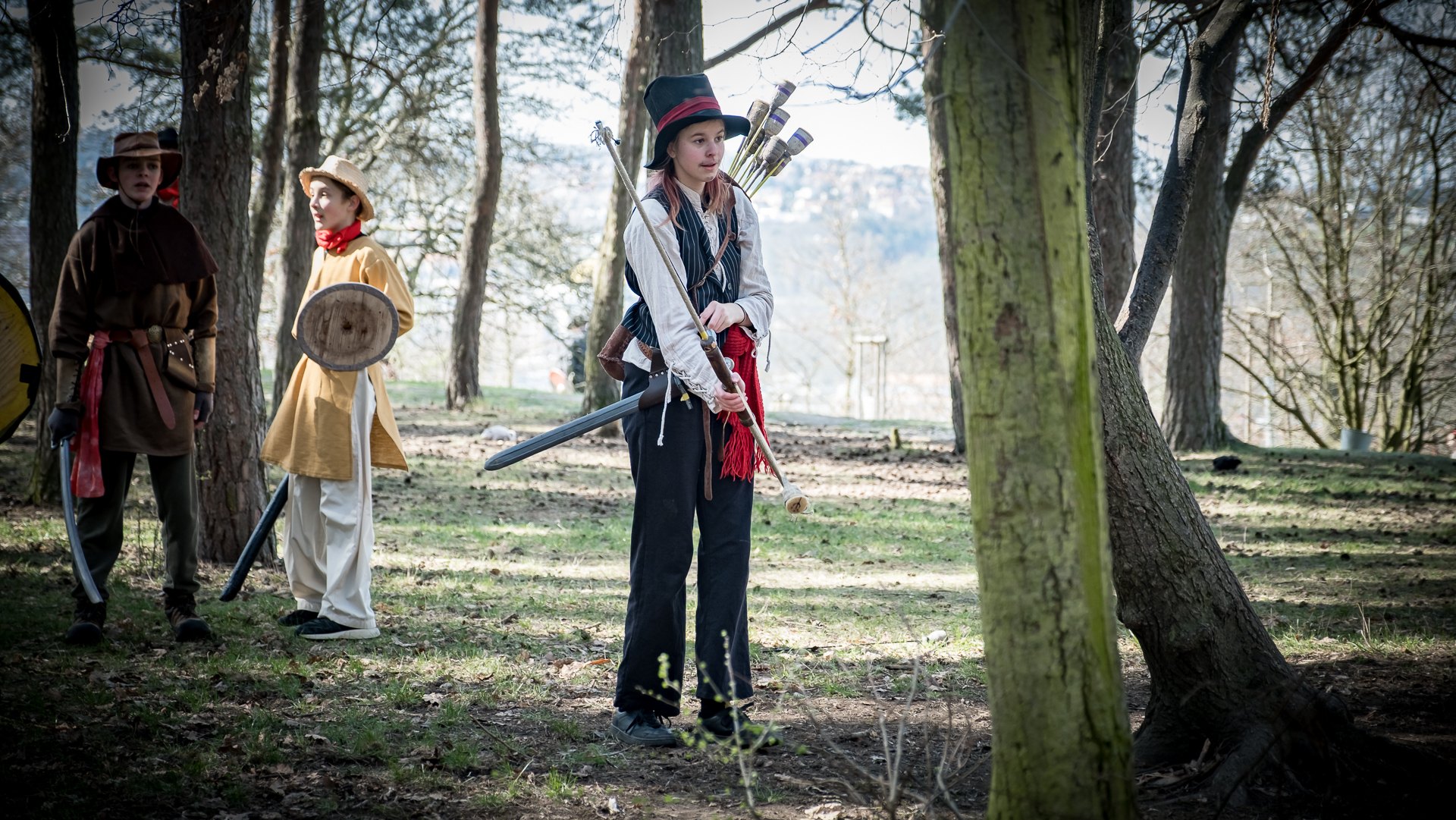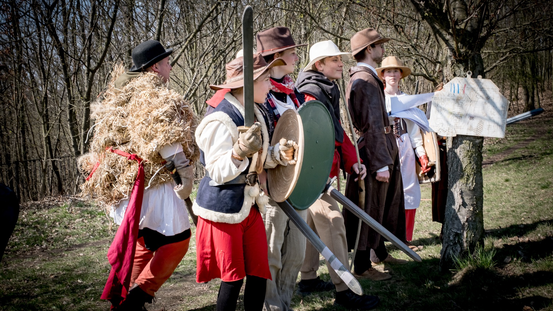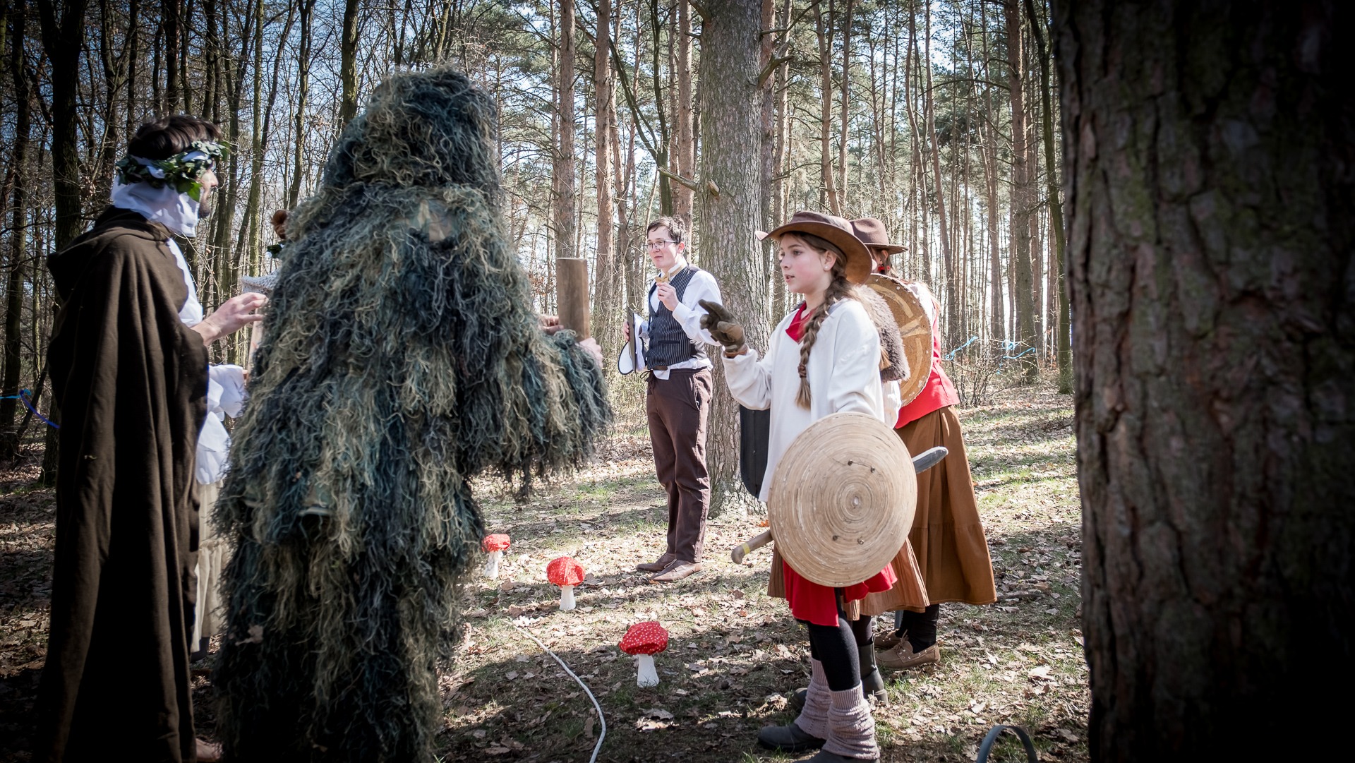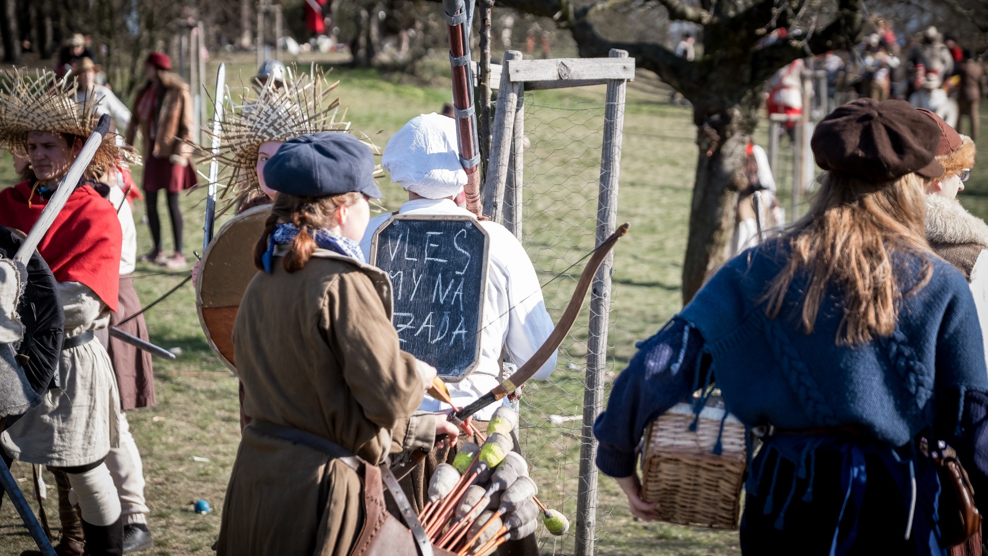 Albis je lesnatou a hornatou zemí daleko stranou zájmu velkých králů a jejich království. Je to divoký kraj a jeho obyvatelé jsou rázní a vzpurní. Blízko Temného lesa se rozkládá od pradávna Ves. Je to pár domů na kopci a několik domů pod kopcem. Na první pohled by se zdála zcela obyčejná – lidé tu obdělávají pole, pasou dobytek a večer posedávají v hospodě. Bystrý pocestný by si však hned všiml, že je tu cosi zvláštního: všichni vesničané bez výjimky nosí pokrývky hlavy.