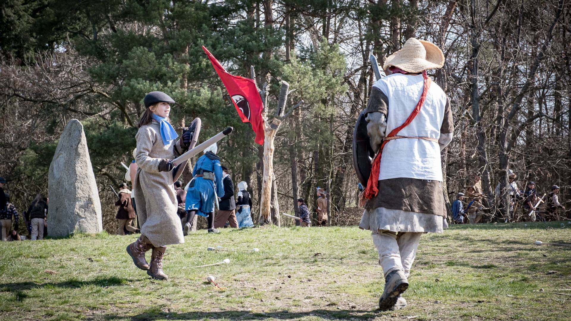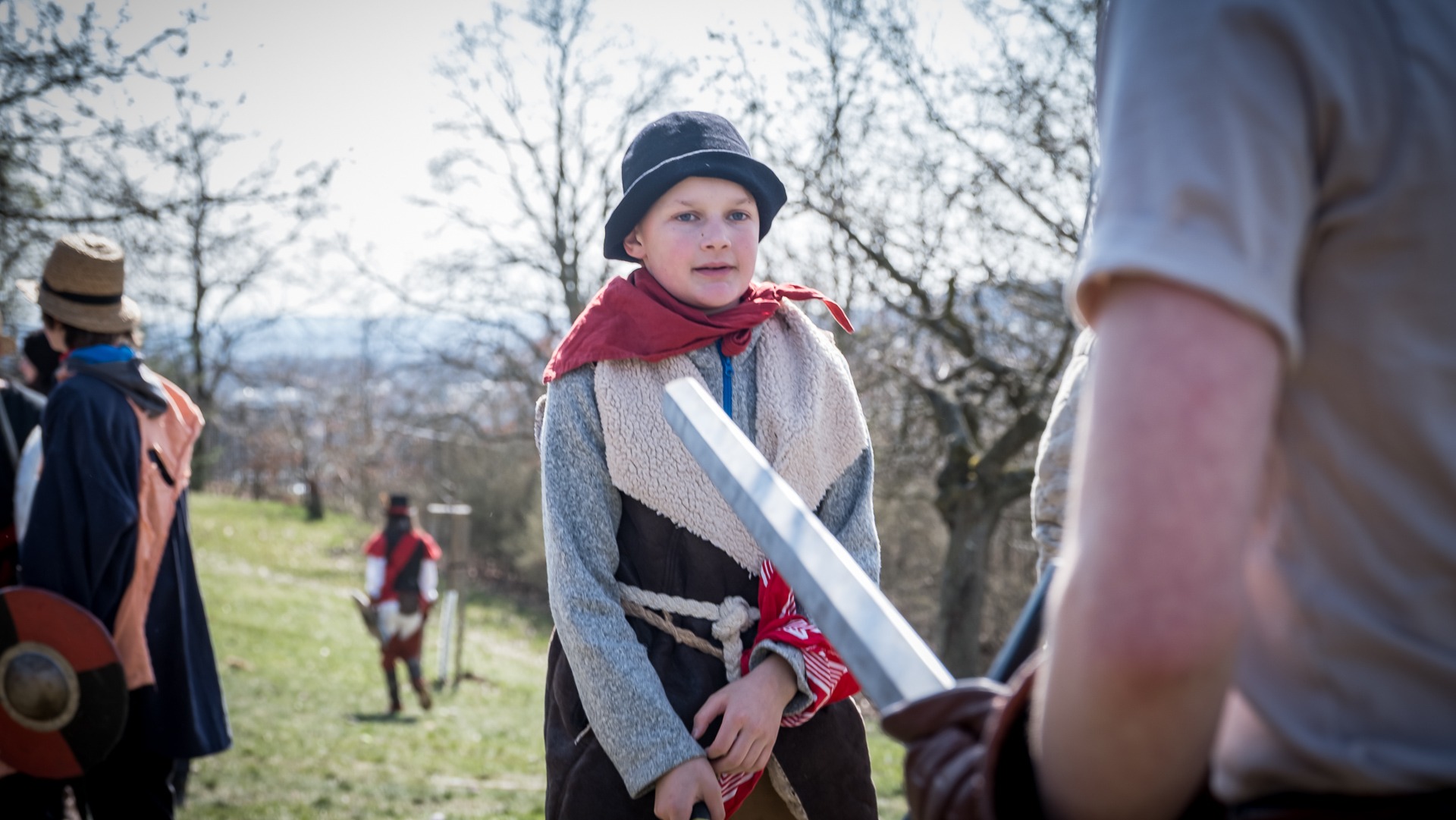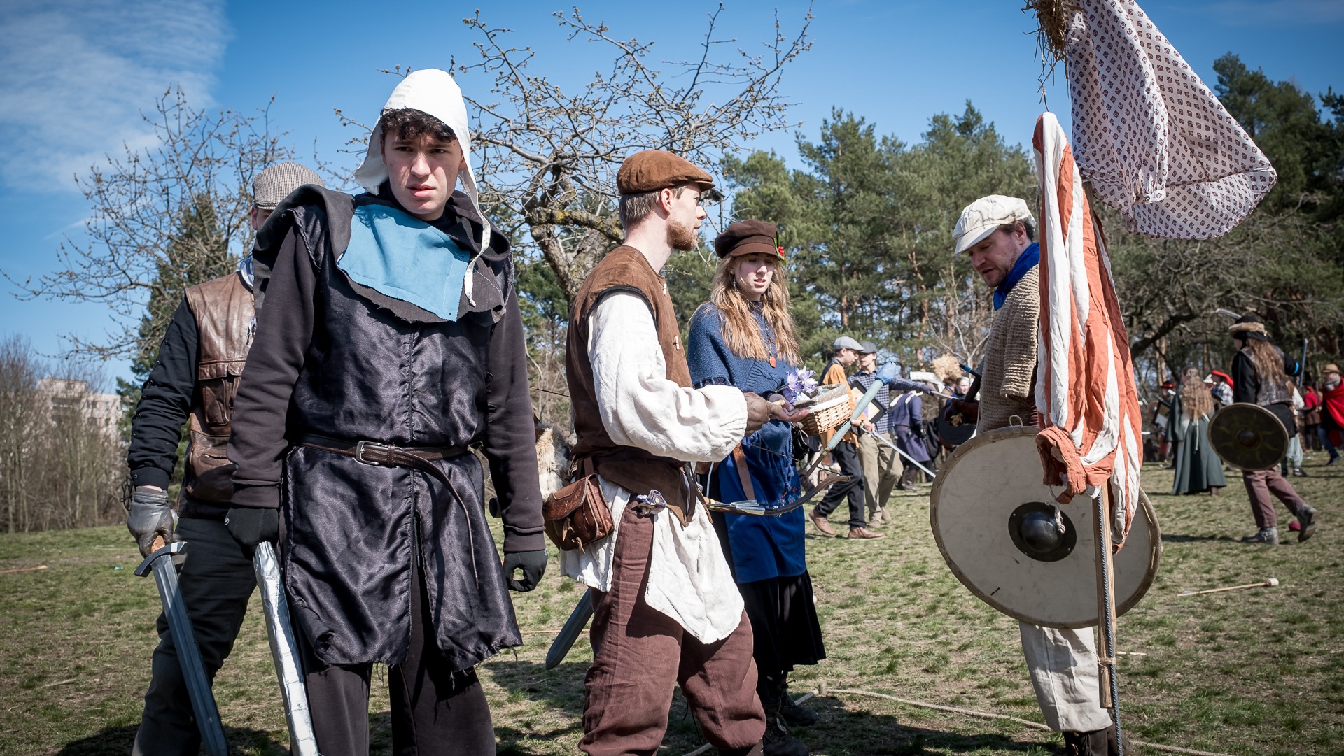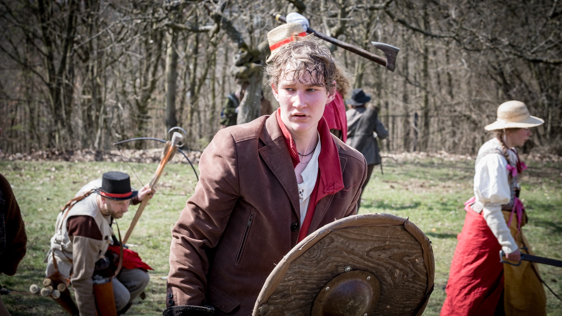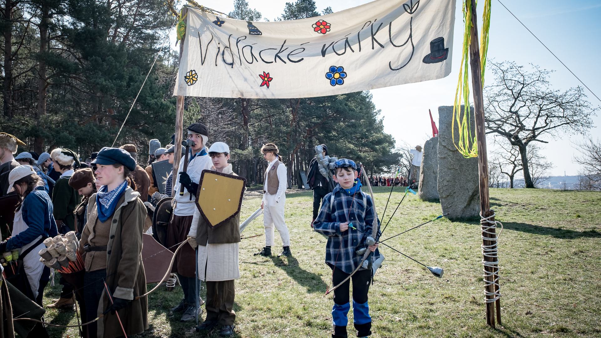 Albis je lesnatou a hornatou zemí daleko stranou zájmu velkých králů a jejich království. Je to divoký kraj a jeho obyvatelé jsou rázní a vzpurní. Blízko Temného lesa se rozkládá od pradávna Ves. Je to pár domů na kopci a několik domů pod kopcem. Na první pohled by se zdála zcela obyčejná – lidé tu obdělávají pole, pasou dobytek a večer posedávají v hospodě. Bystrý pocestný by si však hned všiml, že je tu cosi zvláštního: všichni vesničané bez výjimky nosí pokrývky hlavy.