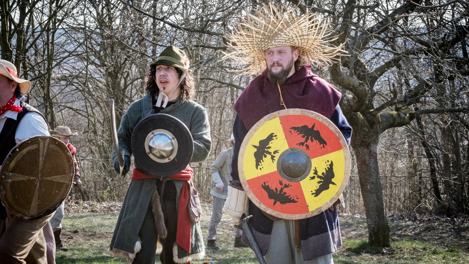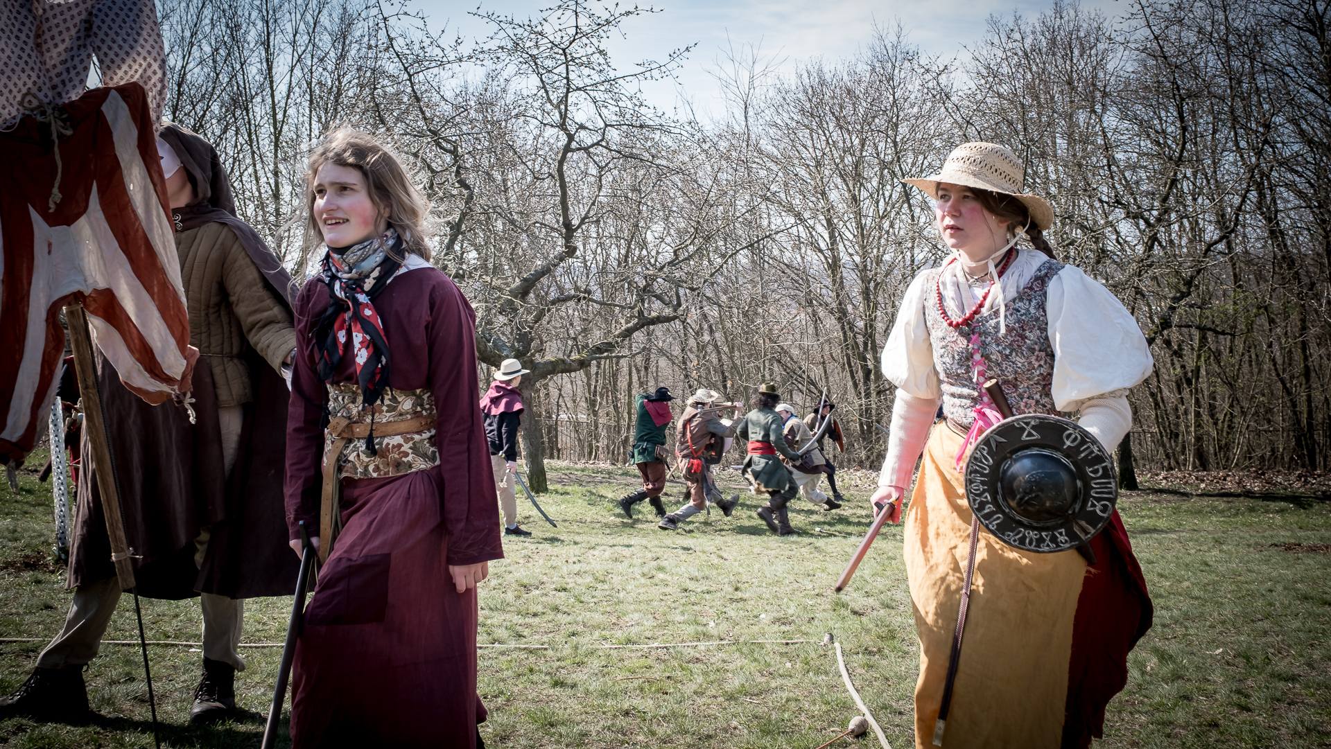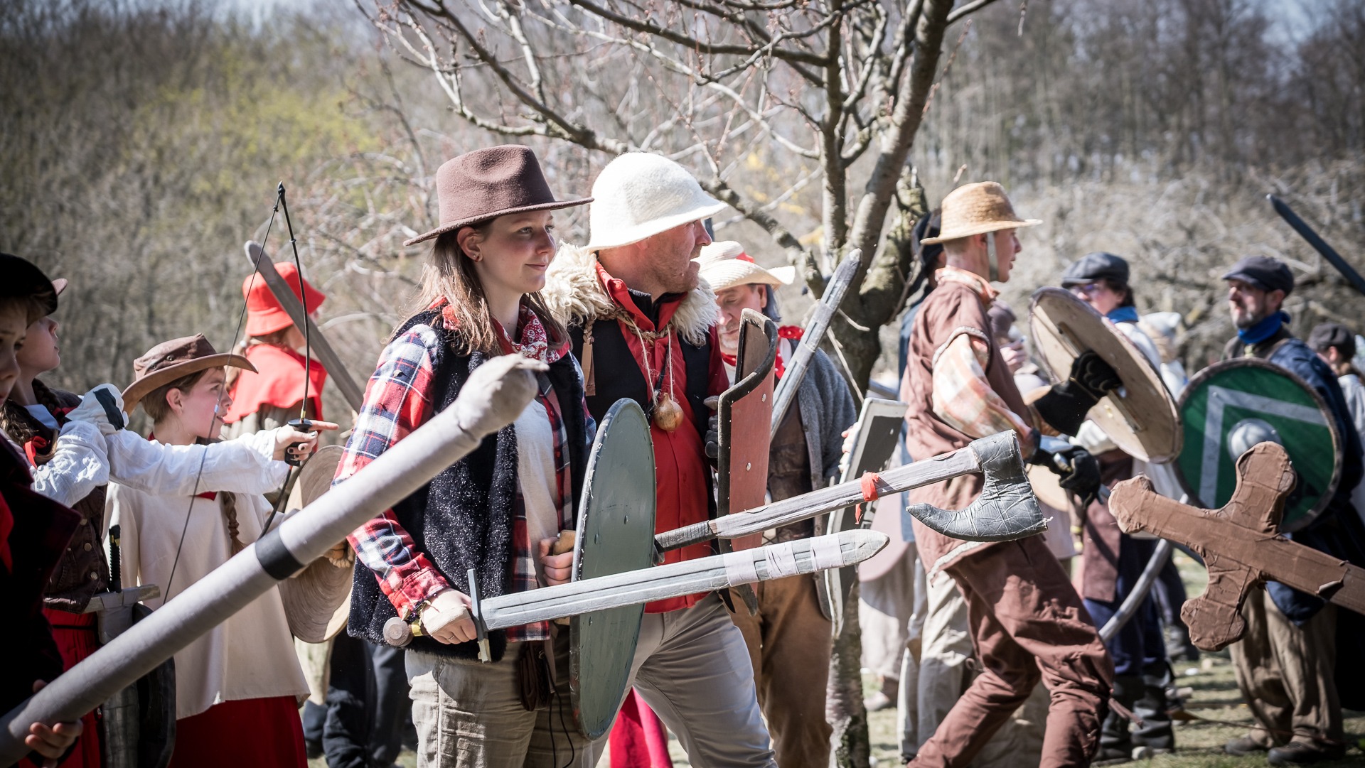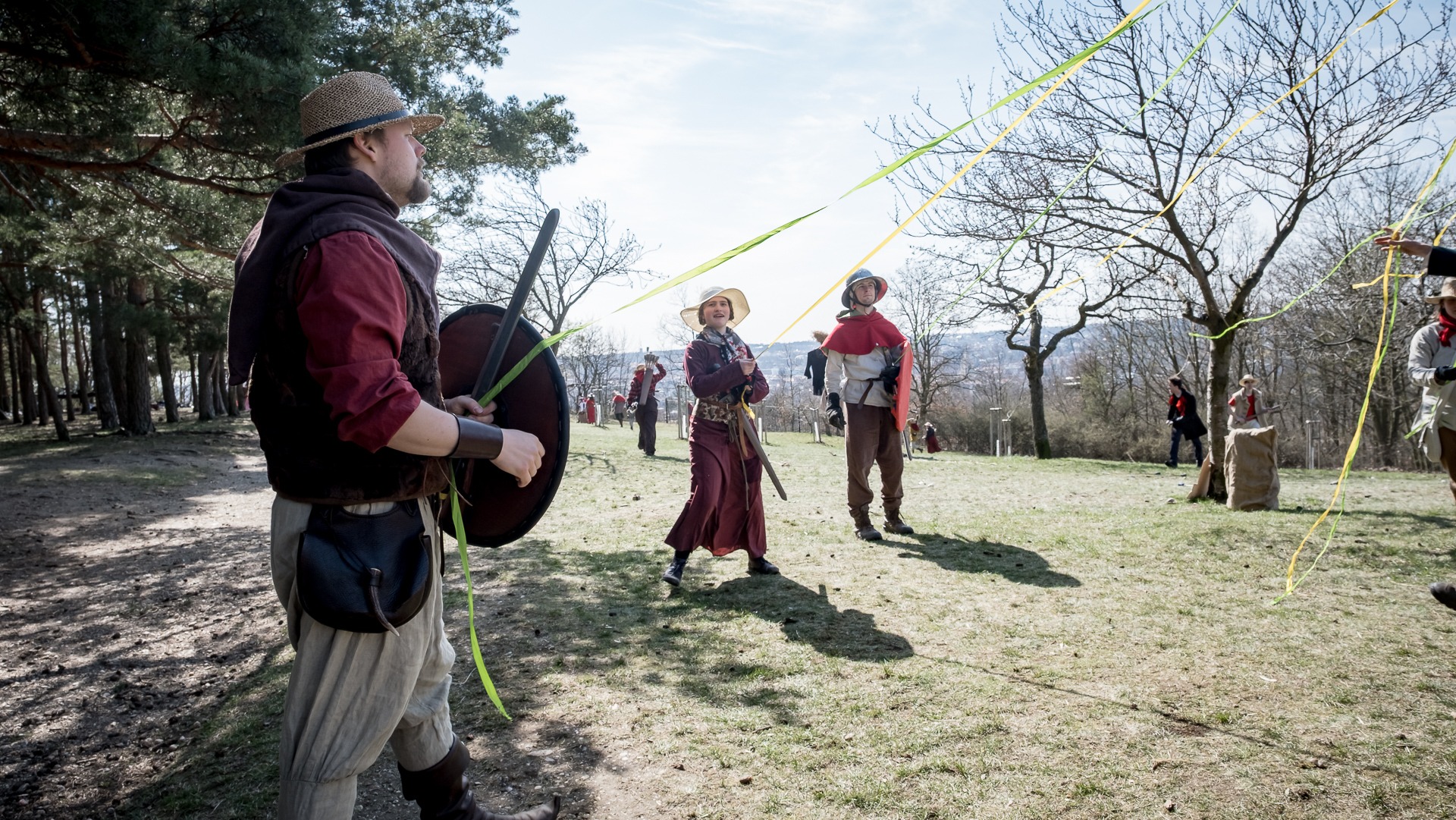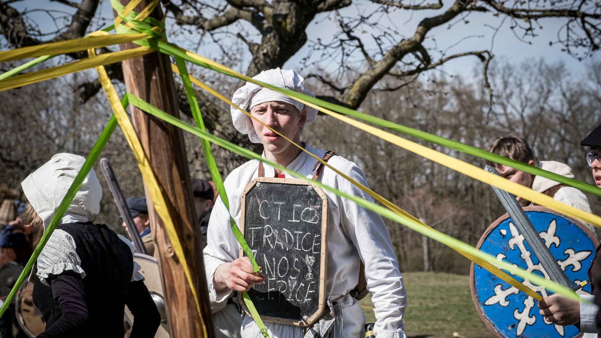 Albis je lesnatou a hornatou zemí daleko stranou zájmu velkých králů a jejich království. Je to divoký kraj a jeho obyvatelé jsou rázní a vzpurní. Blízko Temného lesa se rozkládá od pradávna Ves. Je to pár domů na kopci a několik domů pod kopcem. Na první pohled by se zdála zcela obyčejná – lidé tu obdělávají pole, pasou dobytek a večer posedávají v hospodě. Bystrý pocestný by si však hned všiml, že je tu cosi zvláštního: všichni vesničané bez výjimky nosí pokrývky hlavy.