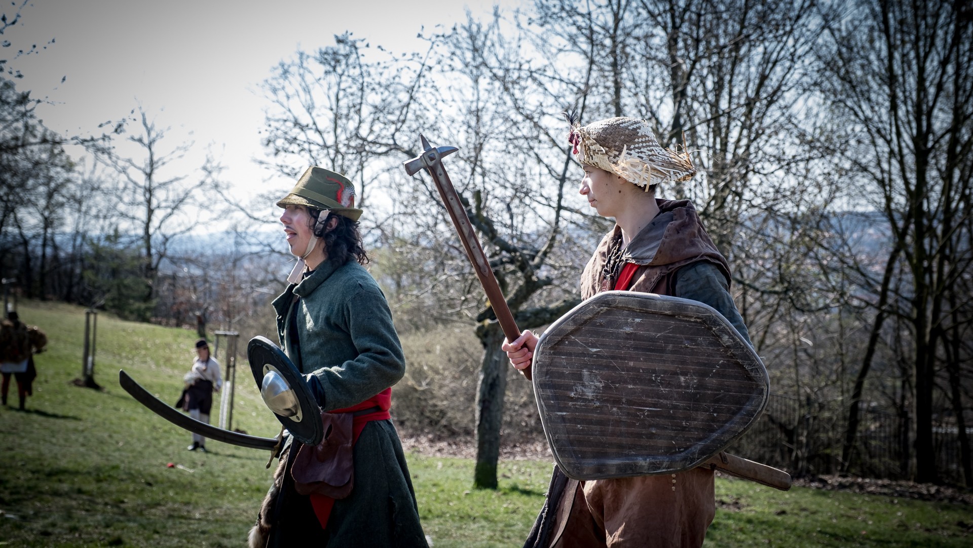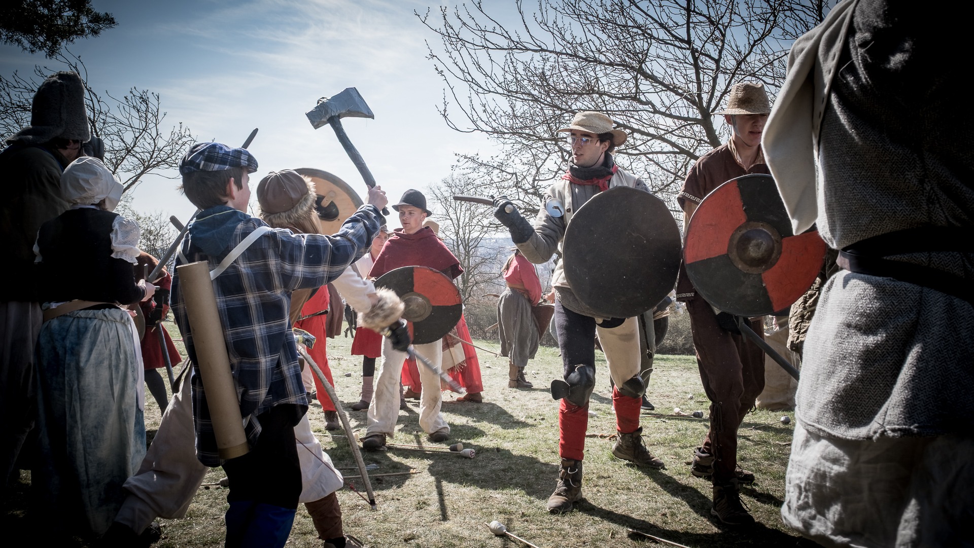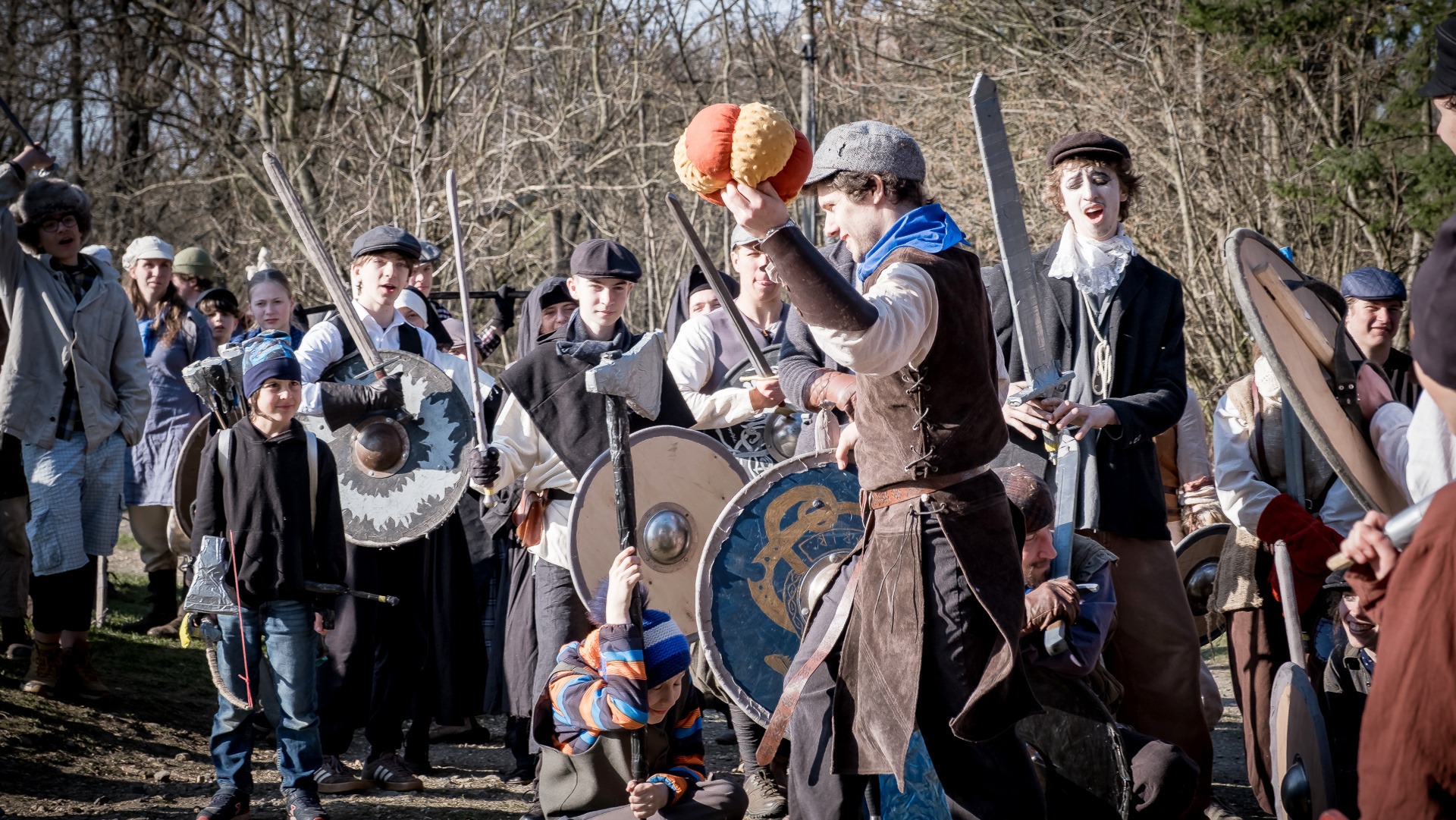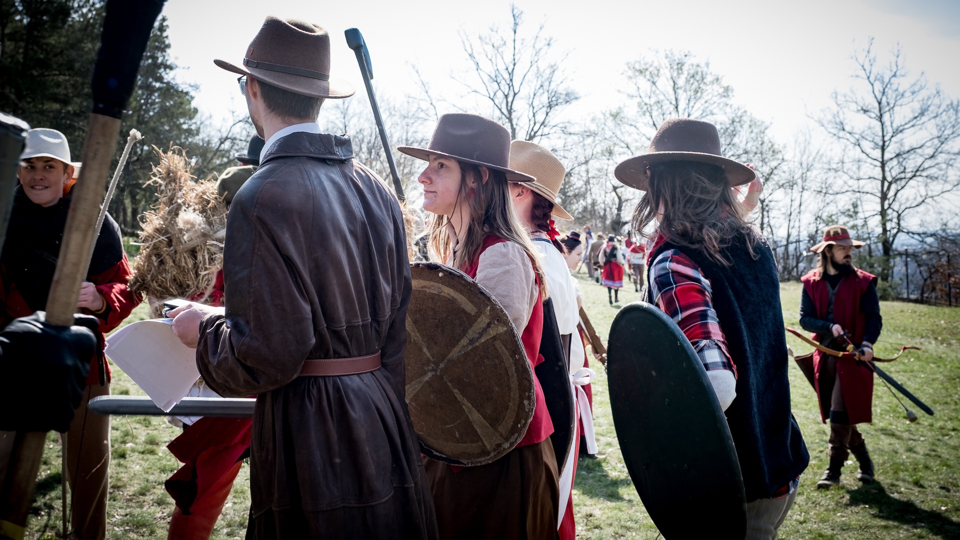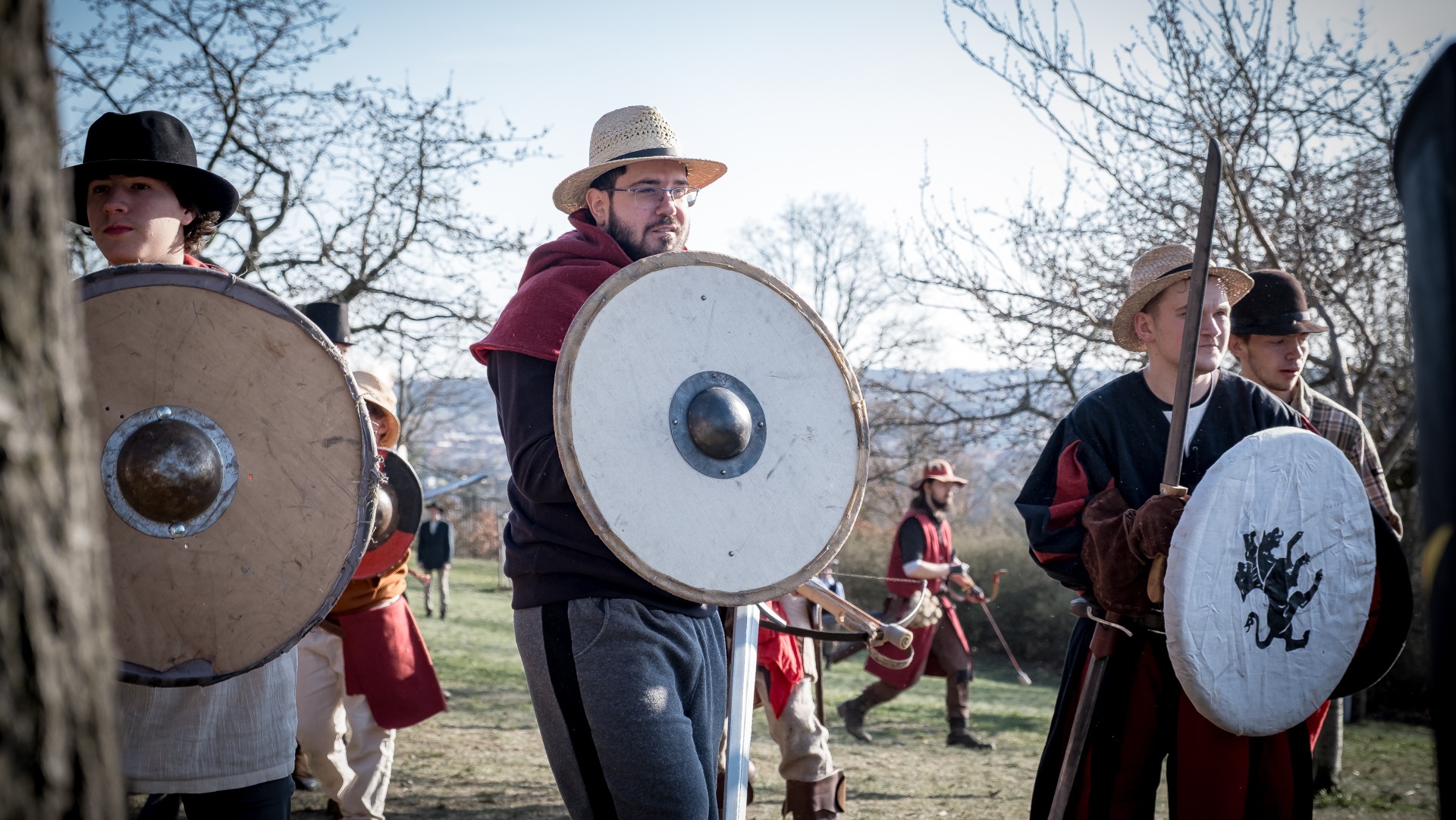 Albis je lesnatou a hornatou zemí daleko stranou zájmu velkých králů a jejich království. Je to divoký kraj a jeho obyvatelé jsou rázní a vzpurní. Blízko Temného lesa se rozkládá od pradávna Ves. Je to pár domů na kopci a několik domů pod kopcem. Na první pohled by se zdála zcela obyčejná – lidé tu obdělávají pole, pasou dobytek a večer posedávají v hospodě. Bystrý pocestný by si však hned všiml, že je tu cosi zvláštního: všichni vesničané bez výjimky nosí pokrývky hlavy.