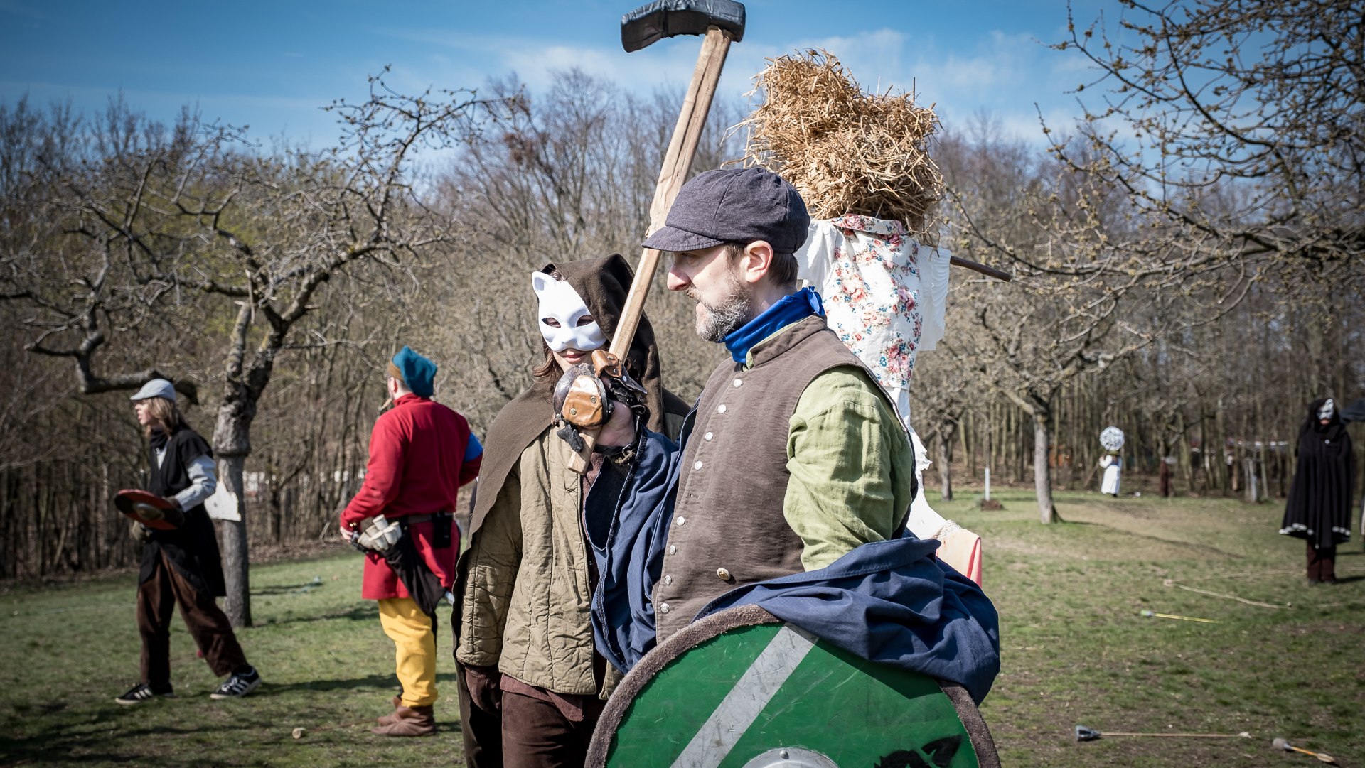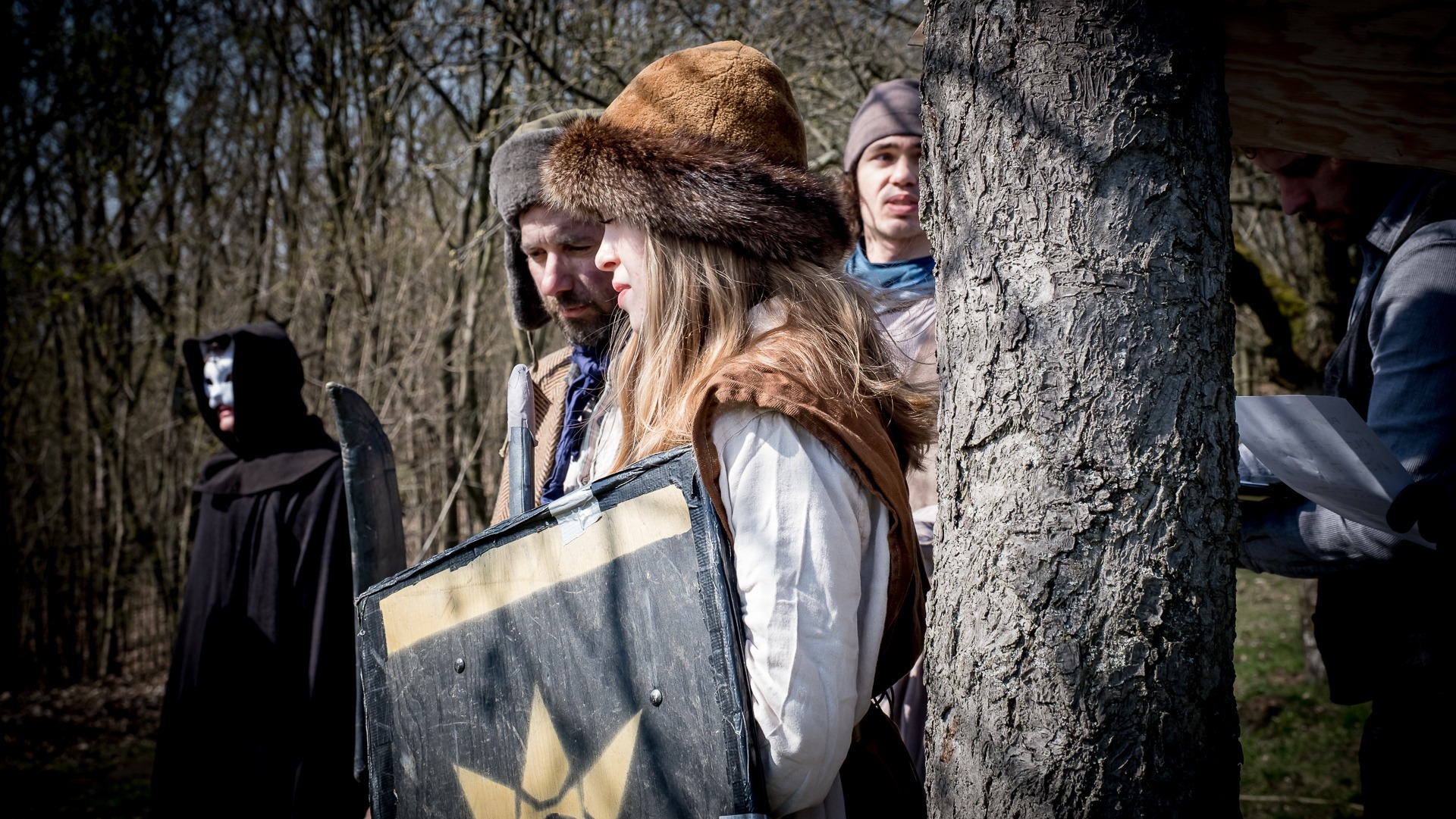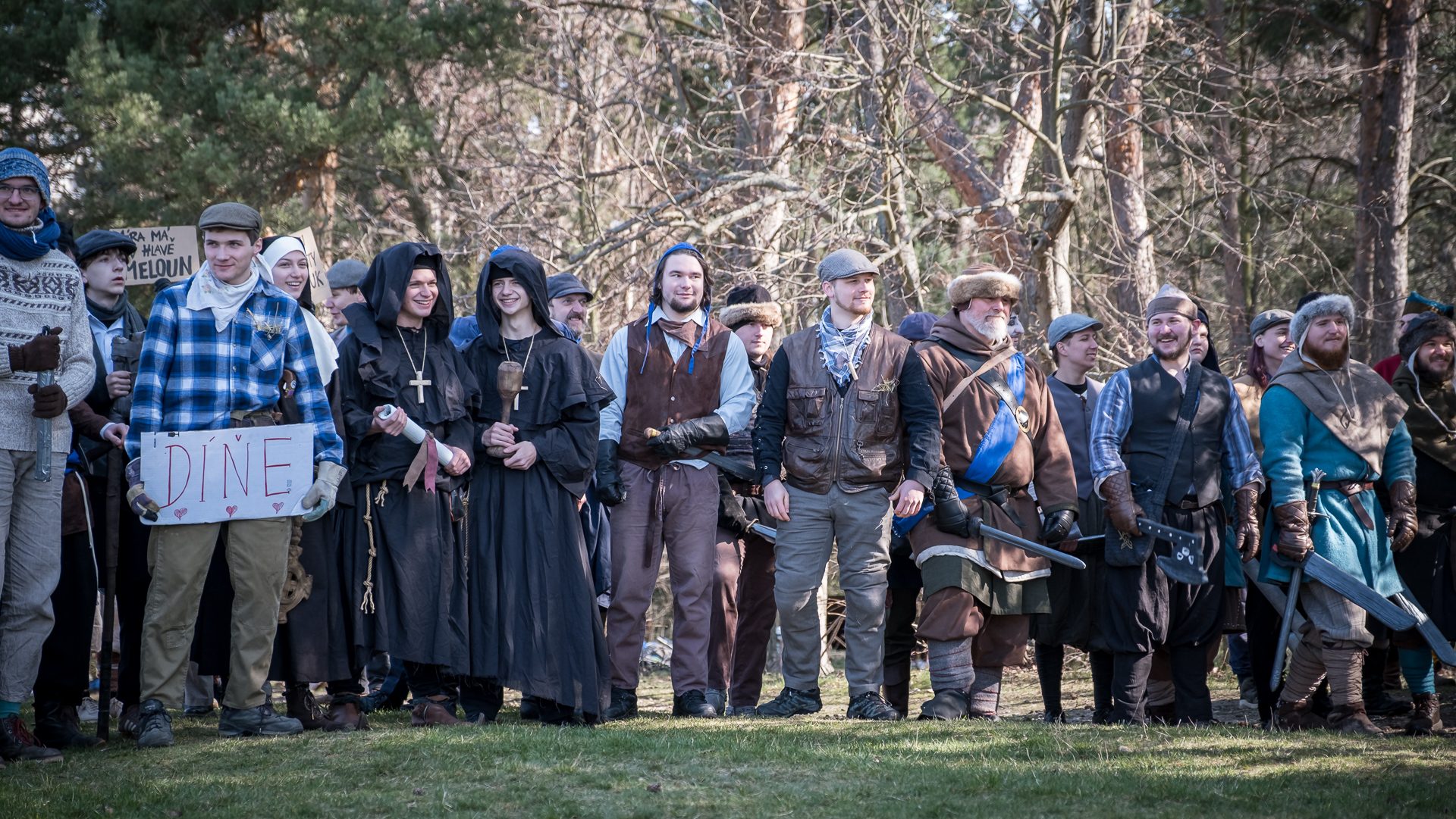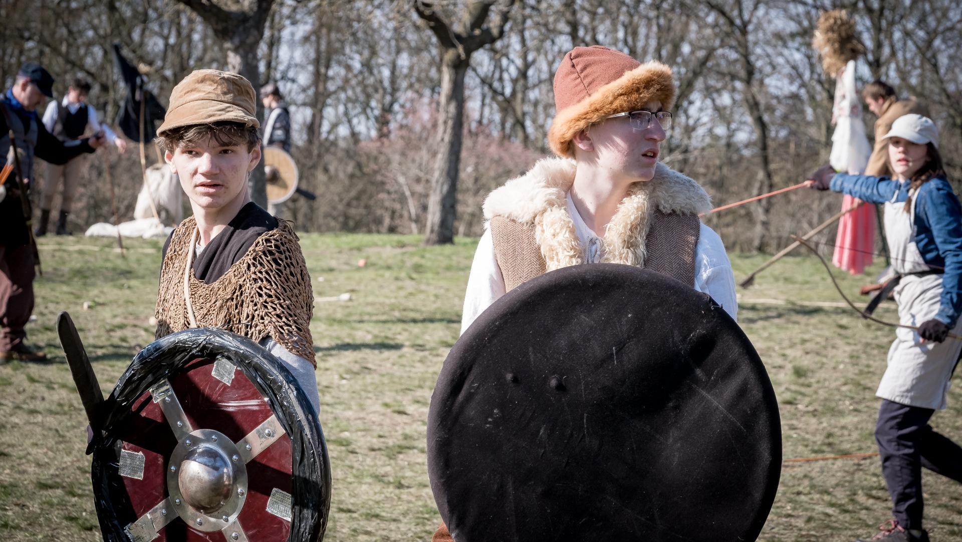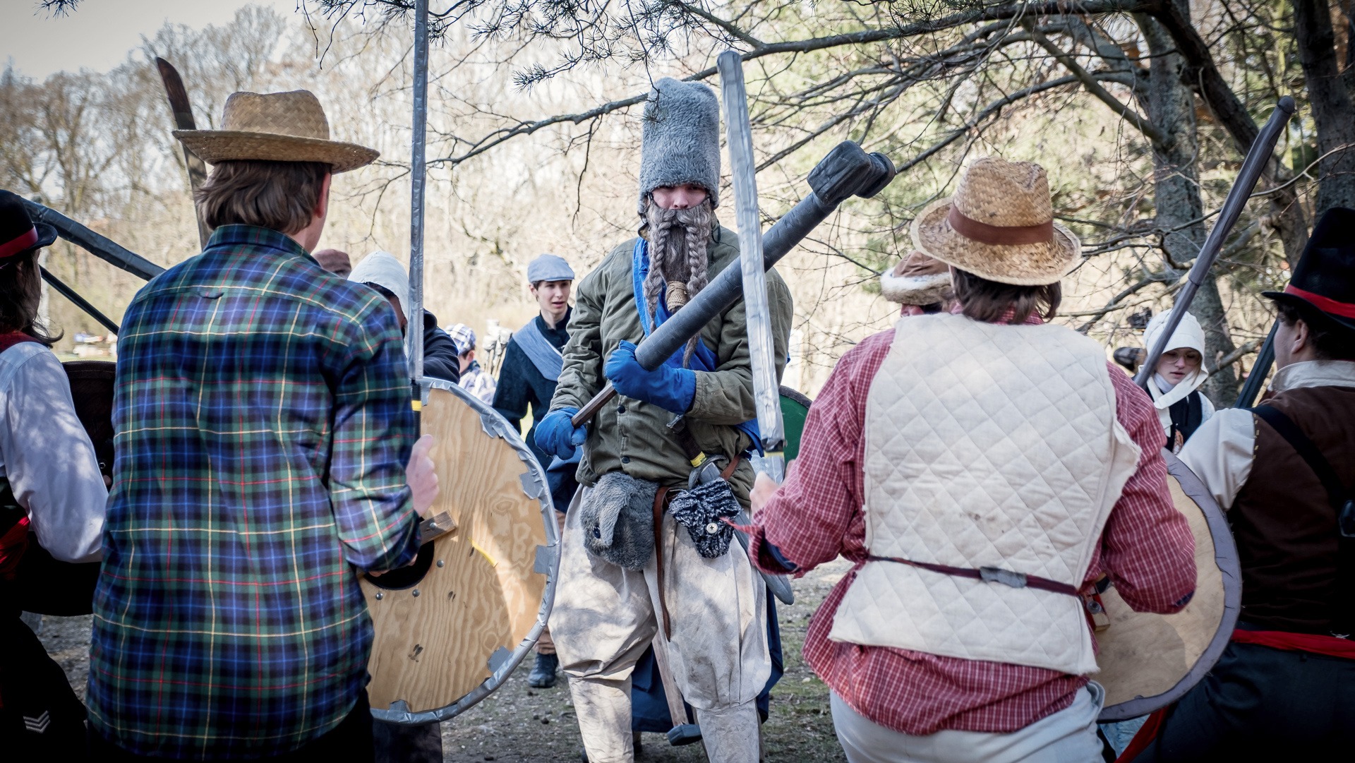 Albis je lesnatou a hornatou zemí daleko stranou zájmu velkých králů a jejich království. Je to divoký kraj a jeho obyvatelé jsou rázní a vzpurní. Blízko Temného lesa se rozkládá od pradávna Ves. Je to pár domů na kopci a několik domů pod kopcem. Na první pohled by se zdála zcela obyčejná – lidé tu obdělávají pole, pasou dobytek a večer posedávají v hospodě. Bystrý pocestný by si však hned všiml, že je tu cosi zvláštního: všichni vesničané bez výjimky nosí pokrývky hlavy.