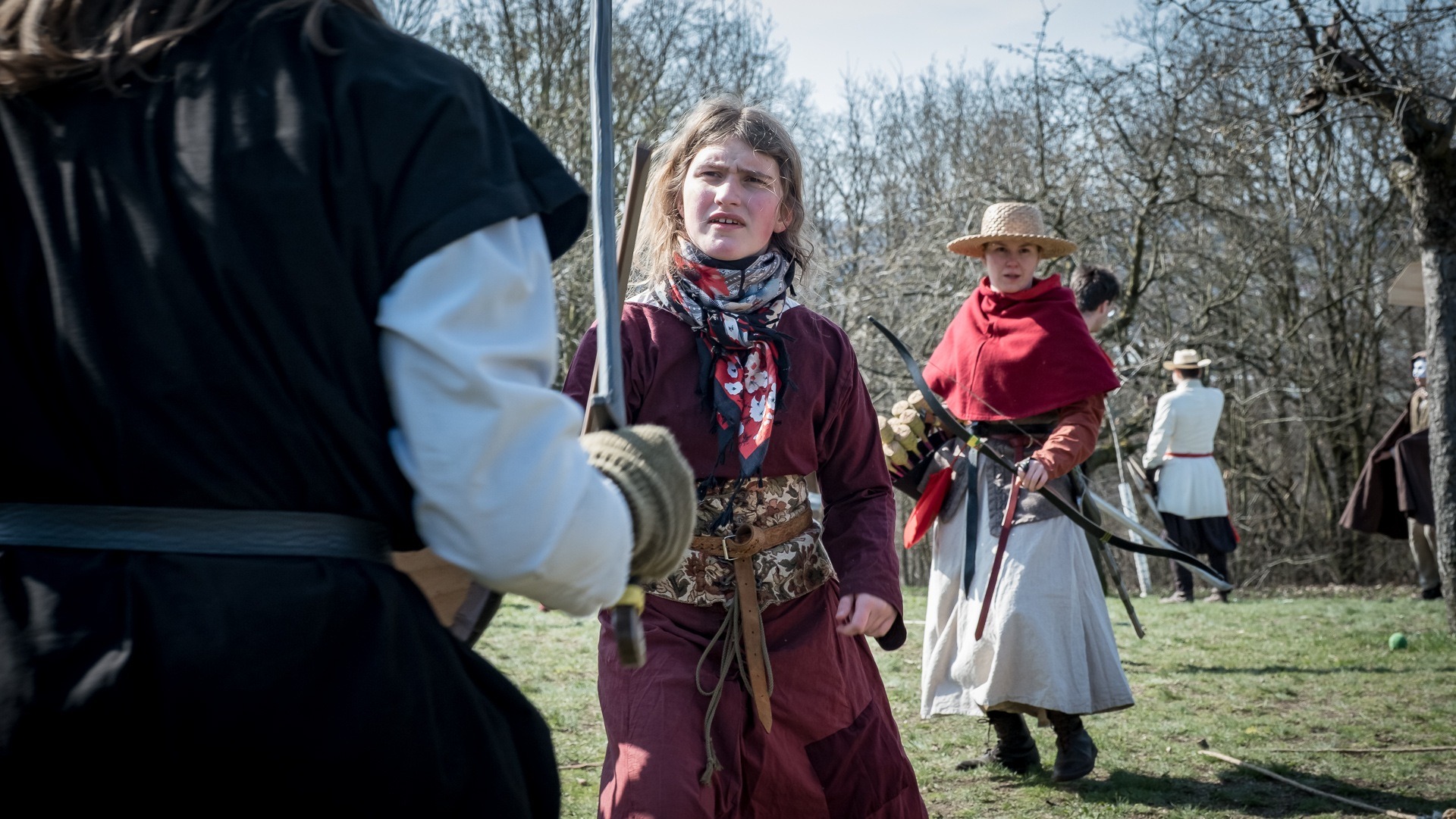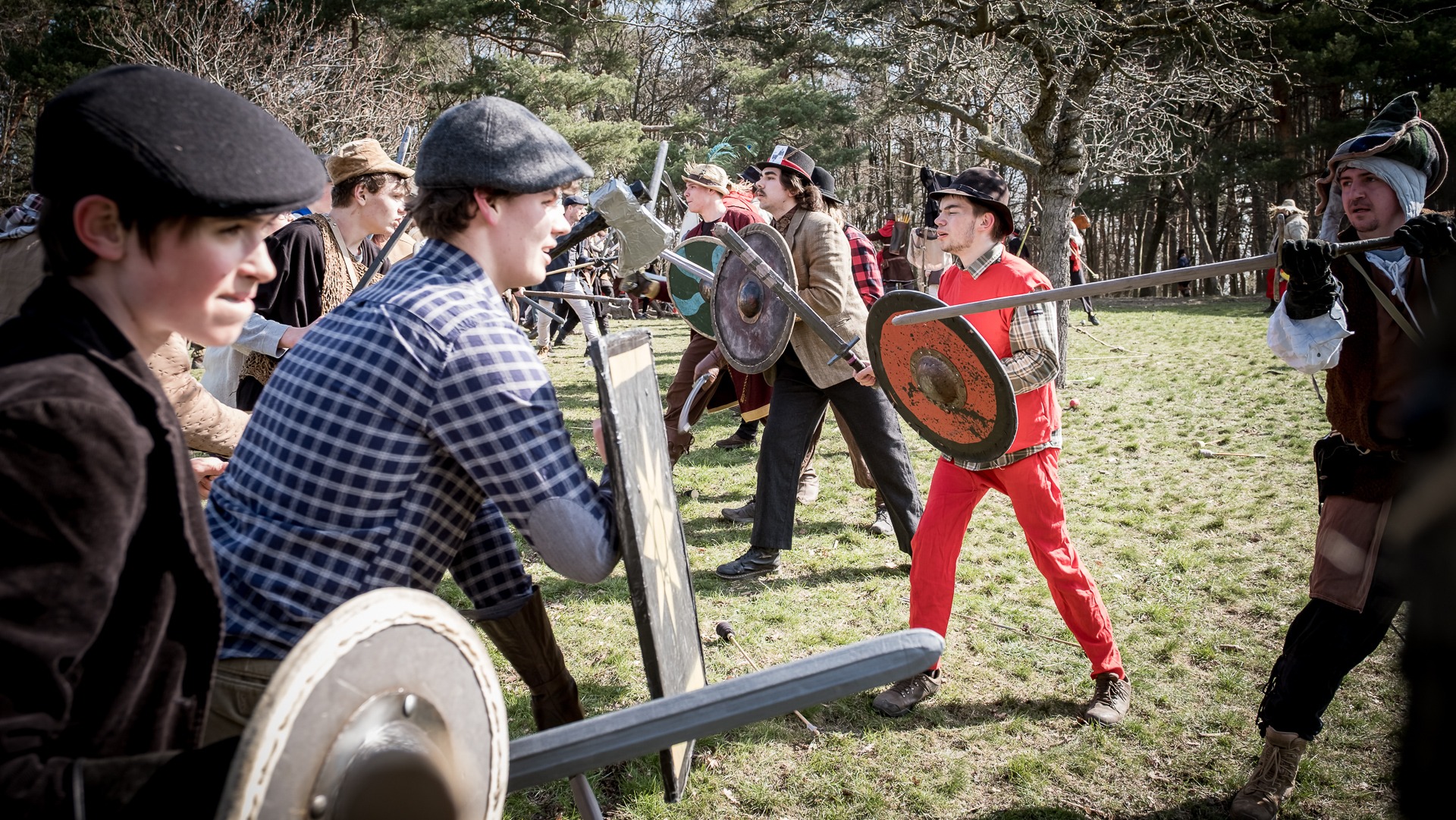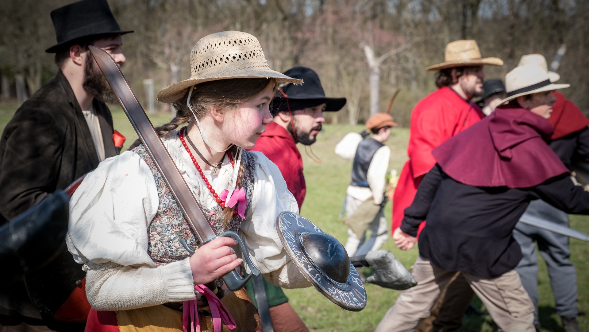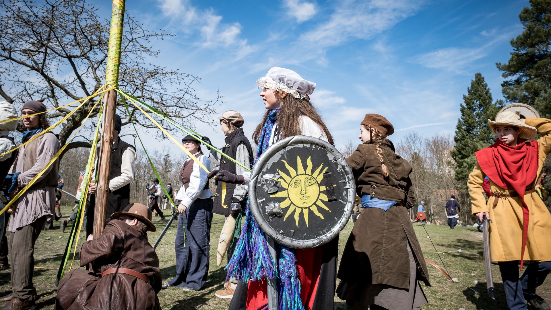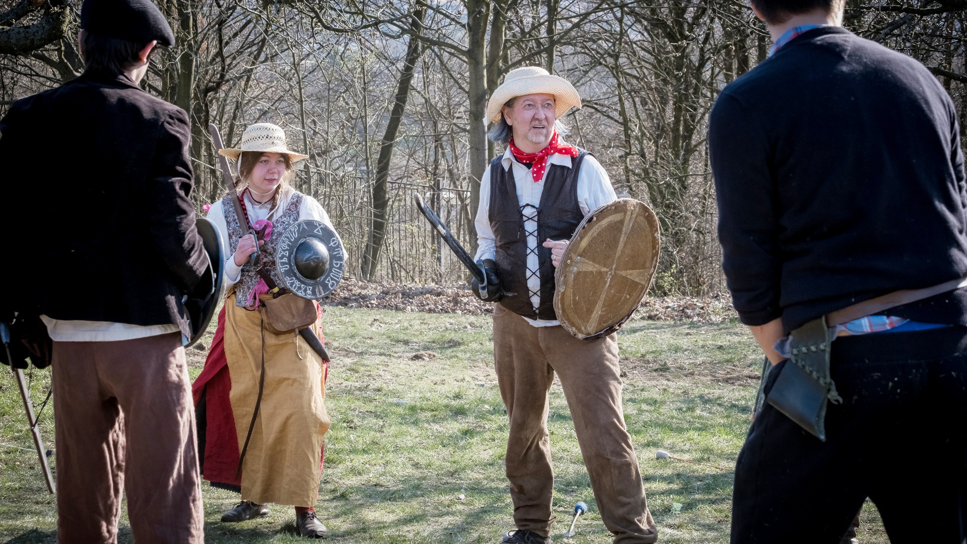 Albis je lesnatou a hornatou zemí daleko stranou zájmu velkých králů a jejich království. Je to divoký kraj a jeho obyvatelé jsou rázní a vzpurní. Blízko Temného lesa se rozkládá od pradávna Ves. Je to pár domů na kopci a několik domů pod kopcem. Na první pohled by se zdála zcela obyčejná – lidé tu obdělávají pole, pasou dobytek a večer posedávají v hospodě. Bystrý pocestný by si však hned všiml, že je tu cosi zvláštního: všichni vesničané bez výjimky nosí pokrývky hlavy.
