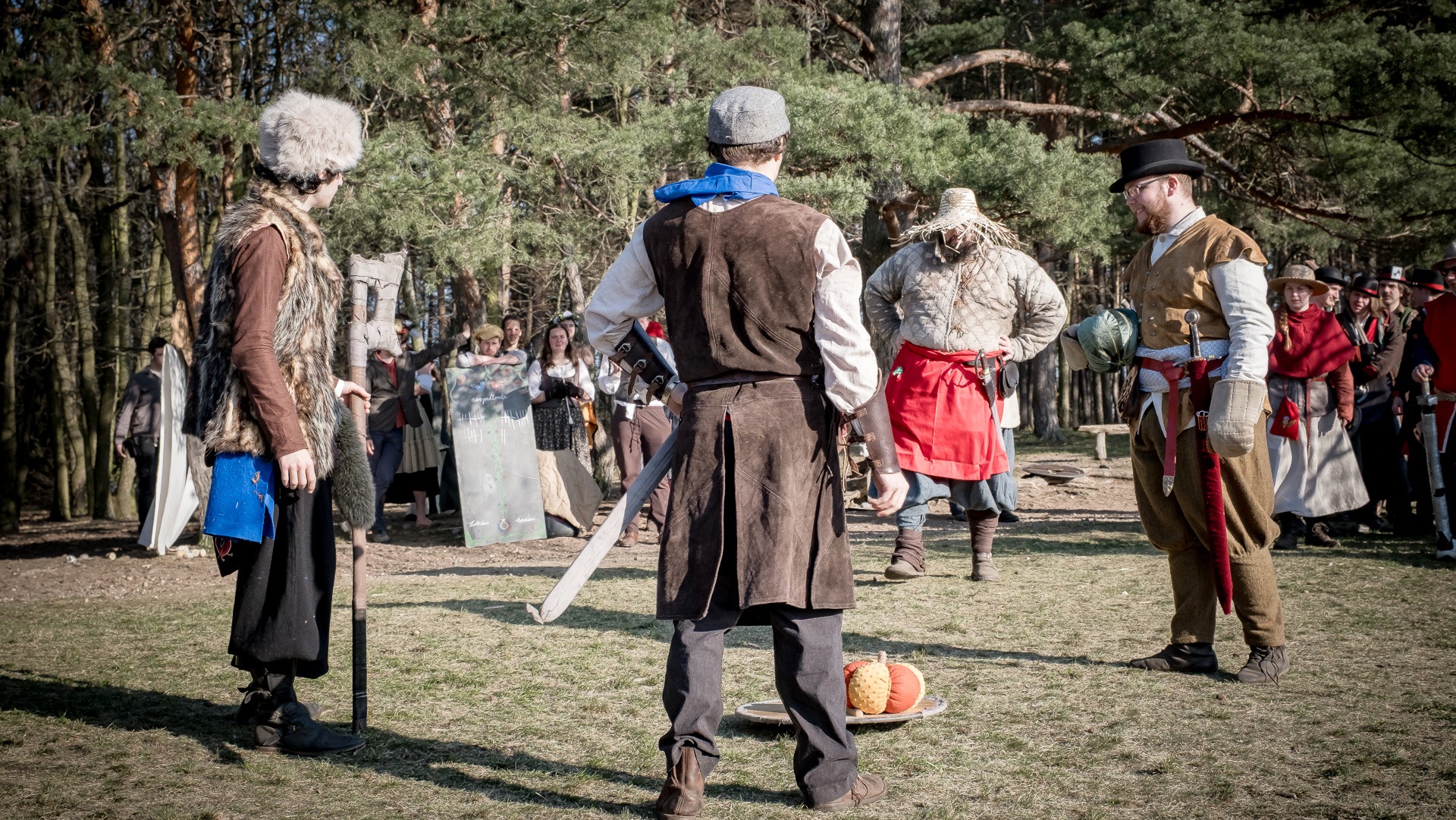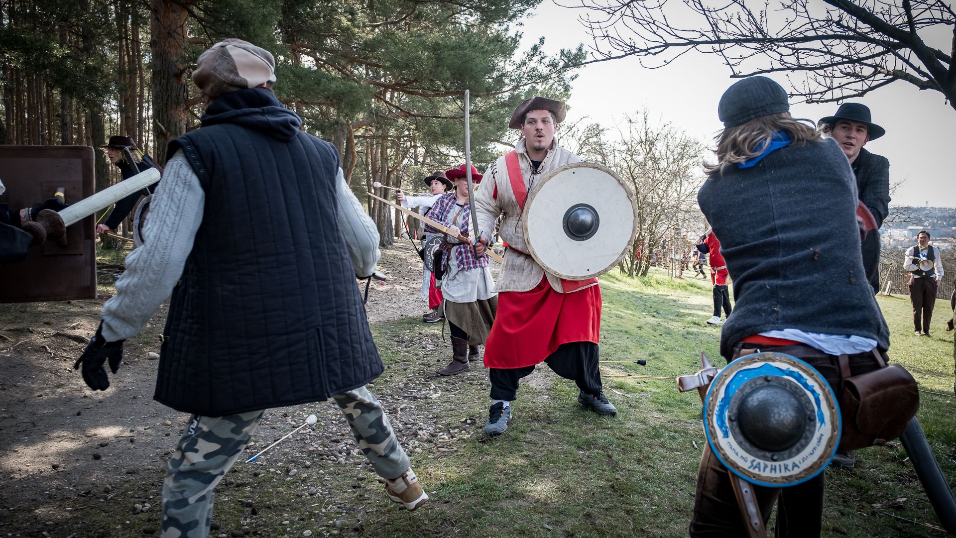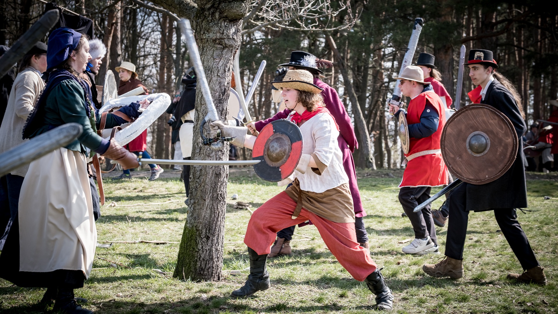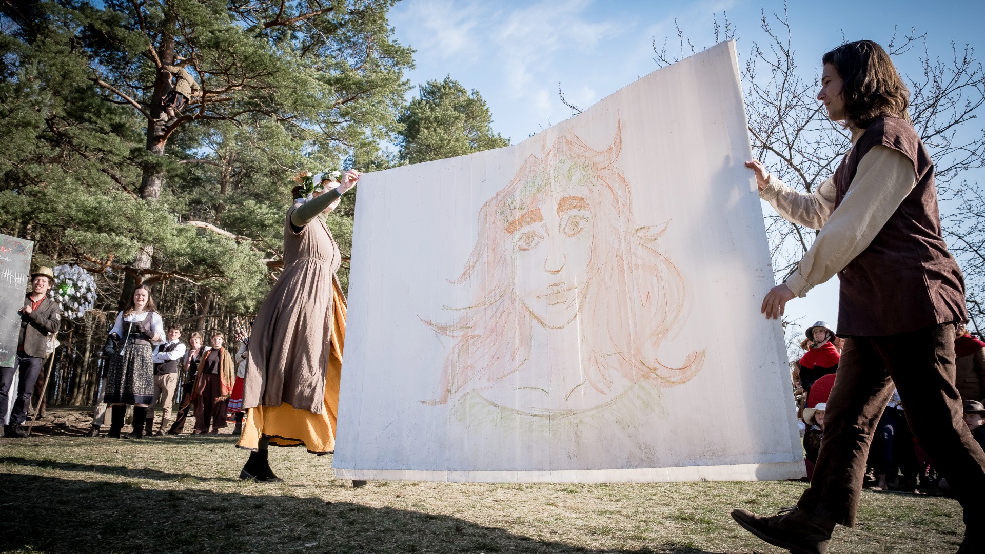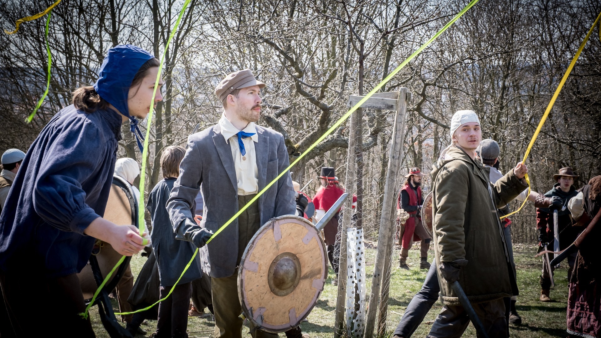 Albis je lesnatou a hornatou zemí daleko stranou zájmu velkých králů a jejich království. Je to divoký kraj a jeho obyvatelé jsou rázní a vzpurní. Blízko Temného lesa se rozkládá od pradávna Ves. Je to pár domů na kopci a několik domů pod kopcem. Na první pohled by se zdála zcela obyčejná – lidé tu obdělávají pole, pasou dobytek a večer posedávají v hospodě. Bystrý pocestný by si však hned všiml, že je tu cosi zvláštního: všichni vesničané bez výjimky nosí pokrývky hlavy.