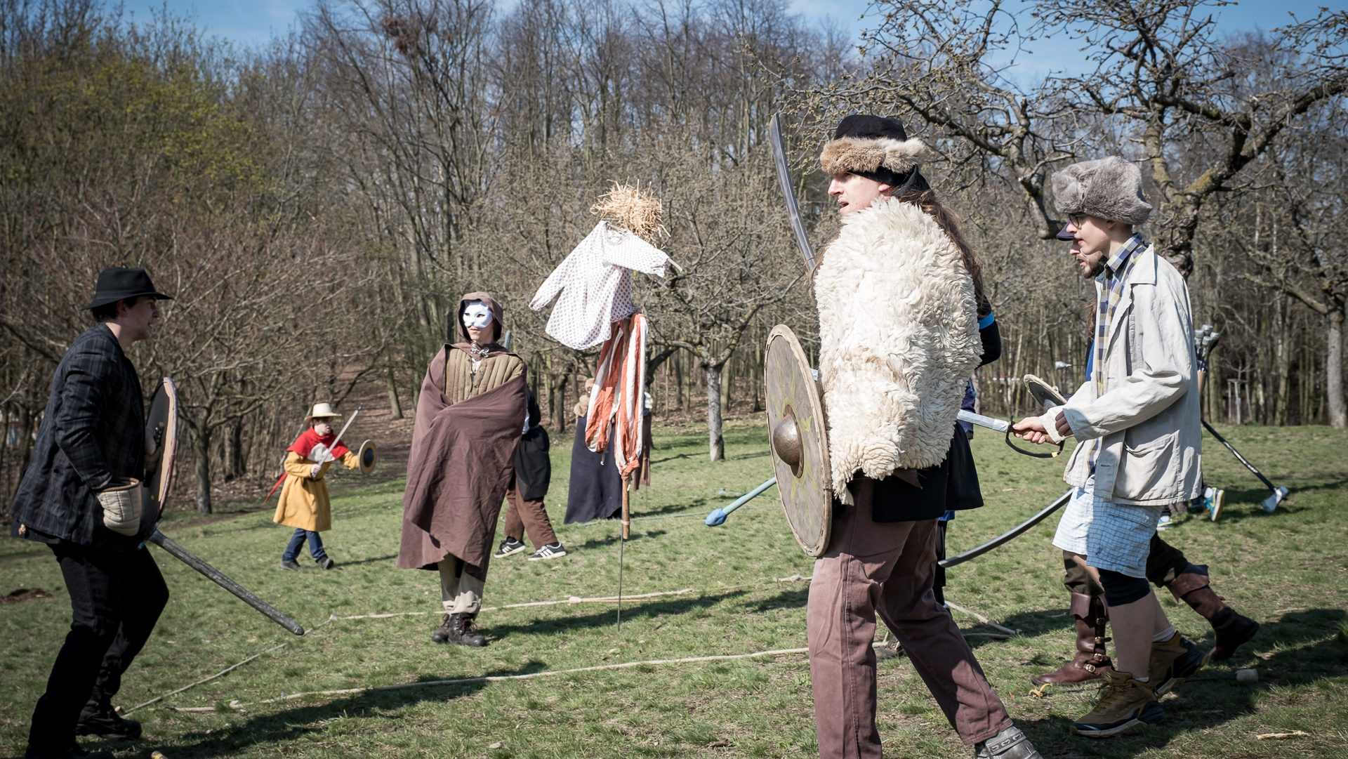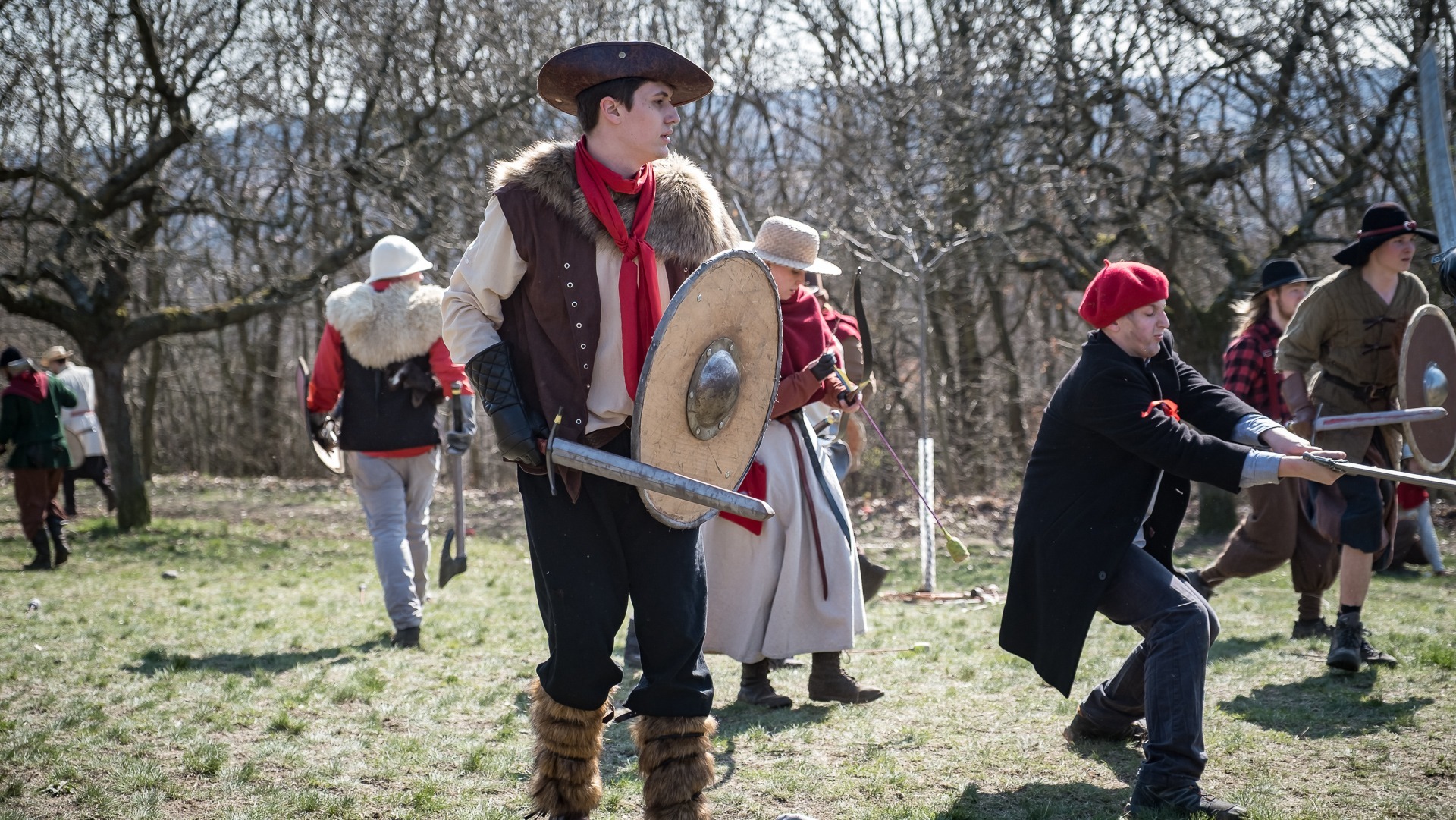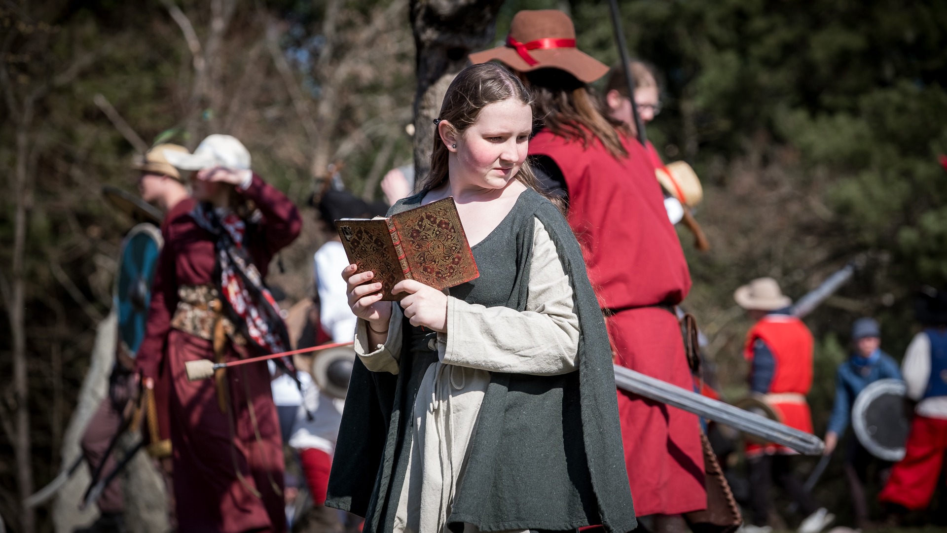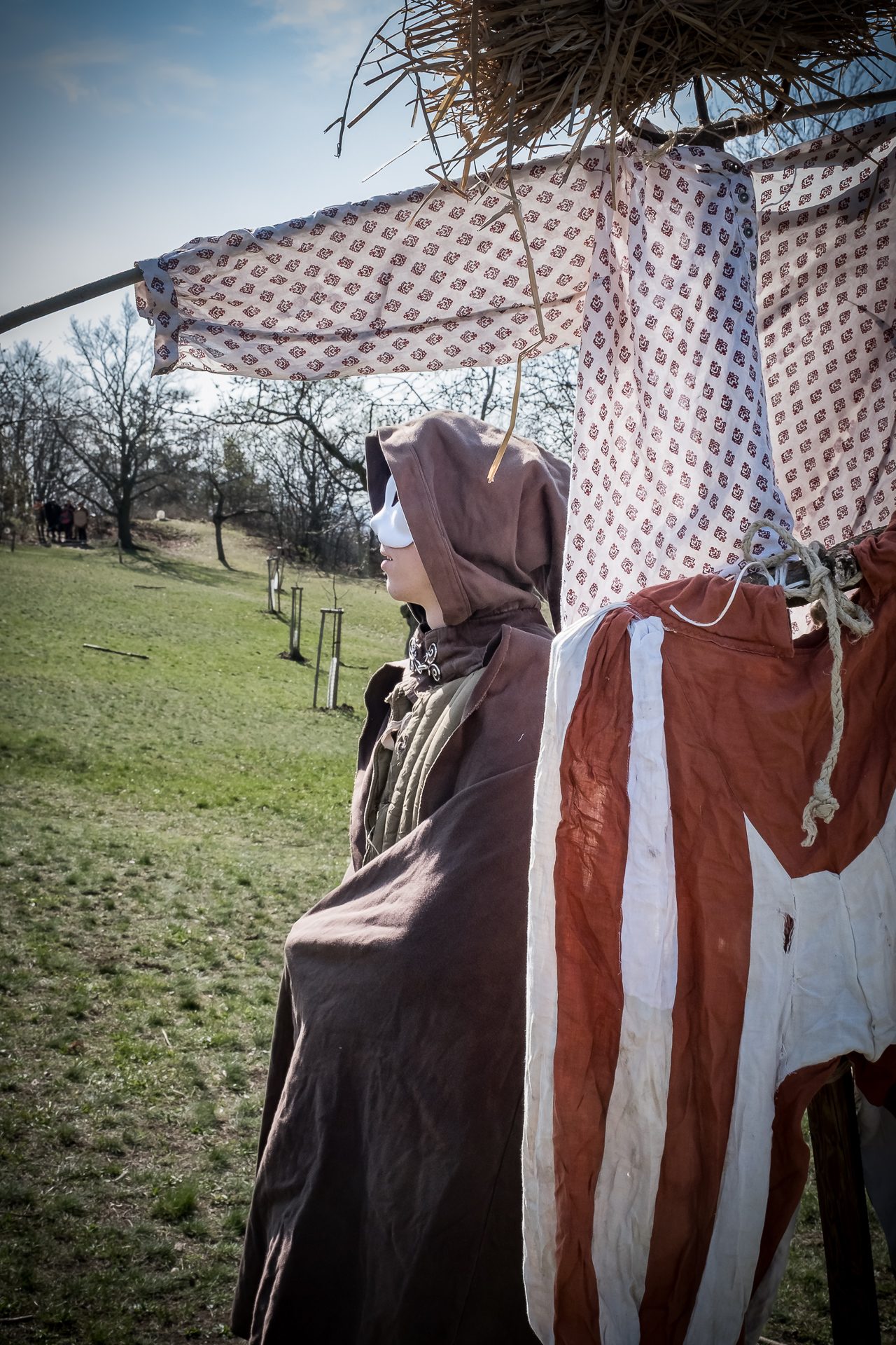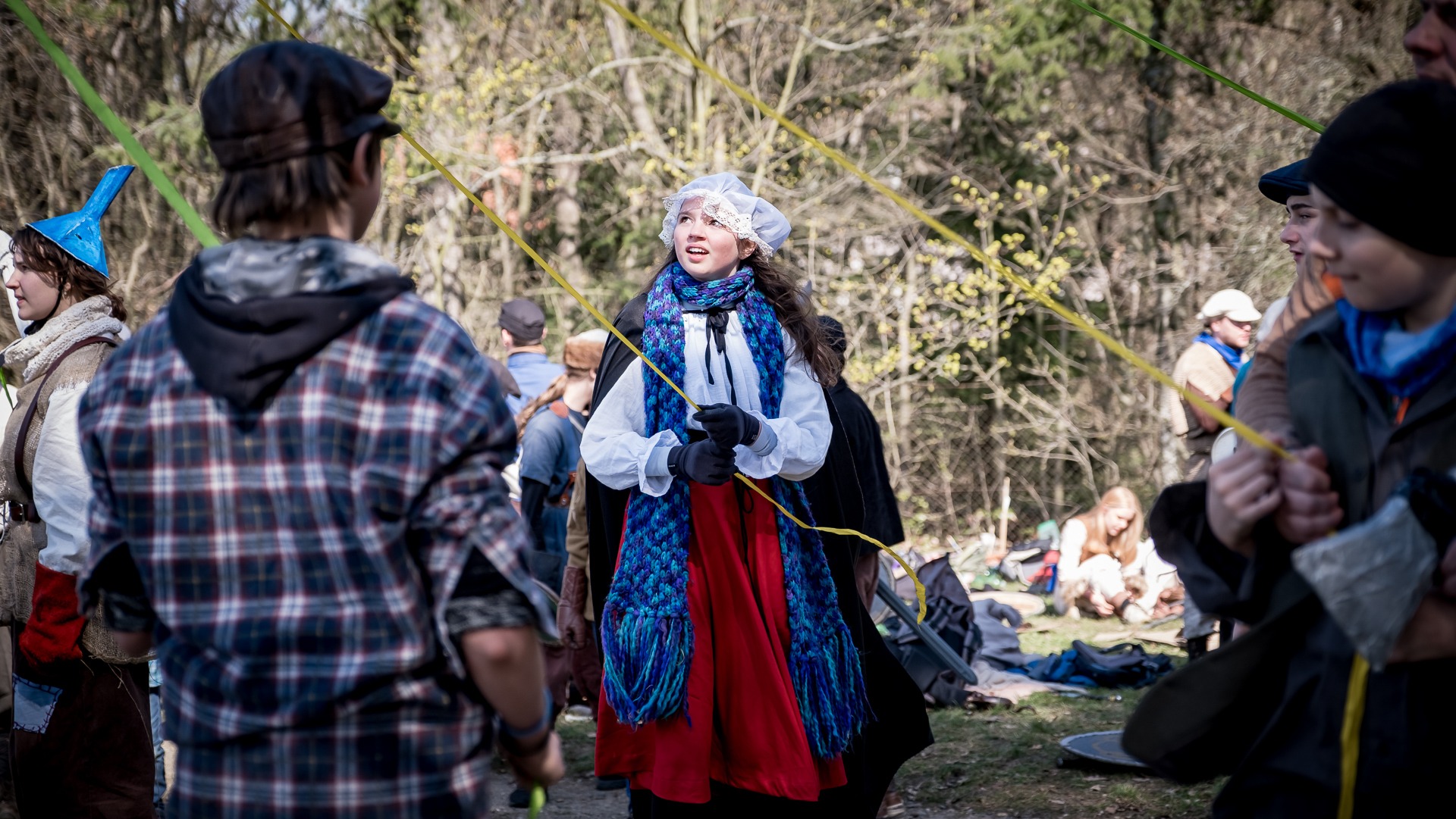 Albis je lesnatou a hornatou zemí daleko stranou zájmu velkých králů a jejich království. Je to divoký kraj a jeho obyvatelé jsou rázní a vzpurní. Blízko Temného lesa se rozkládá od pradávna Ves. Je to pár domů na kopci a několik domů pod kopcem. Na první pohled by se zdála zcela obyčejná – lidé tu obdělávají pole, pasou dobytek a večer posedávají v hospodě. Bystrý pocestný by si však hned všiml, že je tu cosi zvláštního: všichni vesničané bez výjimky nosí pokrývky hlavy.