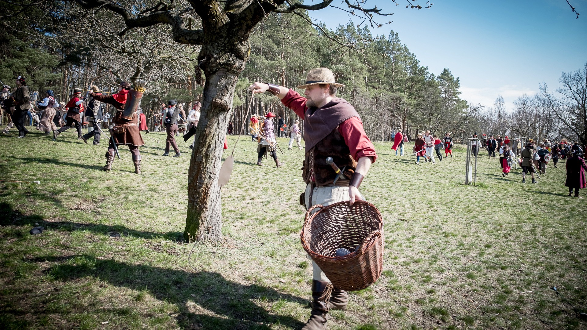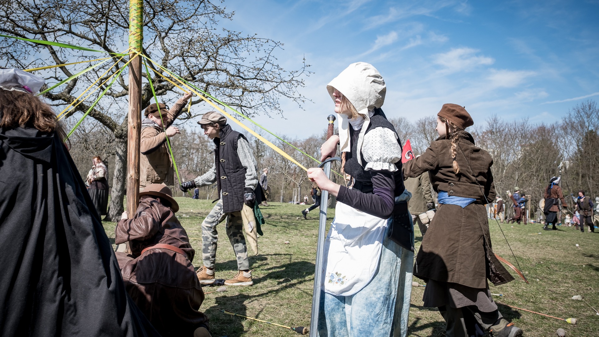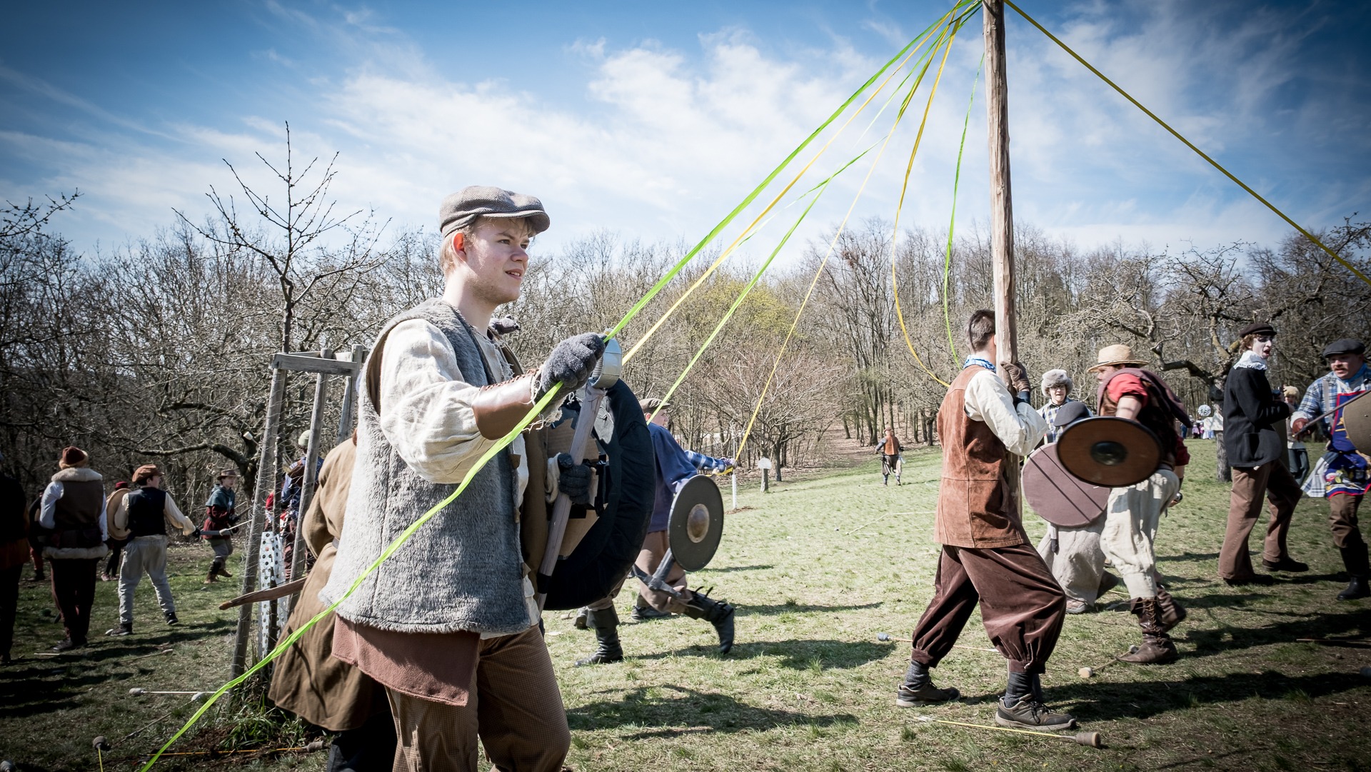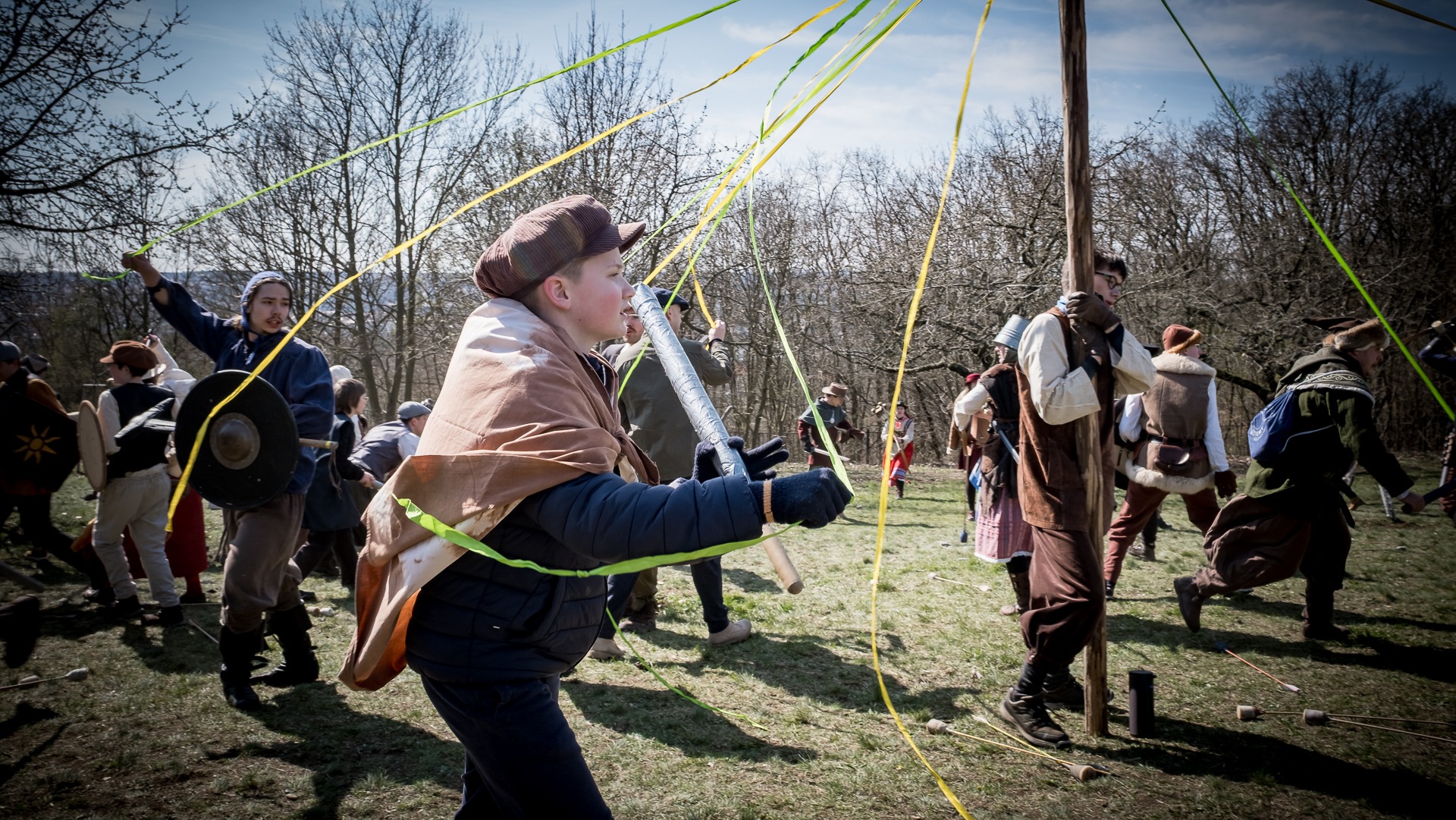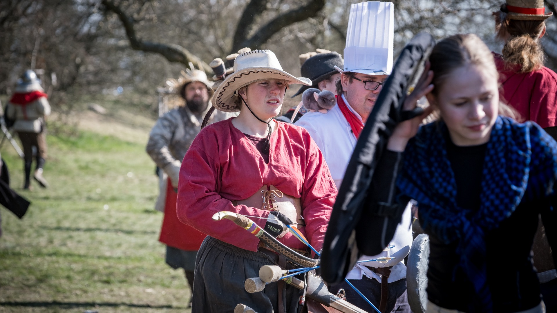 Albis je lesnatou a hornatou zemí daleko stranou zájmu velkých králů a jejich království. Je to divoký kraj a jeho obyvatelé jsou rázní a vzpurní. Blízko Temného lesa se rozkládá od pradávna Ves. Je to pár domů na kopci a několik domů pod kopcem. Na první pohled by se zdála zcela obyčejná – lidé tu obdělávají pole, pasou dobytek a večer posedávají v hospodě. Bystrý pocestný by si však hned všiml, že je tu cosi zvláštního: všichni vesničané bez výjimky nosí pokrývky hlavy.