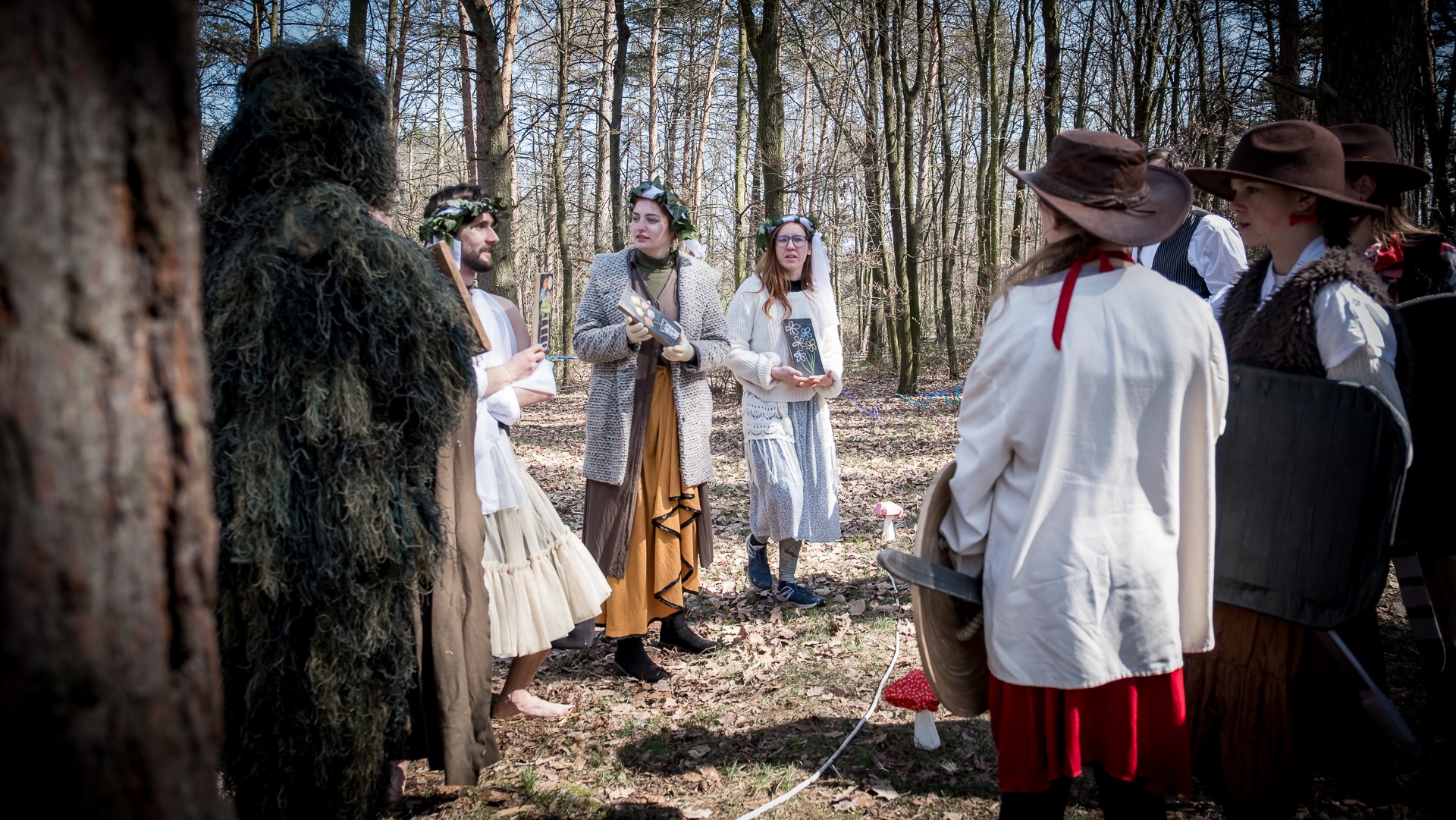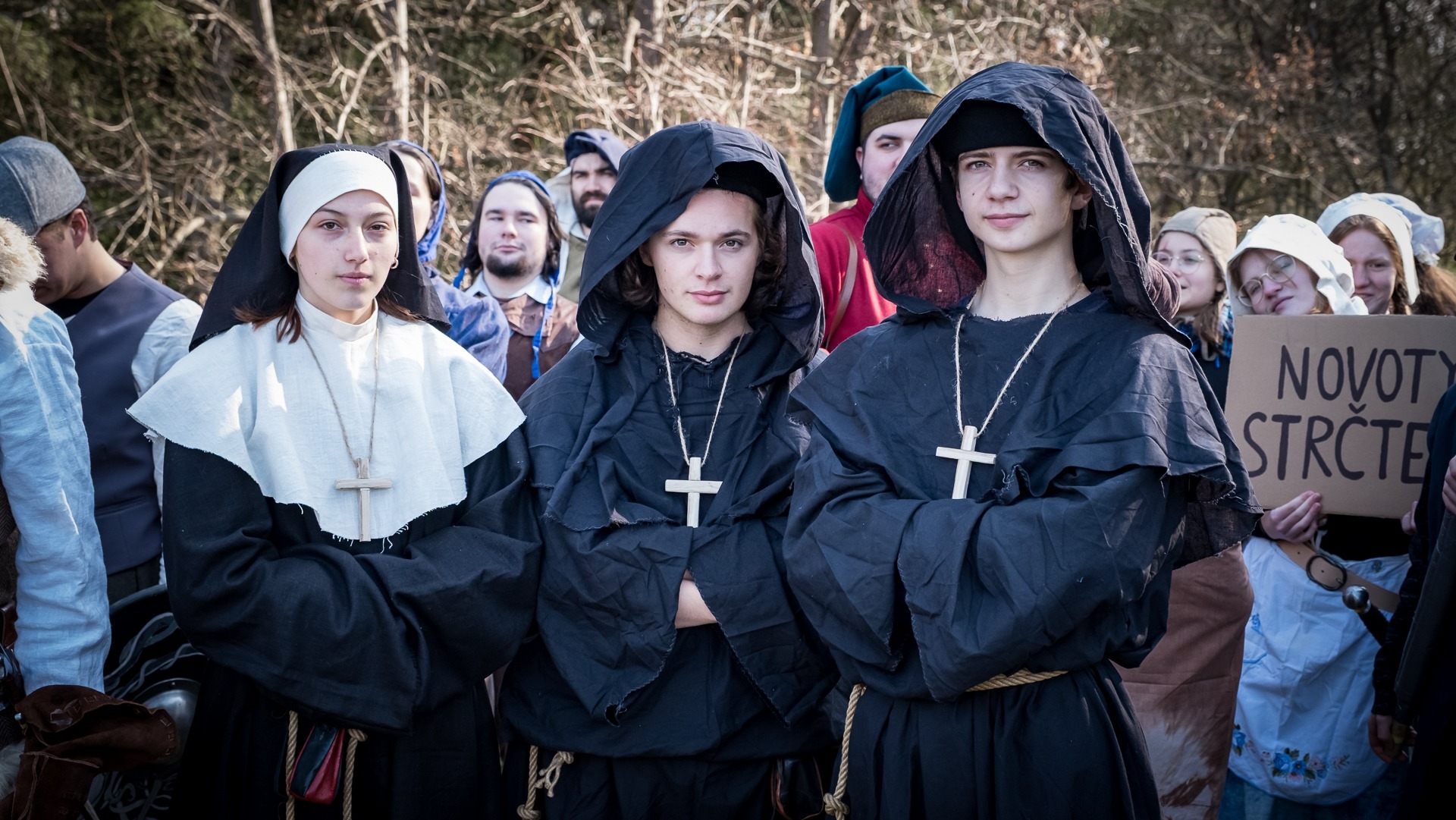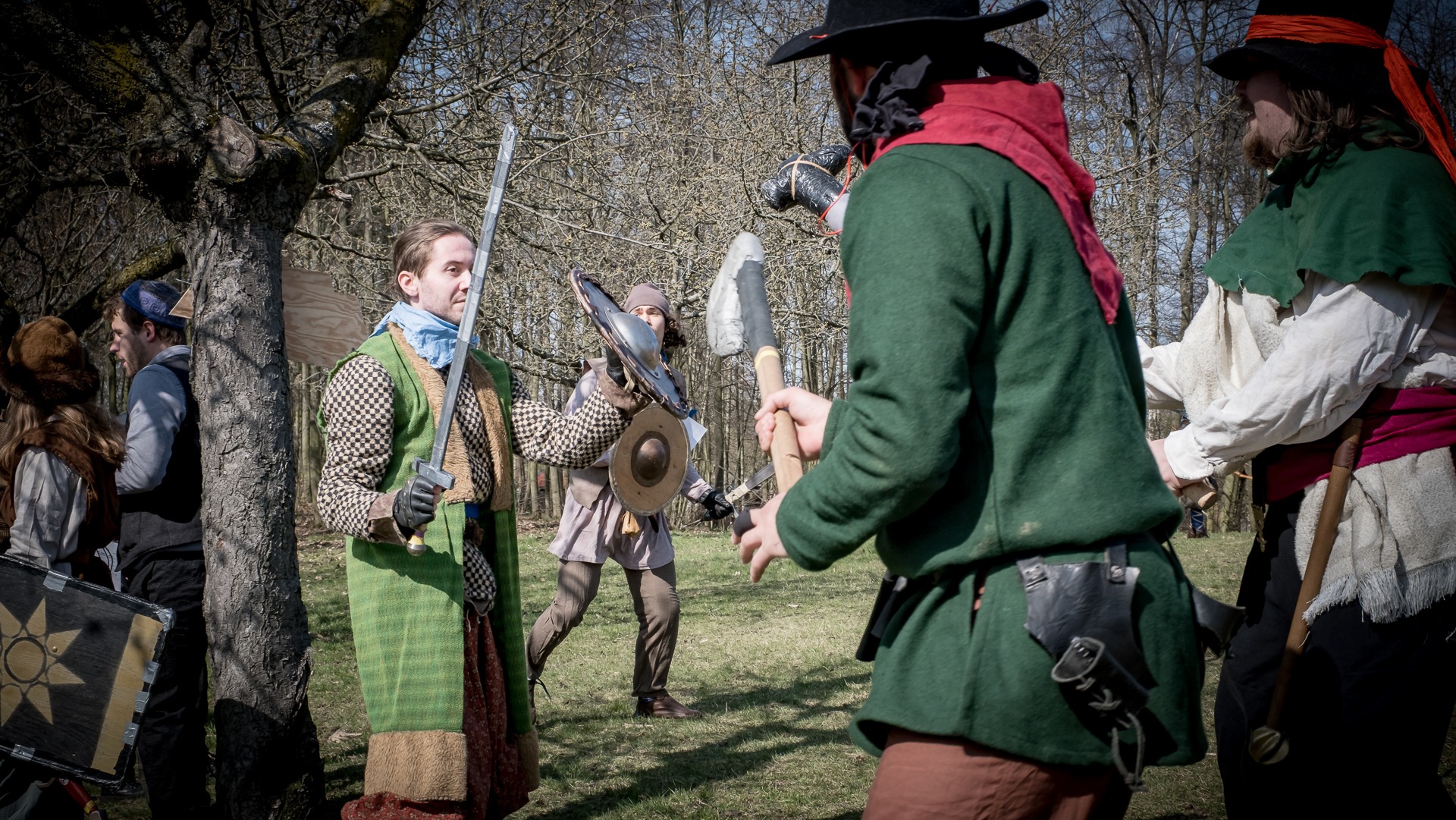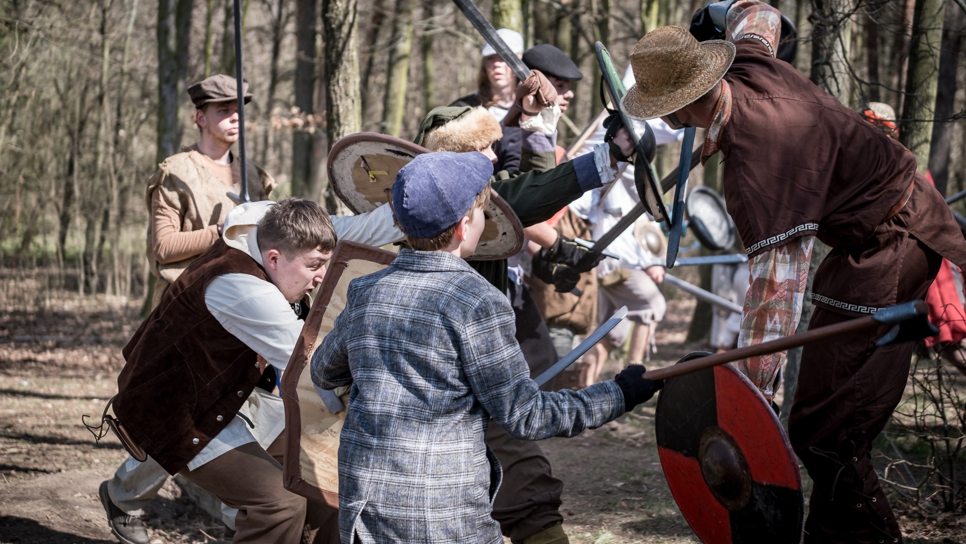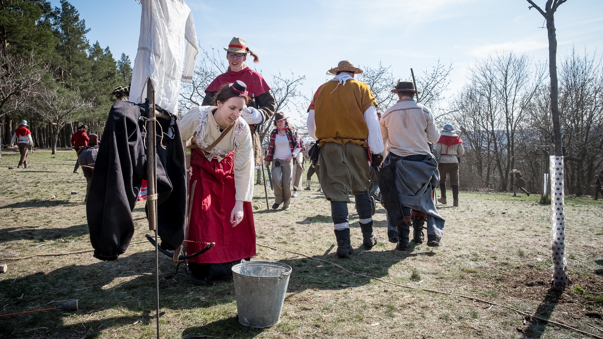 Albis je lesnatou a hornatou zemí daleko stranou zájmu velkých králů a jejich království. Je to divoký kraj a jeho obyvatelé jsou rázní a vzpurní. Blízko Temného lesa se rozkládá od pradávna Ves. Je to pár domů na kopci a několik domů pod kopcem. Na první pohled by se zdála zcela obyčejná – lidé tu obdělávají pole, pasou dobytek a večer posedávají v hospodě. Bystrý pocestný by si však hned všiml, že je tu cosi zvláštního: všichni vesničané bez výjimky nosí pokrývky hlavy.