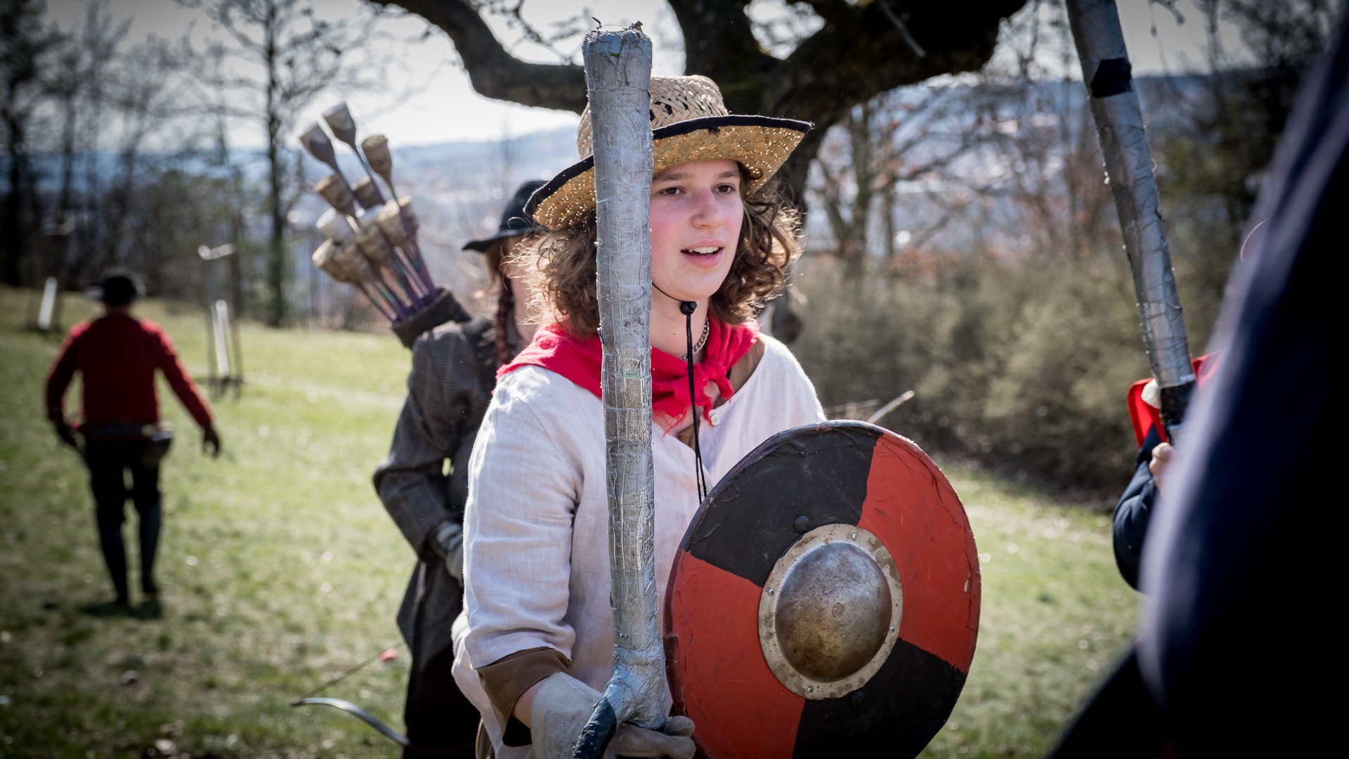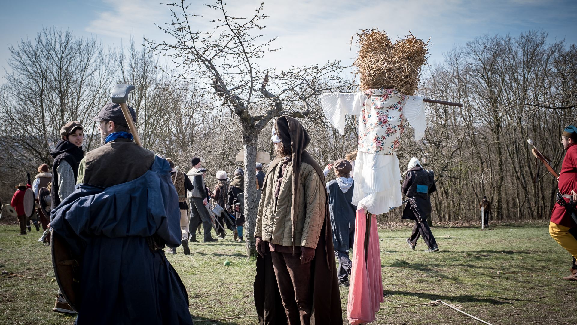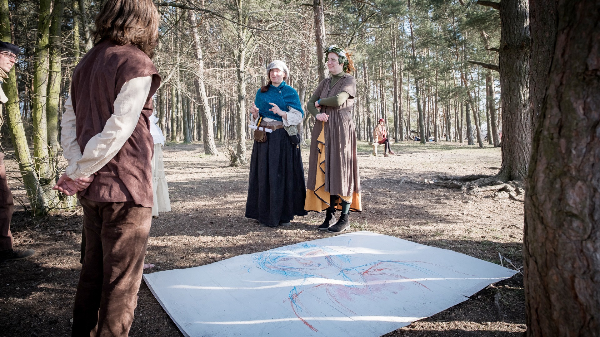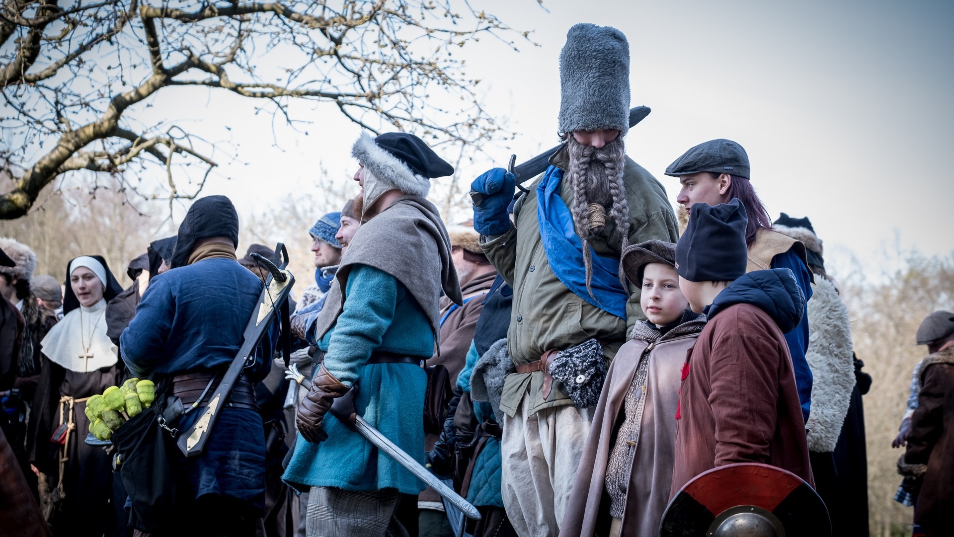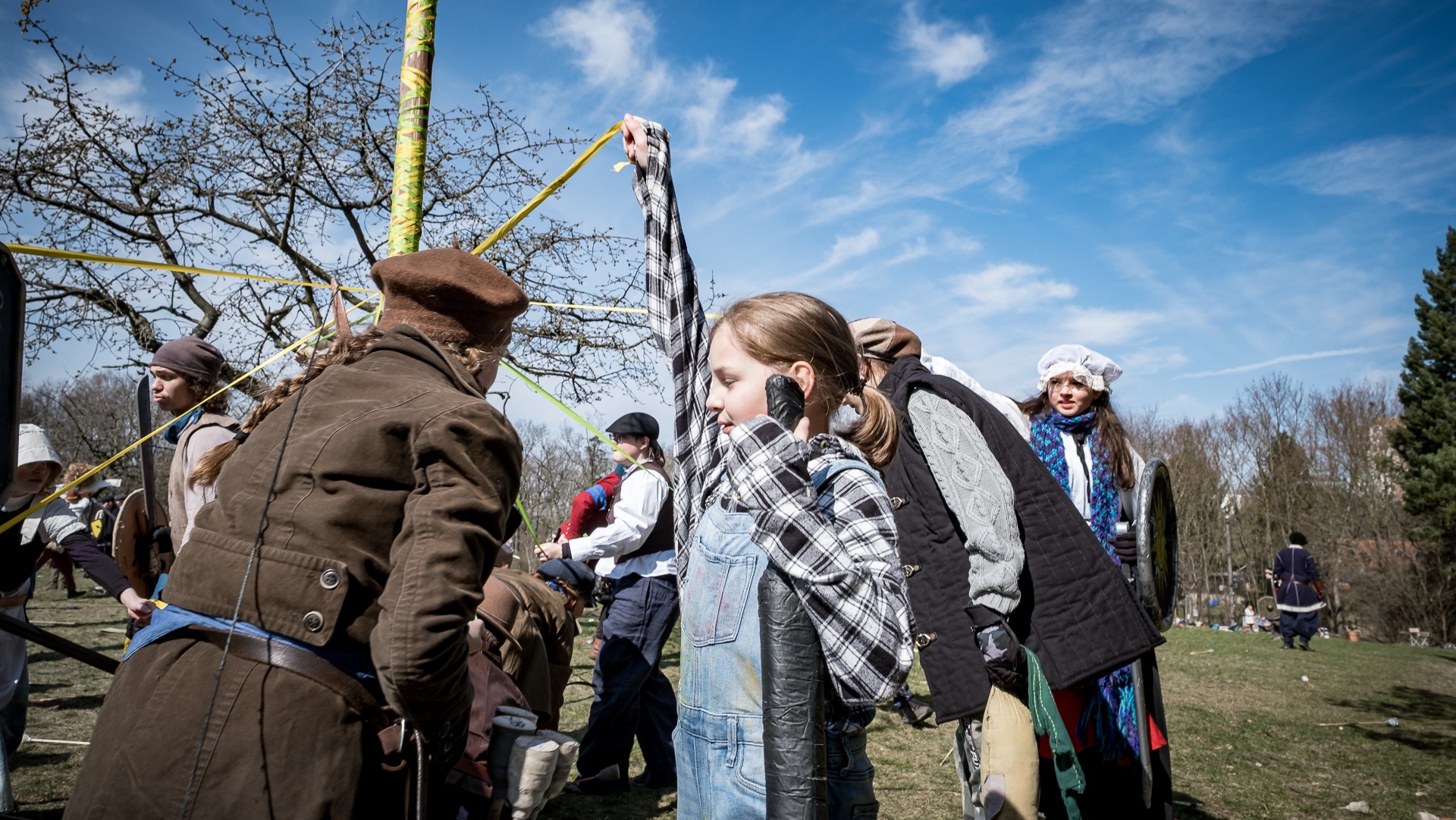 Albis je lesnatou a hornatou zemí daleko stranou zájmu velkých králů a jejich království. Je to divoký kraj a jeho obyvatelé jsou rázní a vzpurní. Blízko Temného lesa se rozkládá od pradávna Ves. Je to pár domů na kopci a několik domů pod kopcem. Na první pohled by se zdála zcela obyčejná – lidé tu obdělávají pole, pasou dobytek a večer posedávají v hospodě. Bystrý pocestný by si však hned všiml, že je tu cosi zvláštního: všichni vesničané bez výjimky nosí pokrývky hlavy.