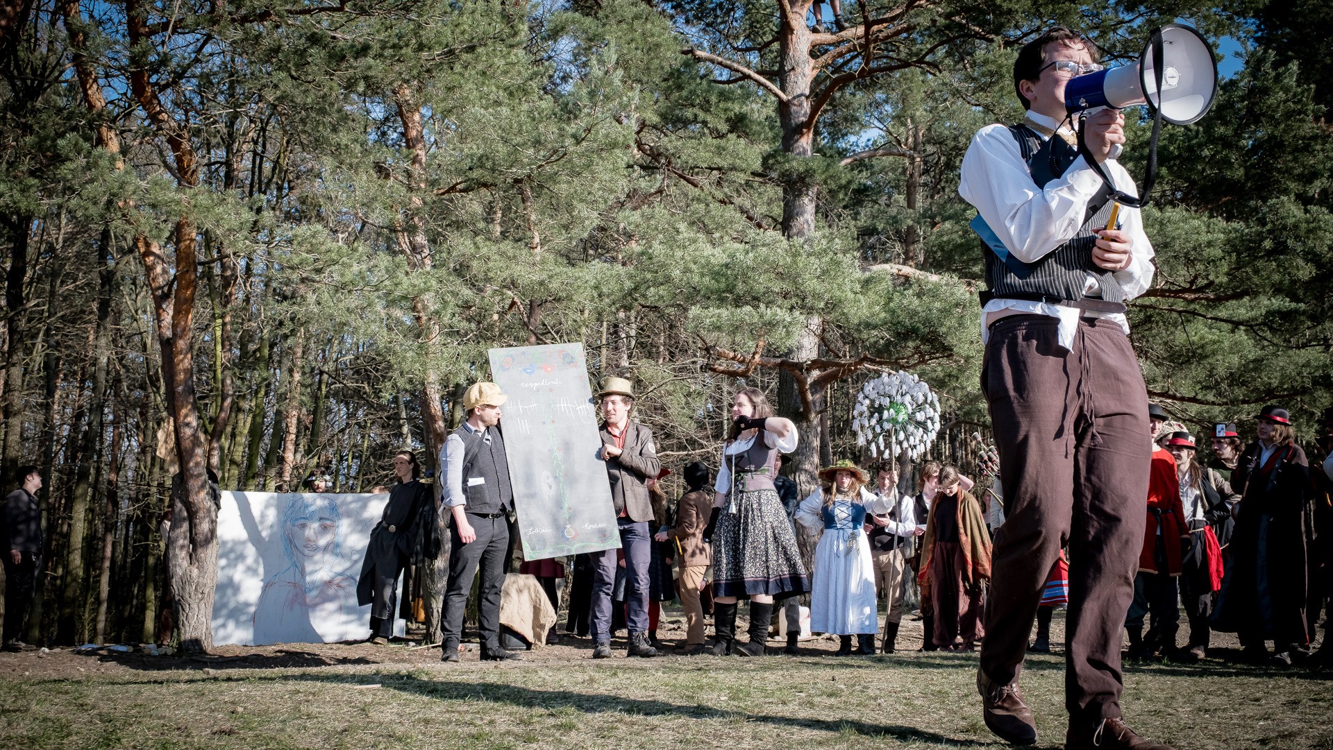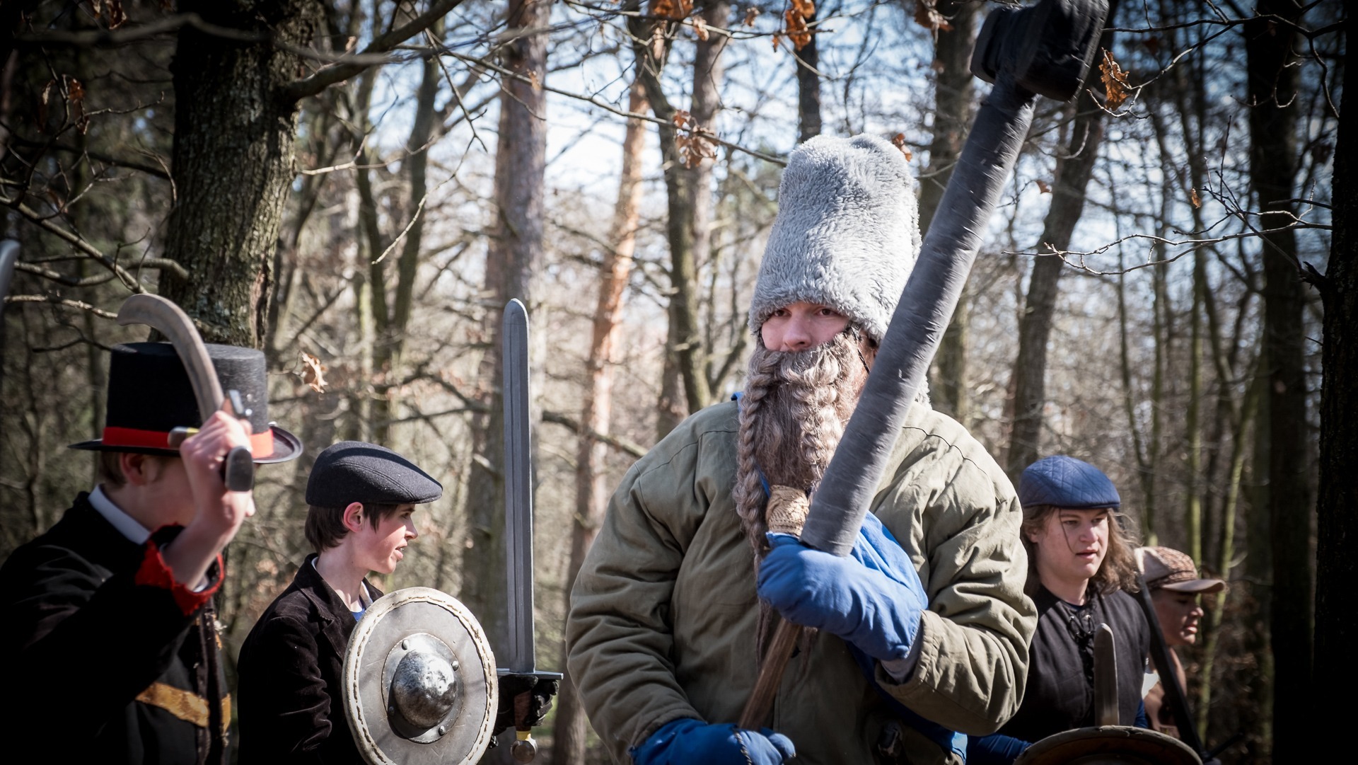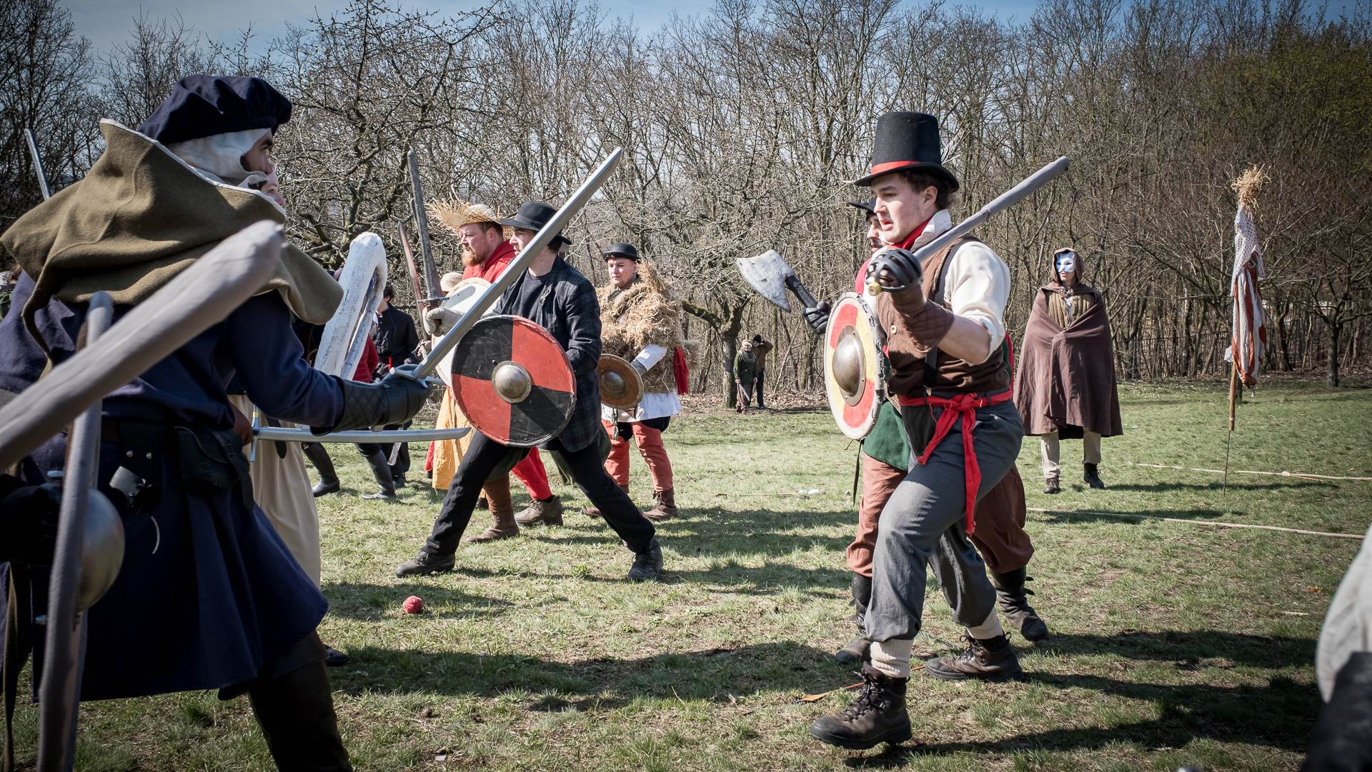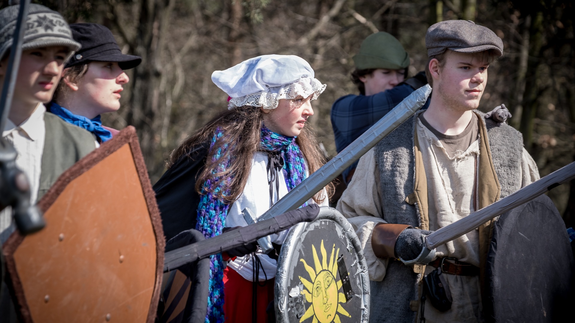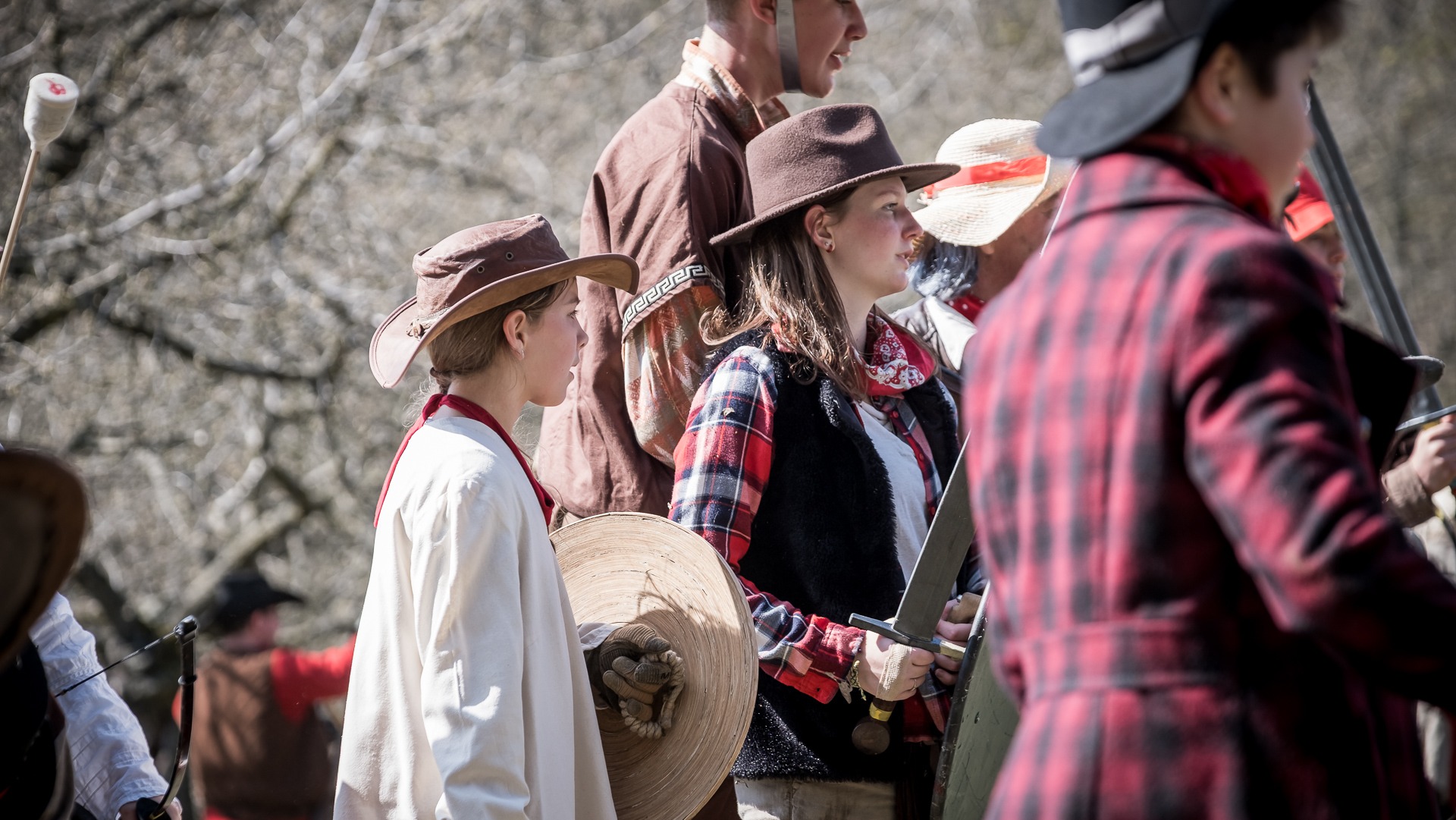 Albis je lesnatou a hornatou zemí daleko stranou zájmu velkých králů a jejich království. Je to divoký kraj a jeho obyvatelé jsou rázní a vzpurní. Blízko Temného lesa se rozkládá od pradávna Ves. Je to pár domů na kopci a několik domů pod kopcem. Na první pohled by se zdála zcela obyčejná – lidé tu obdělávají pole, pasou dobytek a večer posedávají v hospodě. Bystrý pocestný by si však hned všiml, že je tu cosi zvláštního: všichni vesničané bez výjimky nosí pokrývky hlavy.