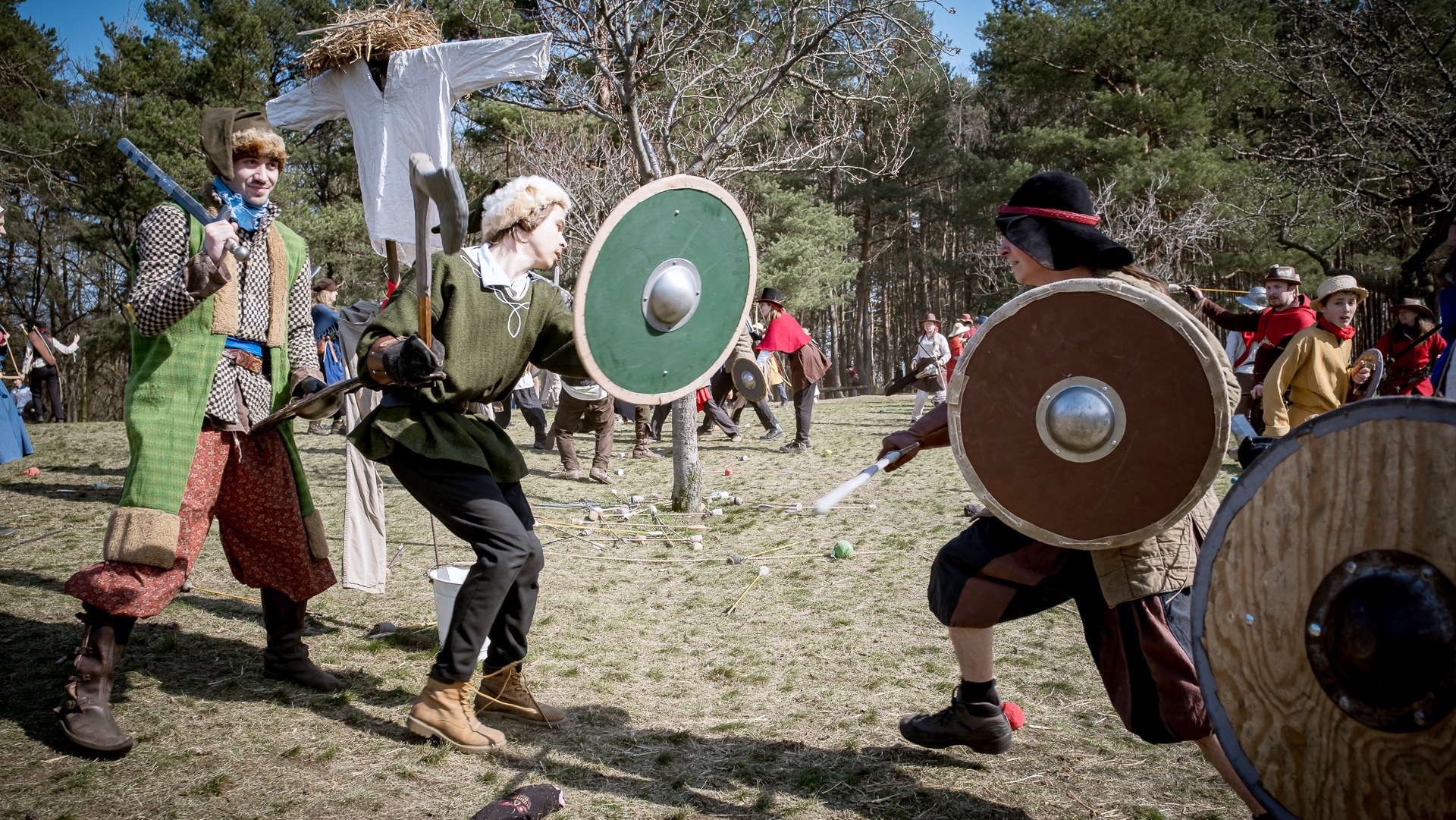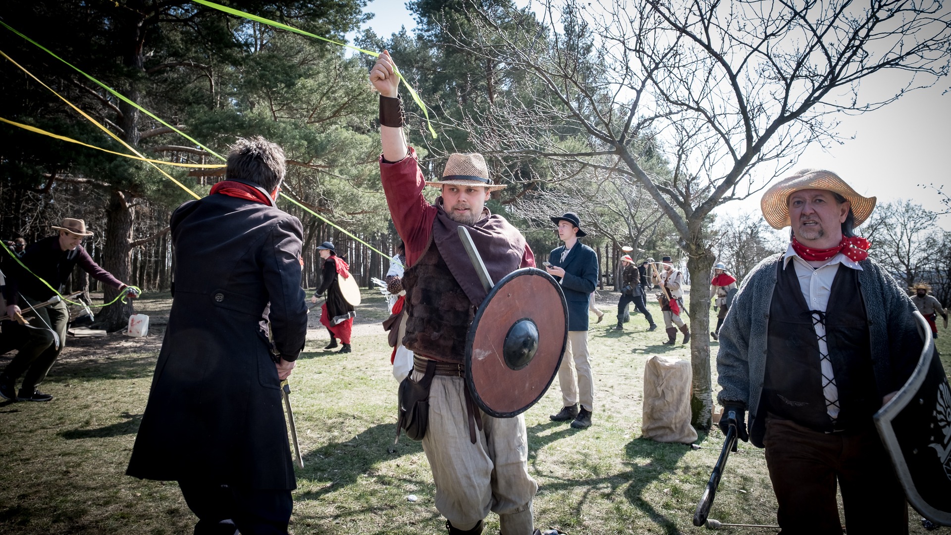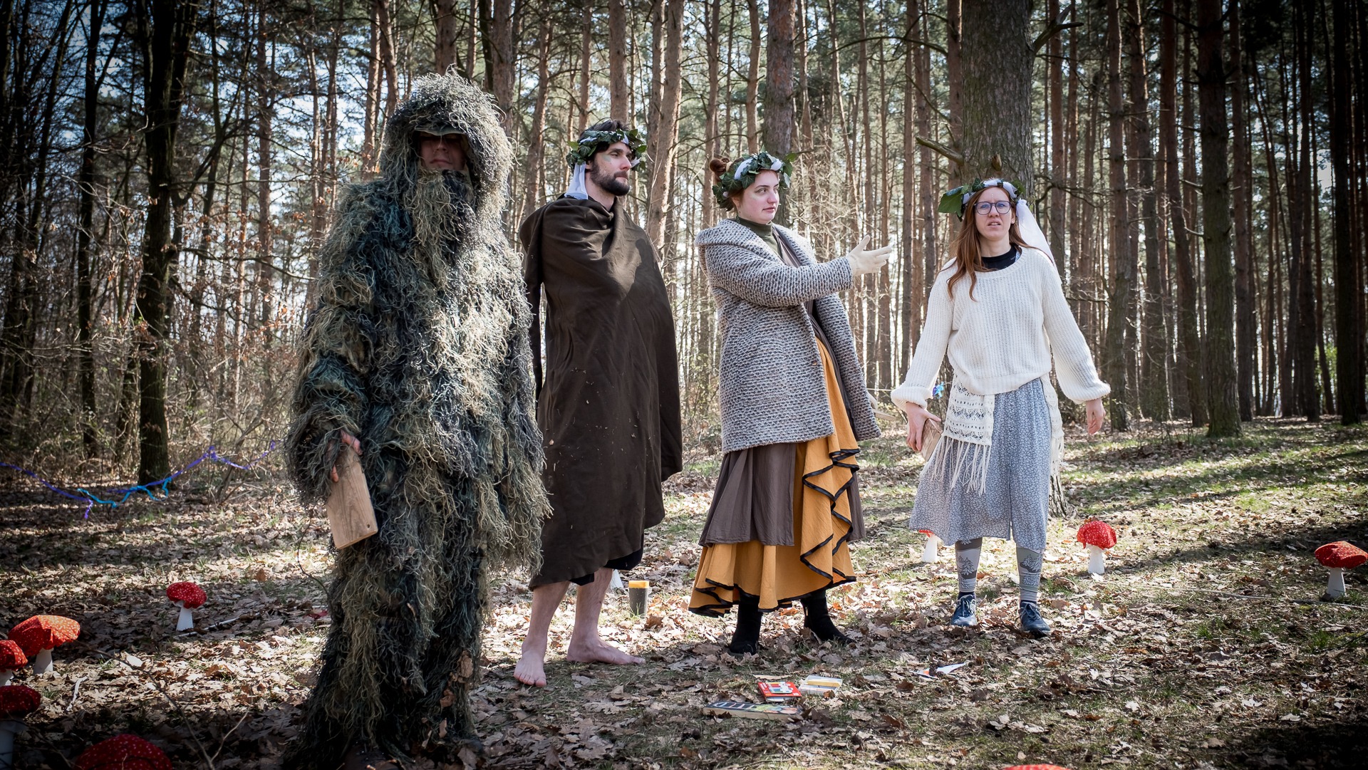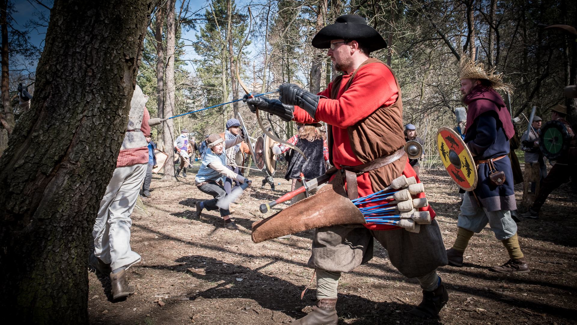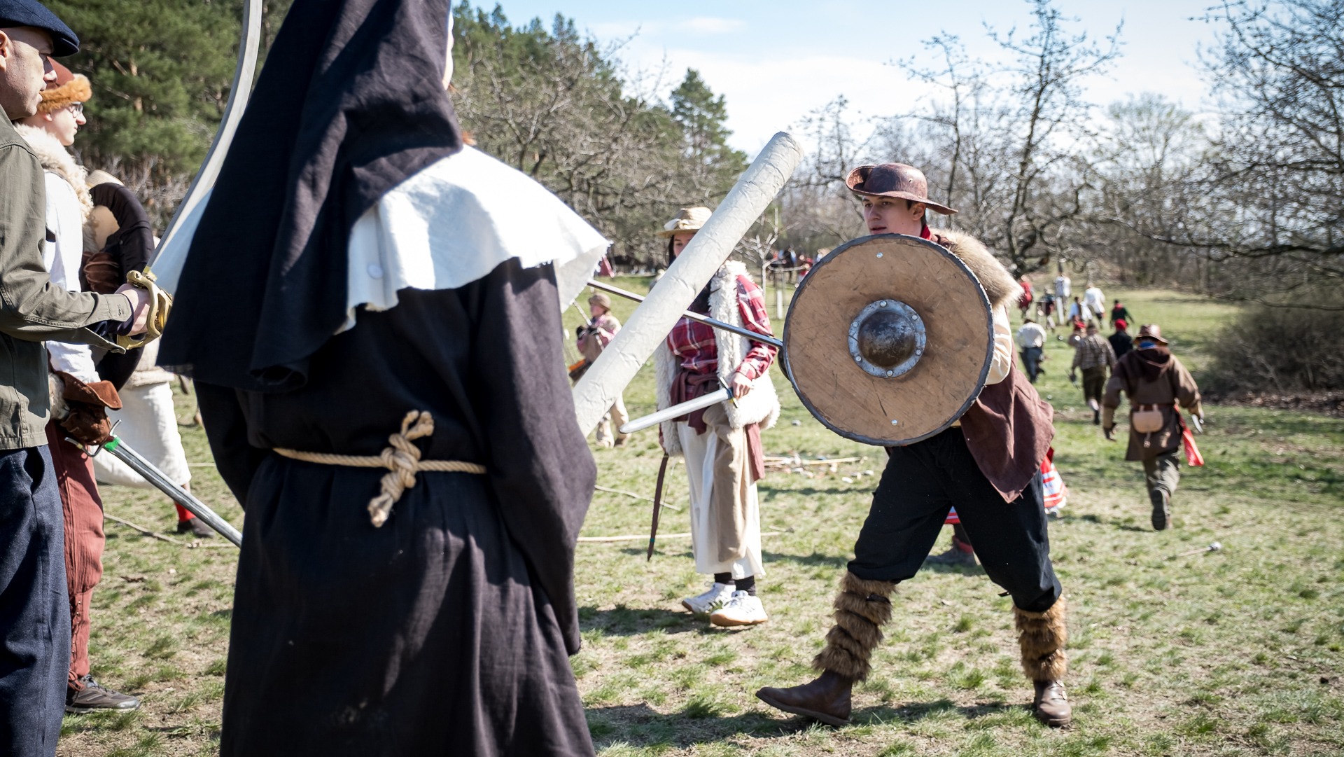 Albis je lesnatou a hornatou zemí daleko stranou zájmu velkých králů a jejich království. Je to divoký kraj a jeho obyvatelé jsou rázní a vzpurní. Blízko Temného lesa se rozkládá od pradávna Ves. Je to pár domů na kopci a několik domů pod kopcem. Na první pohled by se zdála zcela obyčejná – lidé tu obdělávají pole, pasou dobytek a večer posedávají v hospodě. Bystrý pocestný by si však hned všiml, že je tu cosi zvláštního: všichni vesničané bez výjimky nosí pokrývky hlavy.