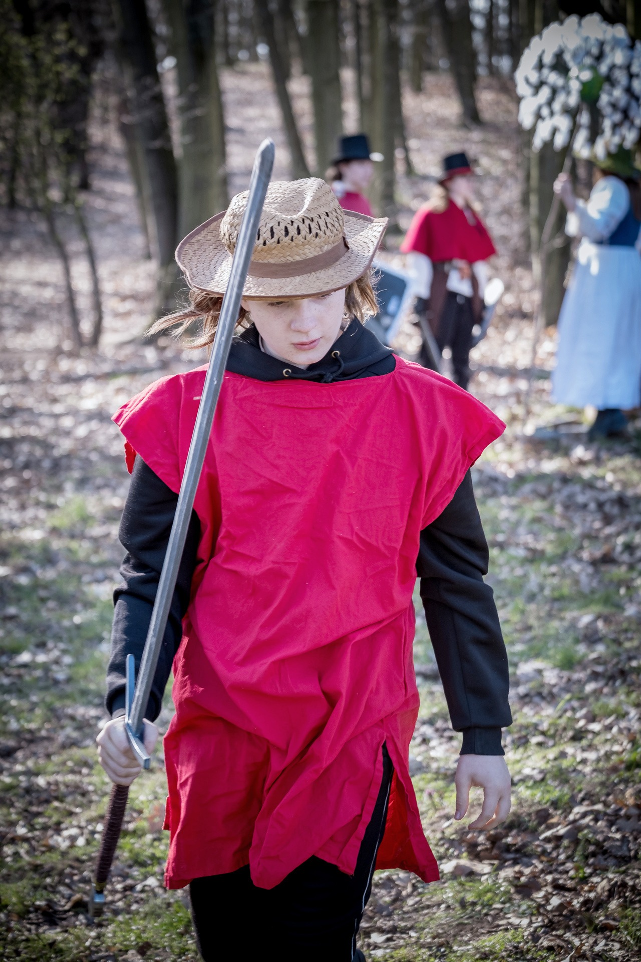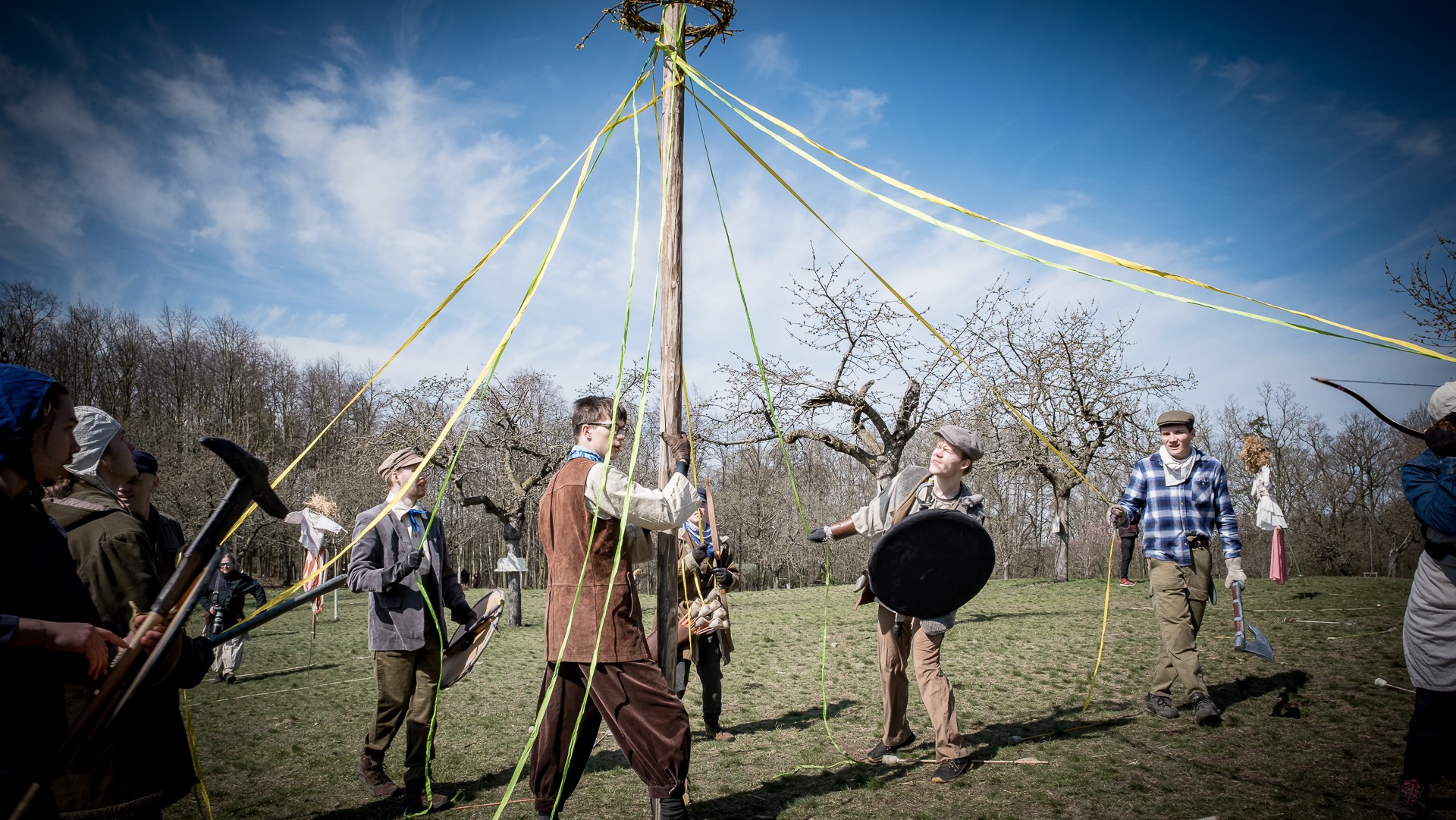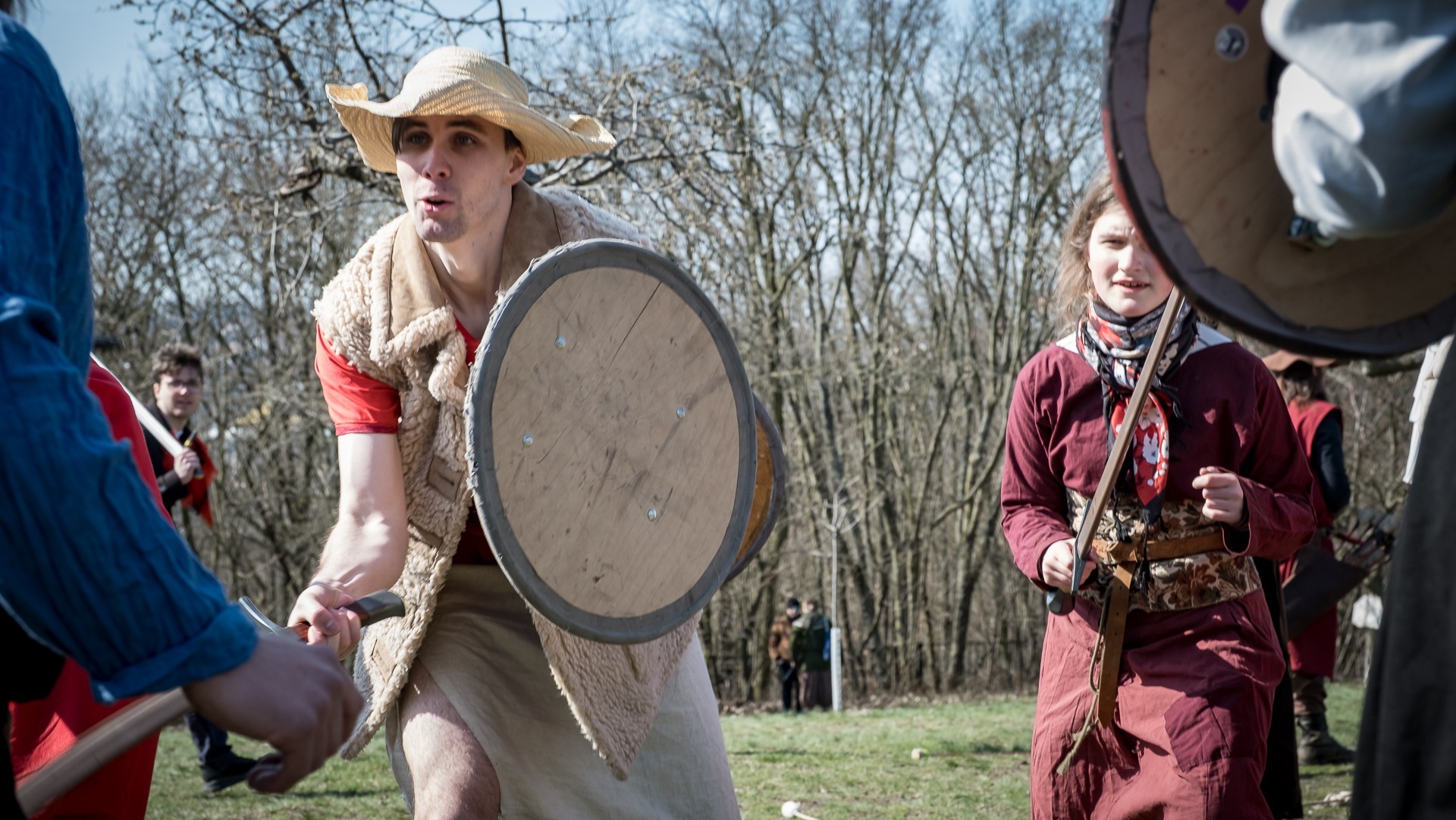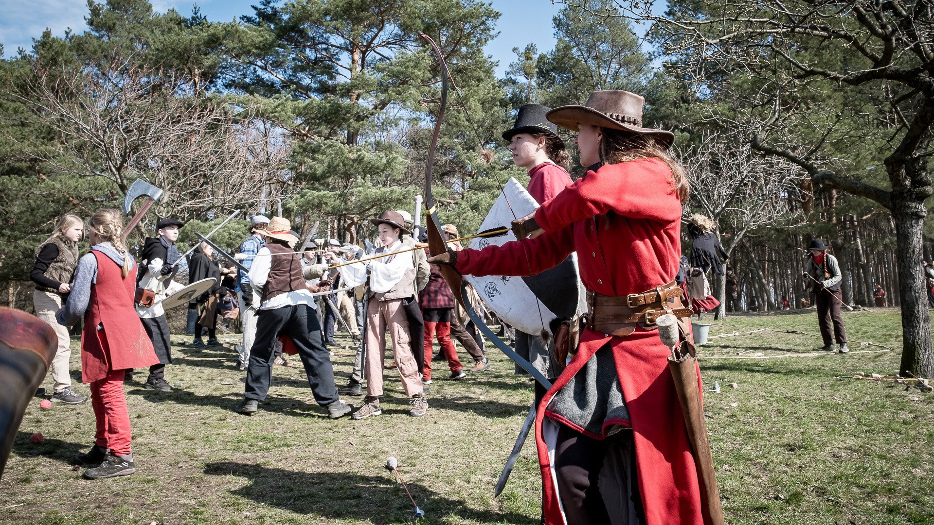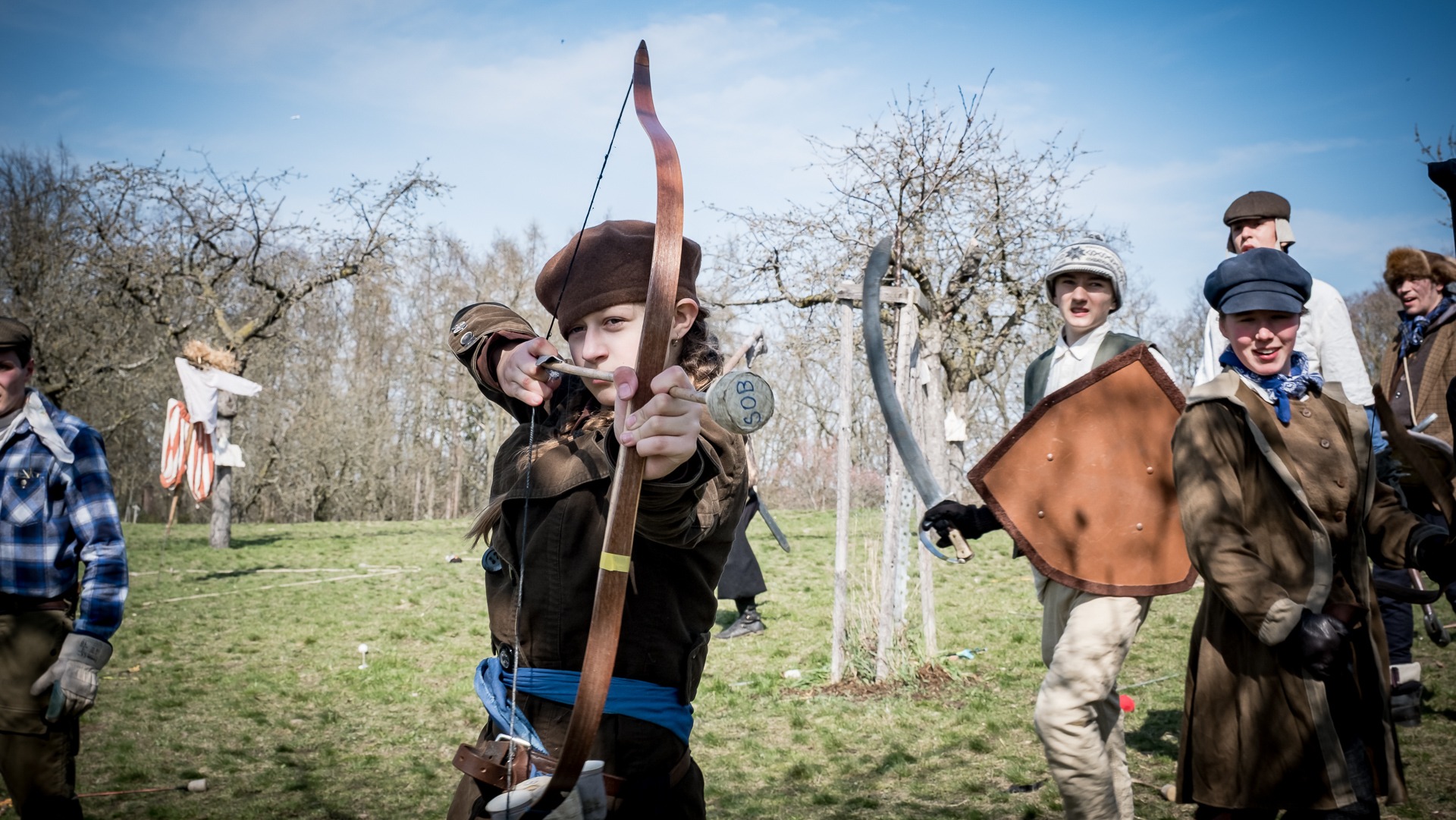 Albis je lesnatou a hornatou zemí daleko stranou zájmu velkých králů a jejich království. Je to divoký kraj a jeho obyvatelé jsou rázní a vzpurní. Blízko Temného lesa se rozkládá od pradávna Ves. Je to pár domů na kopci a několik domů pod kopcem. Na první pohled by se zdála zcela obyčejná – lidé tu obdělávají pole, pasou dobytek a večer posedávají v hospodě. Bystrý pocestný by si však hned všiml, že je tu cosi zvláštního: všichni vesničané bez výjimky nosí pokrývky hlavy.