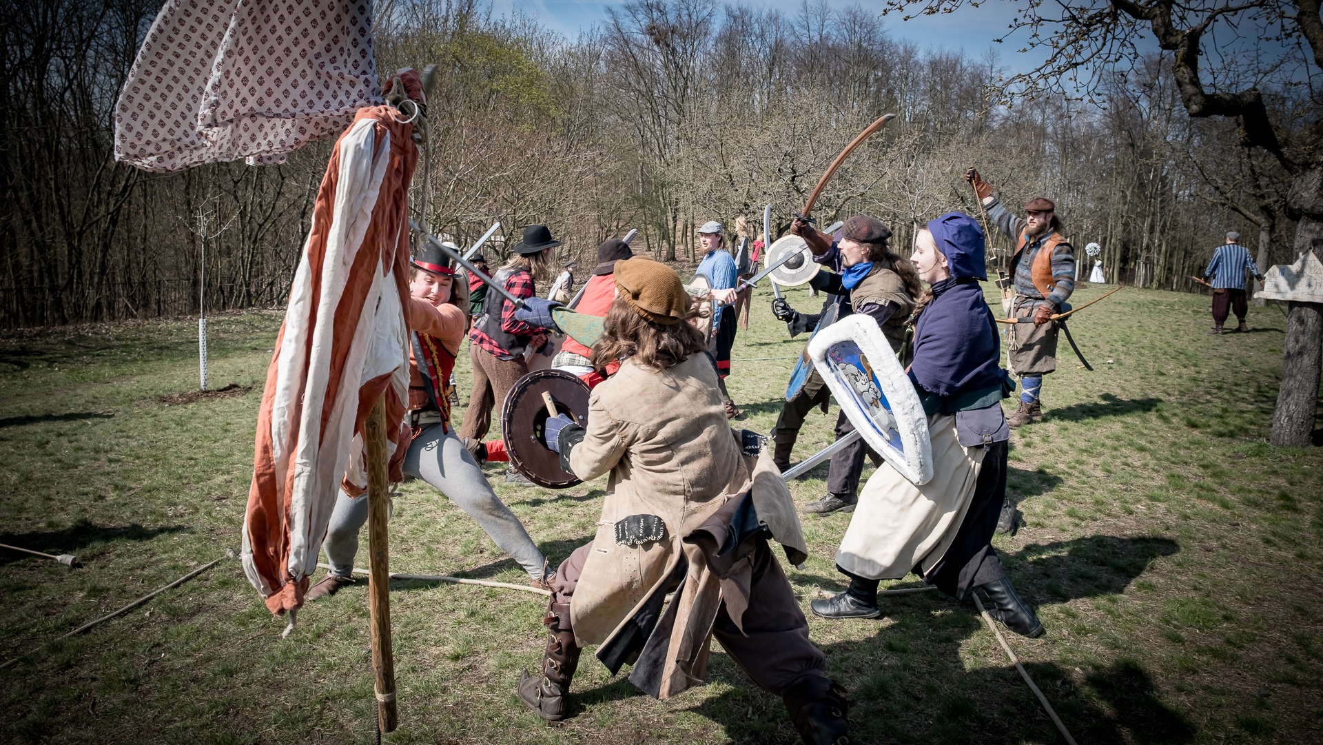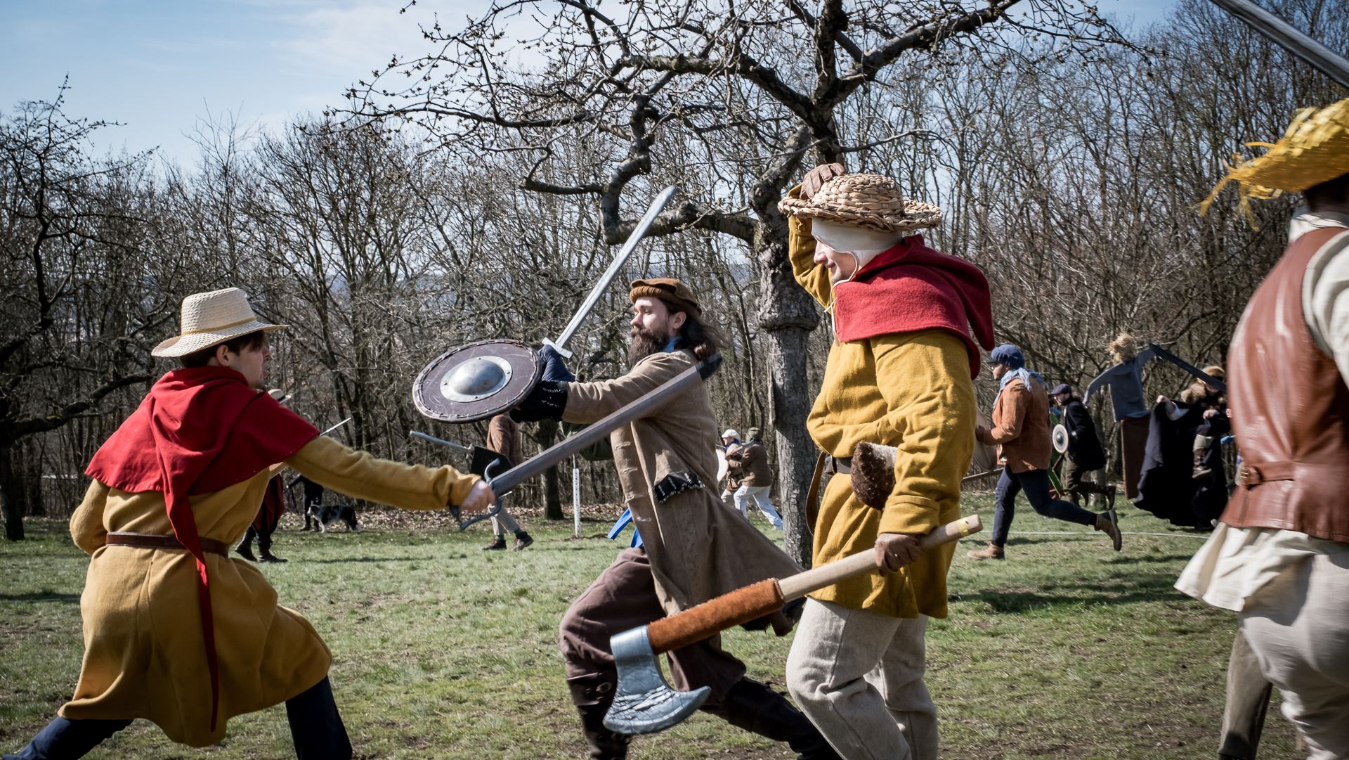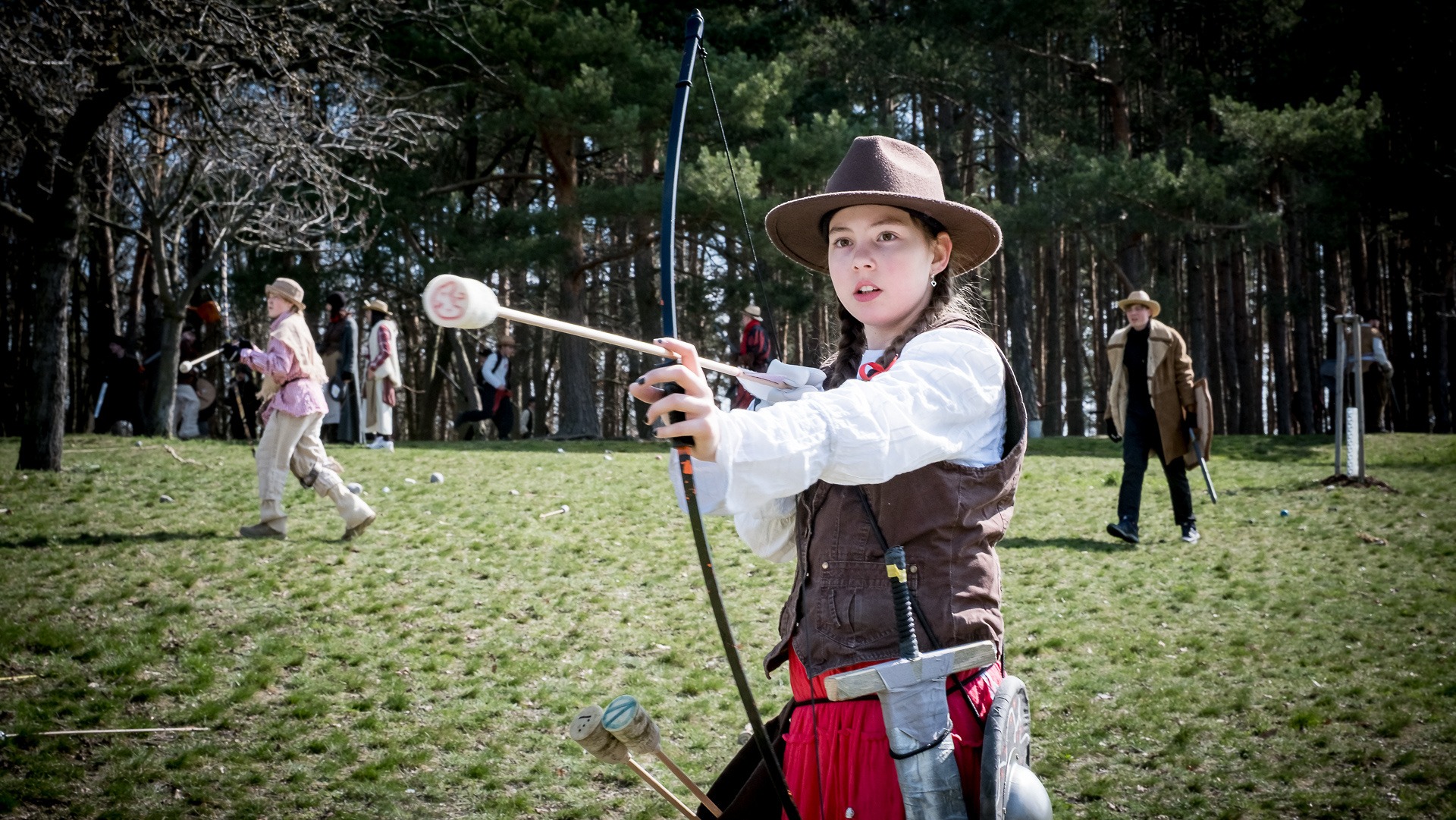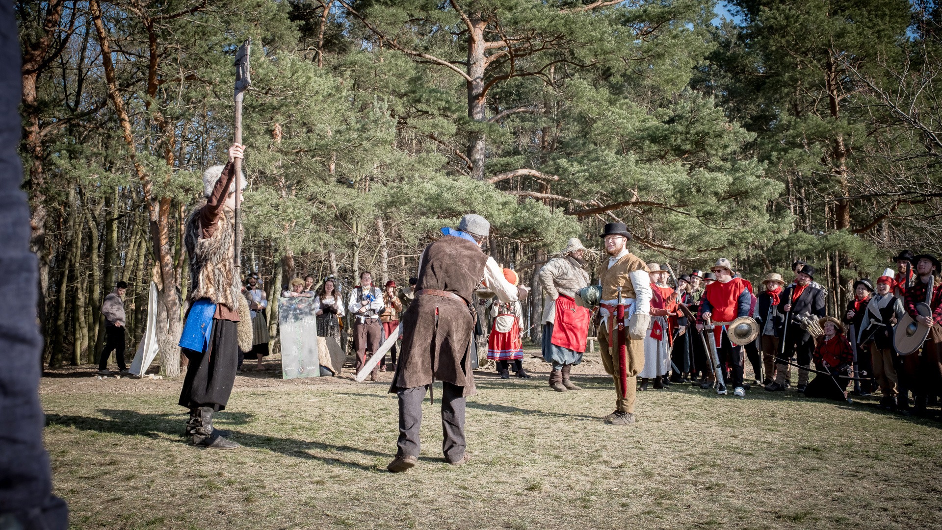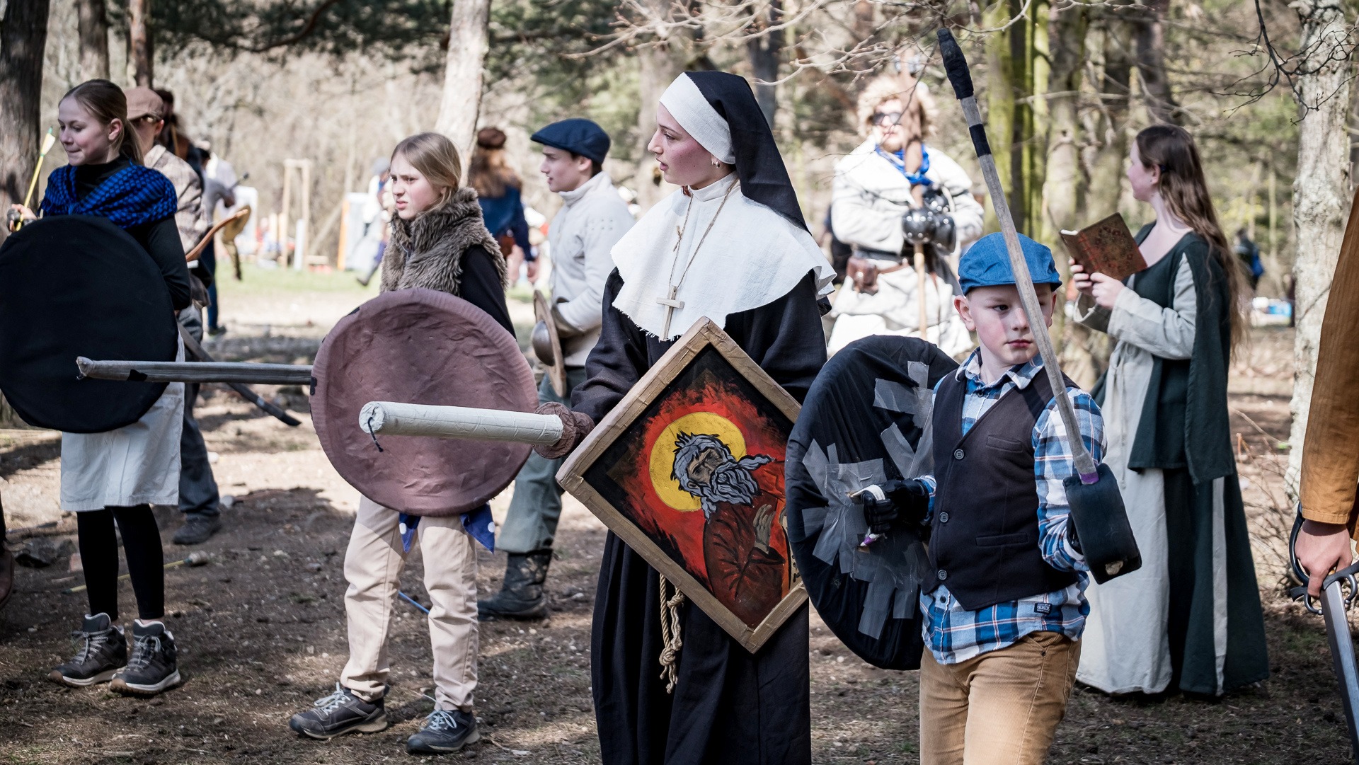 Albis je lesnatou a hornatou zemí daleko stranou zájmu velkých králů a jejich království. Je to divoký kraj a jeho obyvatelé jsou rázní a vzpurní. Blízko Temného lesa se rozkládá od pradávna Ves. Je to pár domů na kopci a několik domů pod kopcem. Na první pohled by se zdála zcela obyčejná – lidé tu obdělávají pole, pasou dobytek a večer posedávají v hospodě. Bystrý pocestný by si však hned všiml, že je tu cosi zvláštního: všichni vesničané bez výjimky nosí pokrývky hlavy.