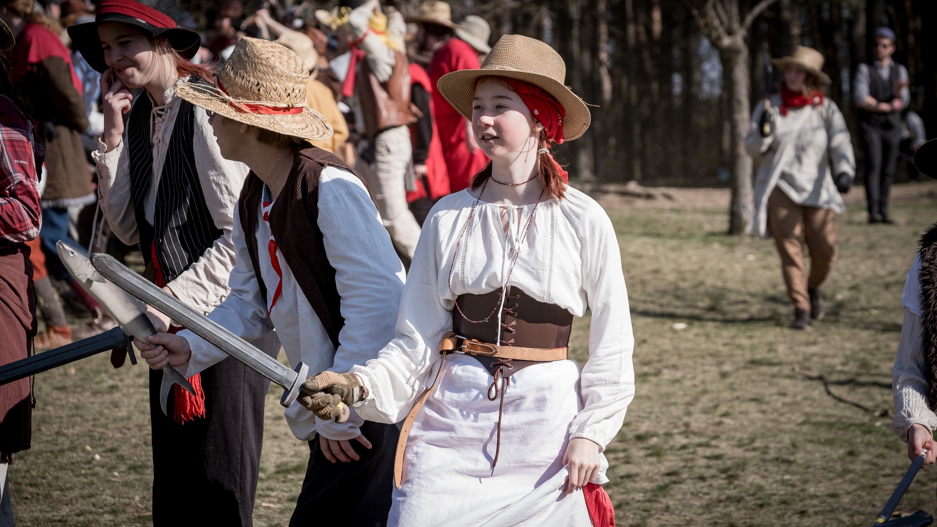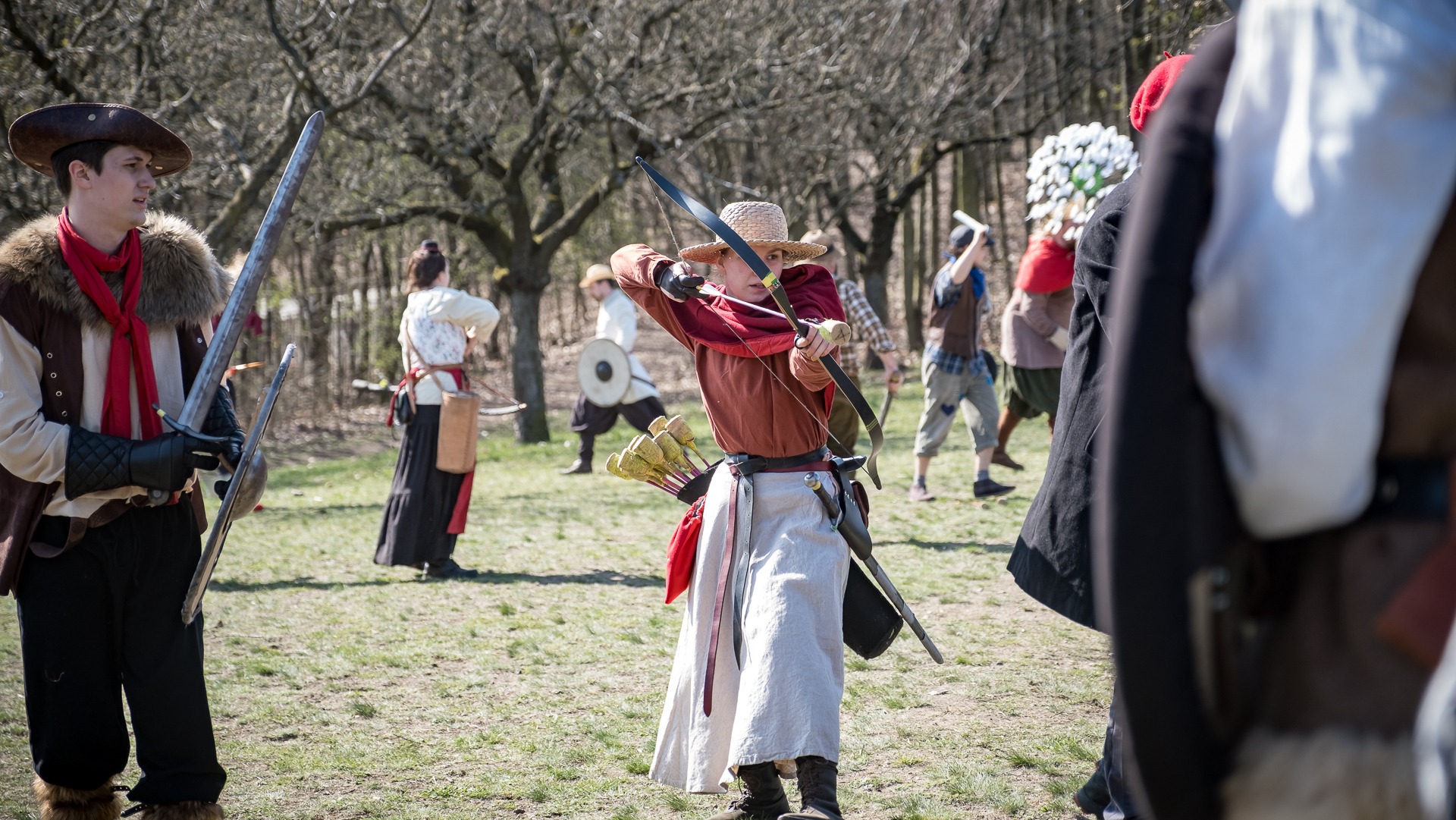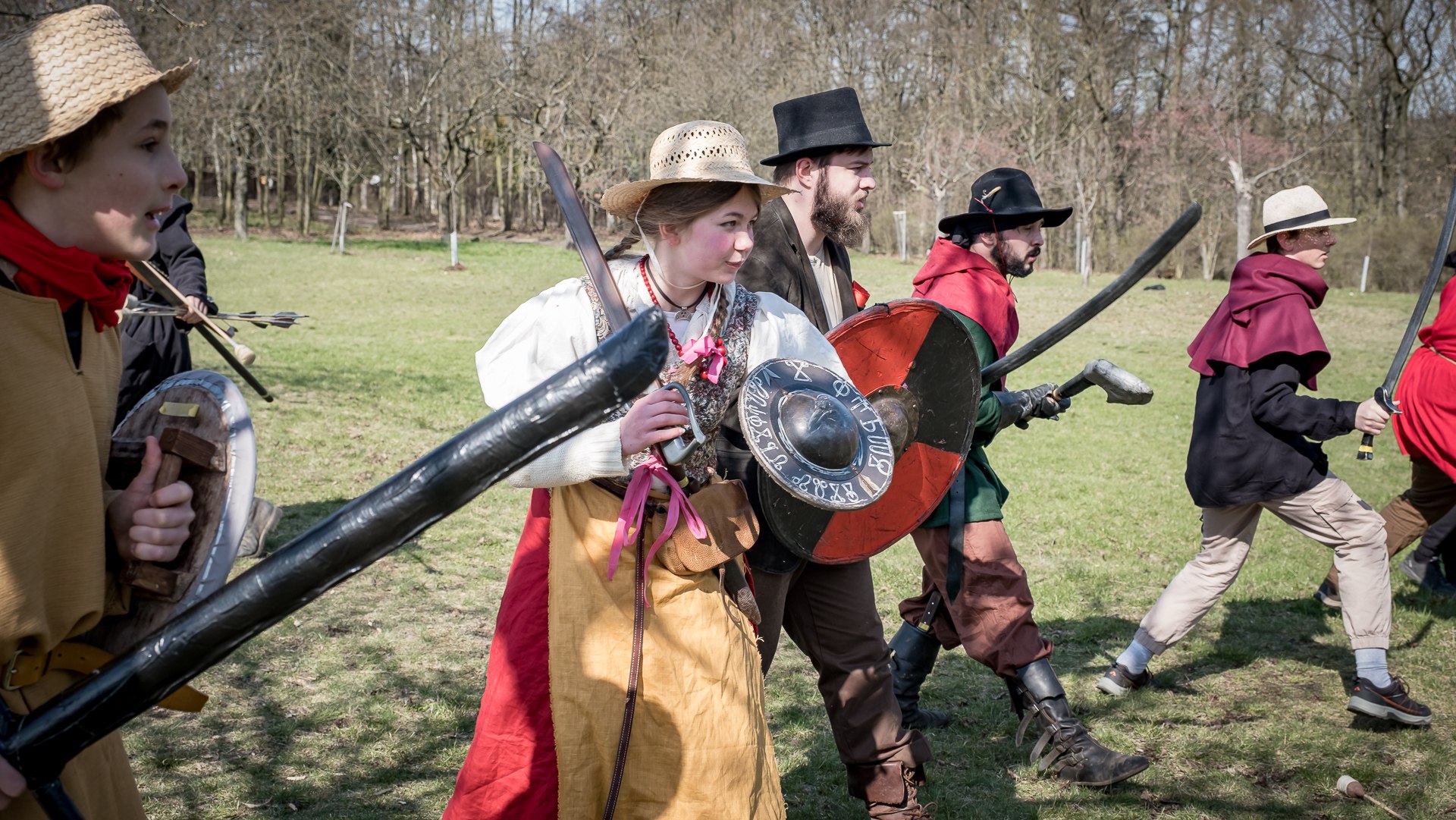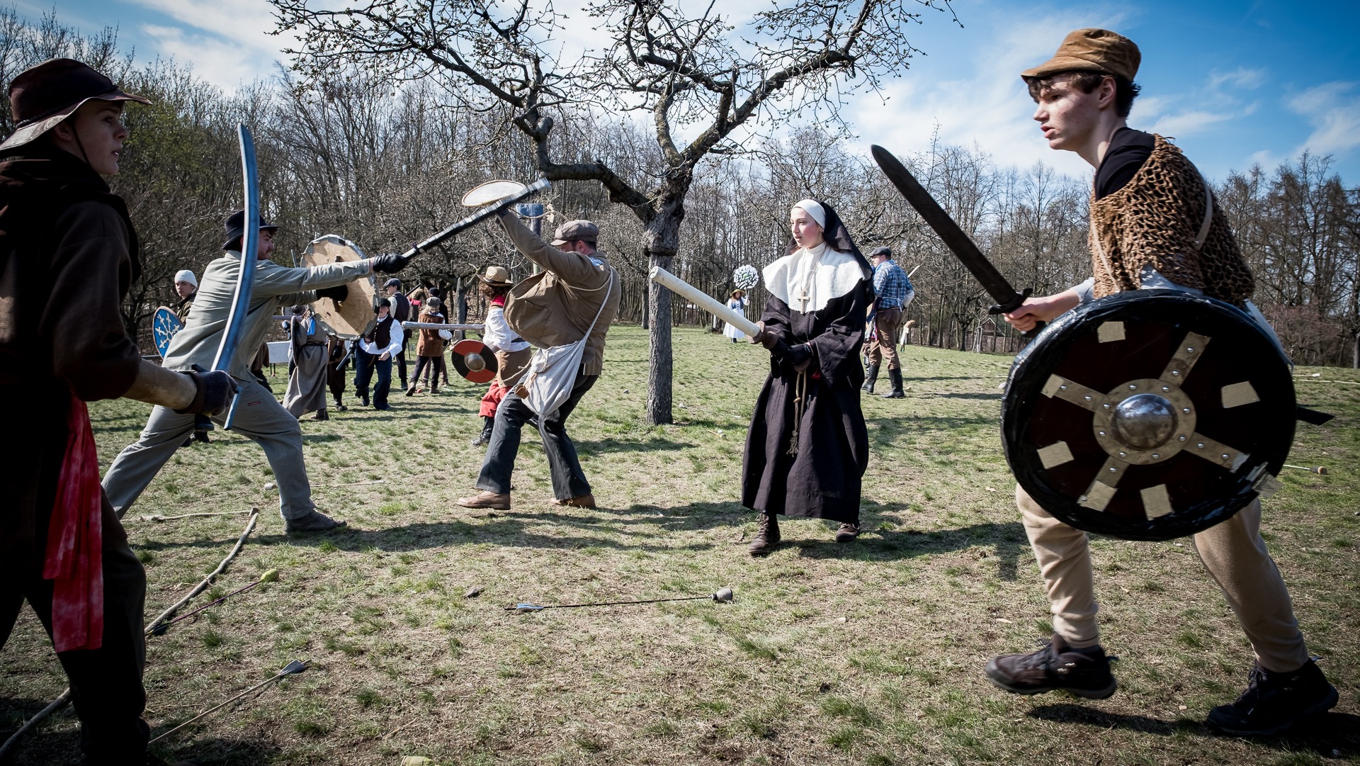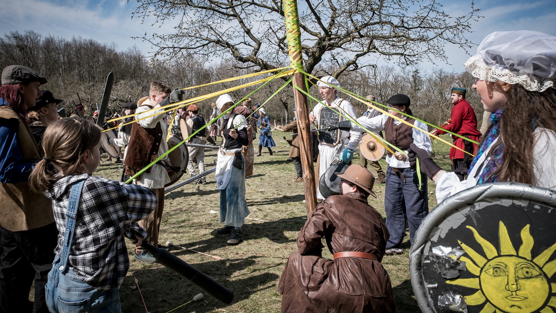 Albis je lesnatou a hornatou zemí daleko stranou zájmu velkých králů a jejich království. Je to divoký kraj a jeho obyvatelé jsou rázní a vzpurní. Blízko Temného lesa se rozkládá od pradávna Ves. Je to pár domů na kopci a několik domů pod kopcem. Na první pohled by se zdála zcela obyčejná – lidé tu obdělávají pole, pasou dobytek a večer posedávají v hospodě. Bystrý pocestný by si však hned všiml, že je tu cosi zvláštního: všichni vesničané bez výjimky nosí pokrývky hlavy.
