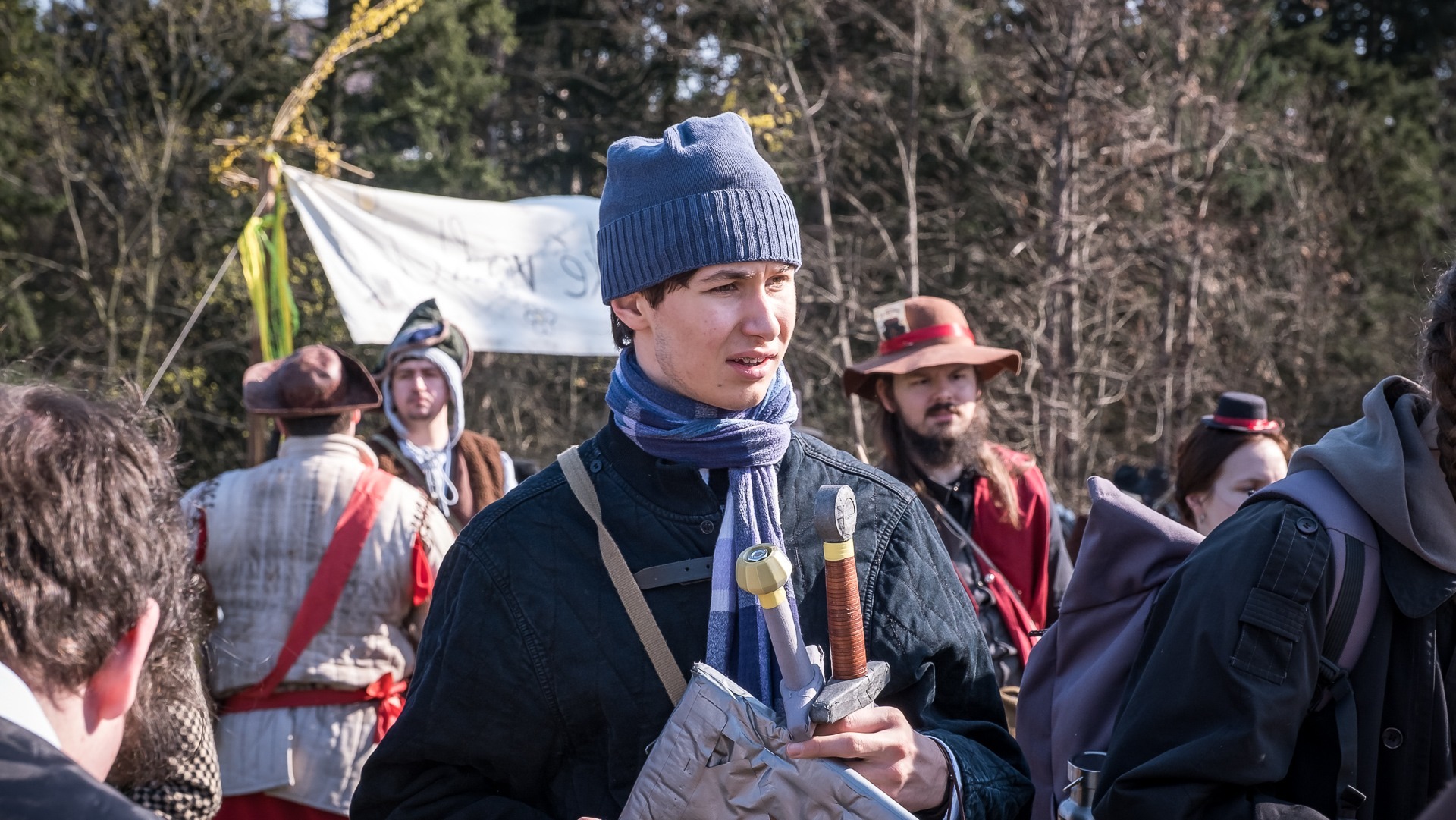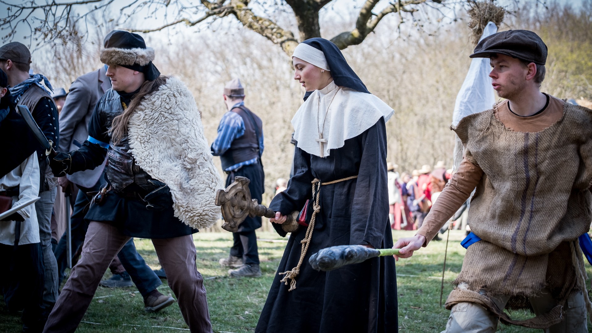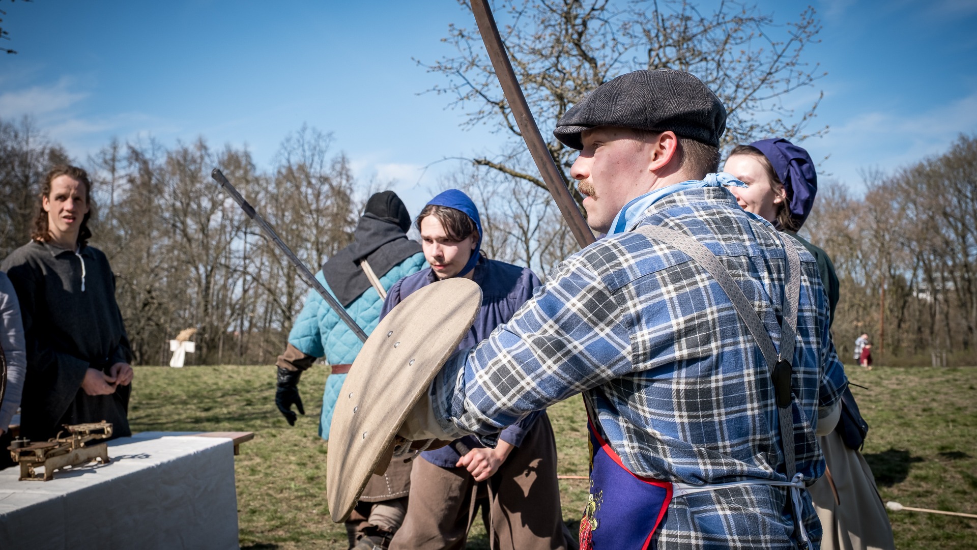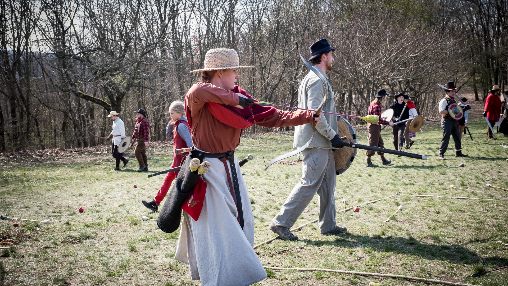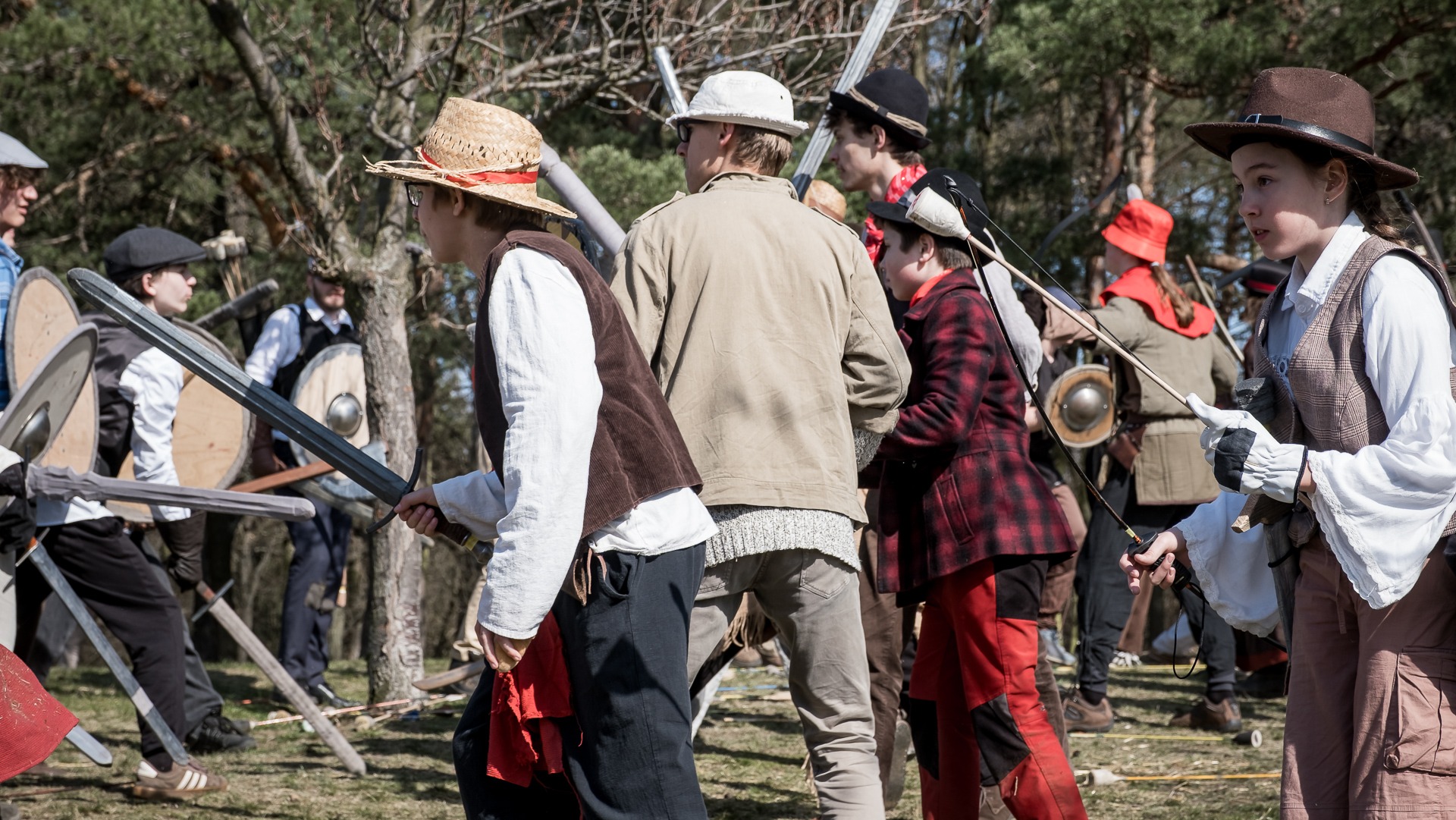 Albis je lesnatou a hornatou zemí daleko stranou zájmu velkých králů a jejich království. Je to divoký kraj a jeho obyvatelé jsou rázní a vzpurní. Blízko Temného lesa se rozkládá od pradávna Ves. Je to pár domů na kopci a několik domů pod kopcem. Na první pohled by se zdála zcela obyčejná – lidé tu obdělávají pole, pasou dobytek a večer posedávají v hospodě. Bystrý pocestný by si však hned všiml, že je tu cosi zvláštního: všichni vesničané bez výjimky nosí pokrývky hlavy.
