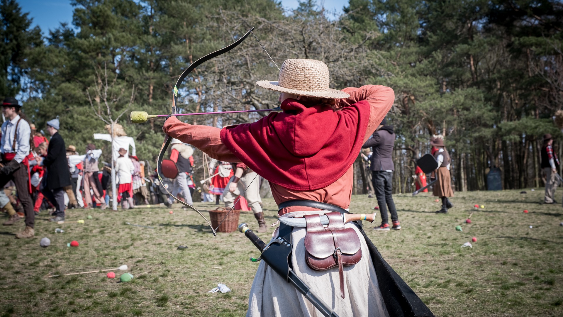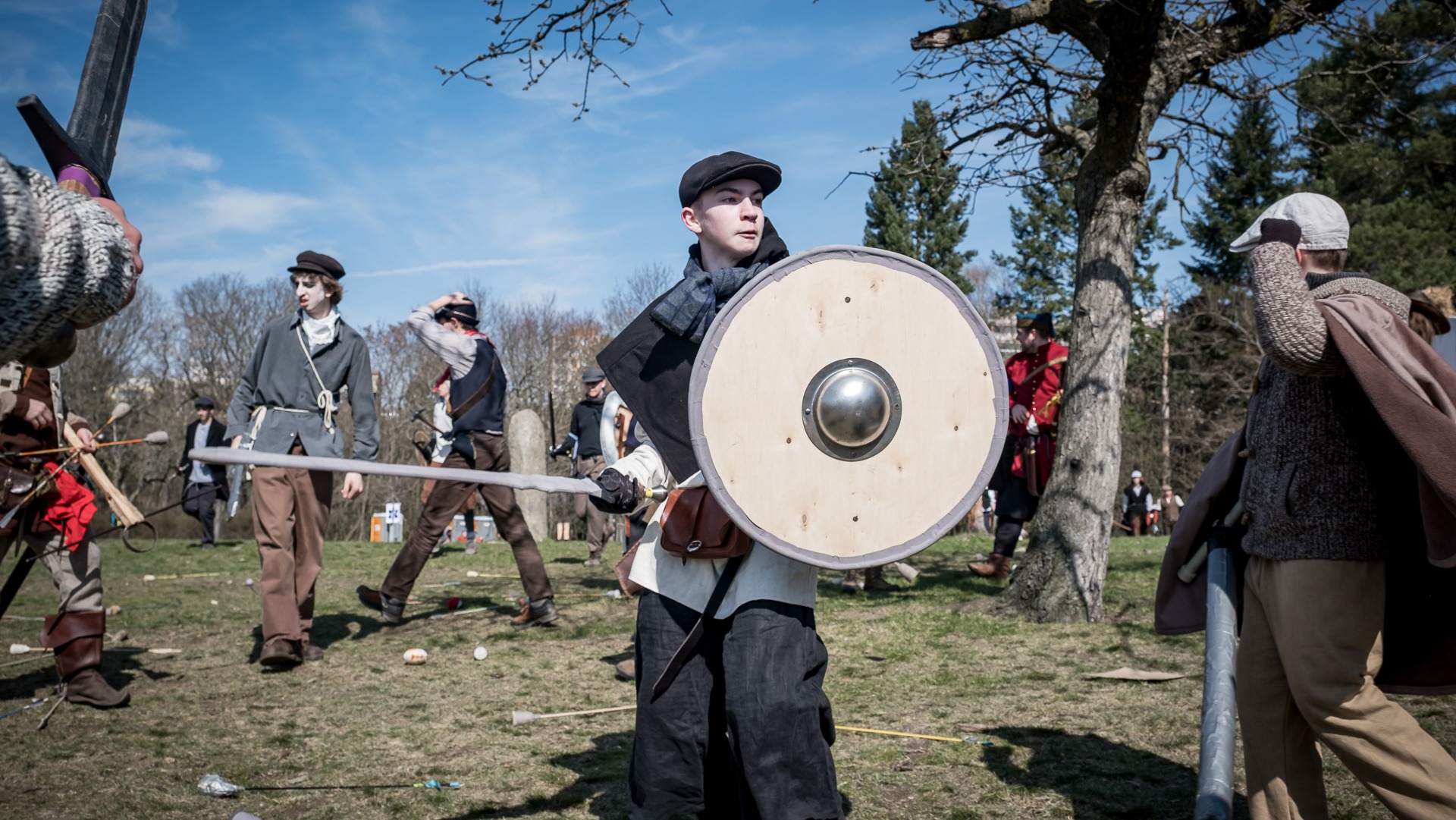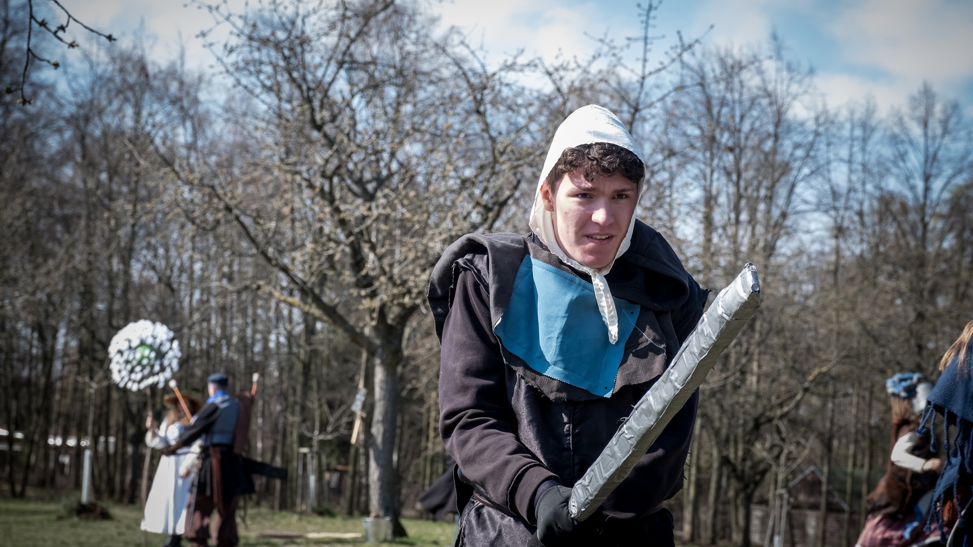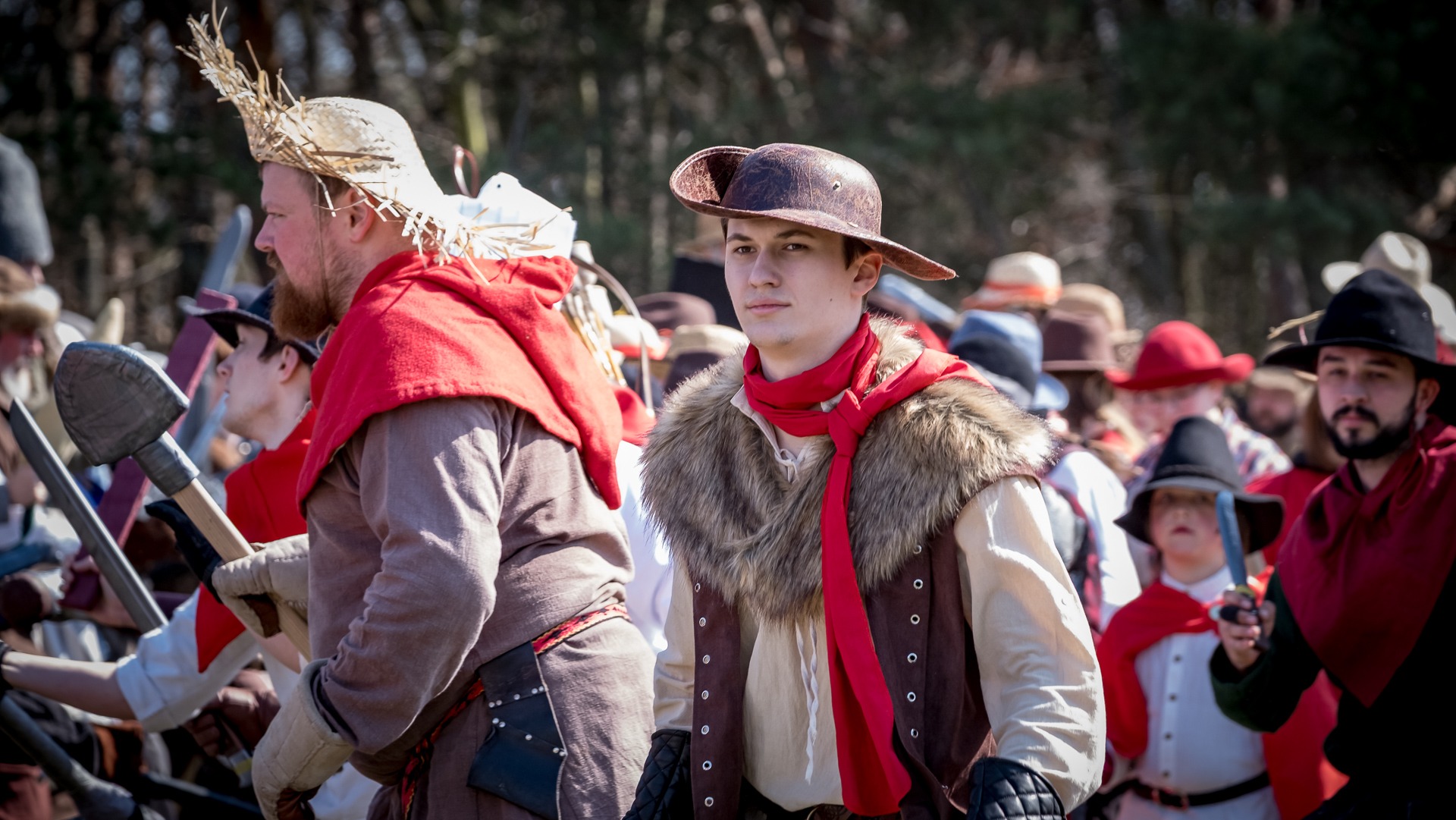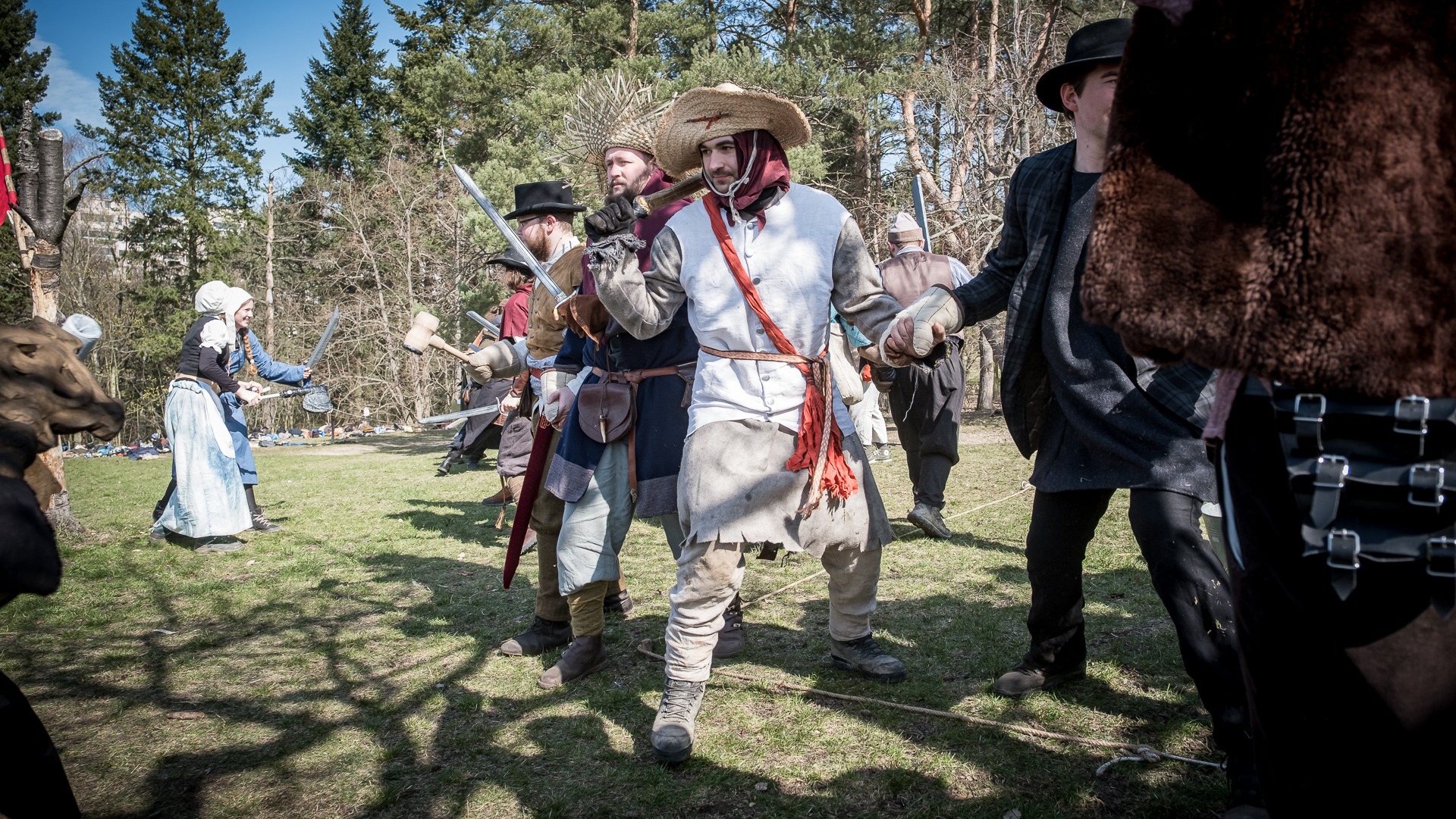 Albis je lesnatou a hornatou zemí daleko stranou zájmu velkých králů a jejich království. Je to divoký kraj a jeho obyvatelé jsou rázní a vzpurní. Blízko Temného lesa se rozkládá od pradávna Ves. Je to pár domů na kopci a několik domů pod kopcem. Na první pohled by se zdála zcela obyčejná – lidé tu obdělávají pole, pasou dobytek a večer posedávají v hospodě. Bystrý pocestný by si však hned všiml, že je tu cosi zvláštního: všichni vesničané bez výjimky nosí pokrývky hlavy.