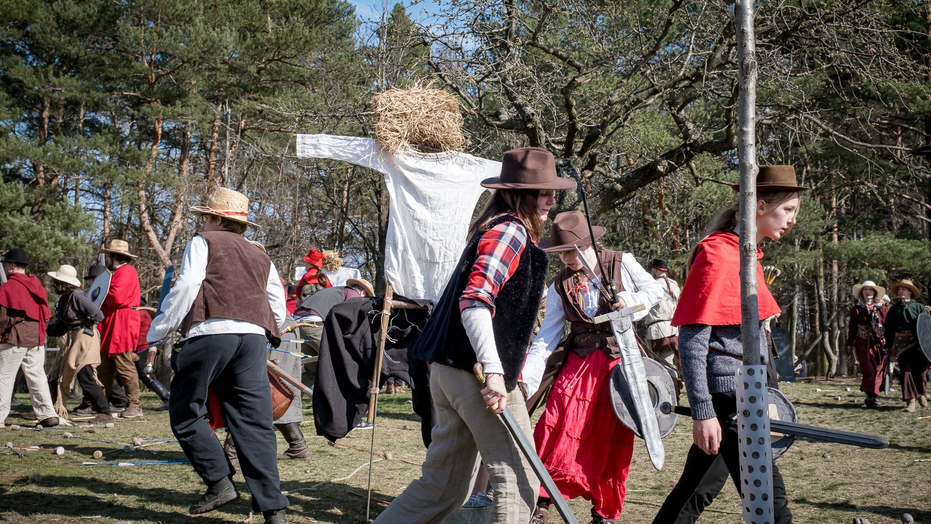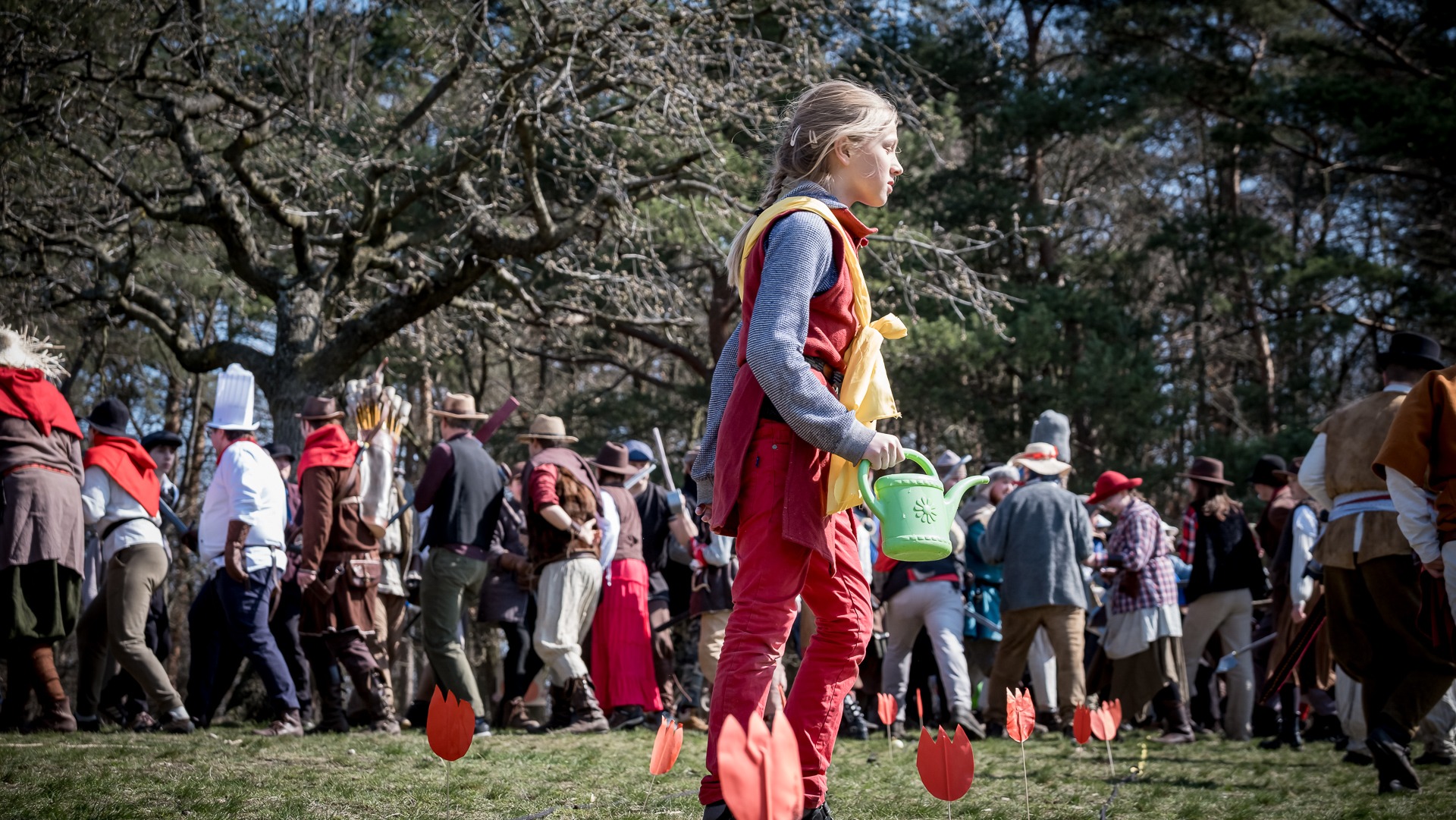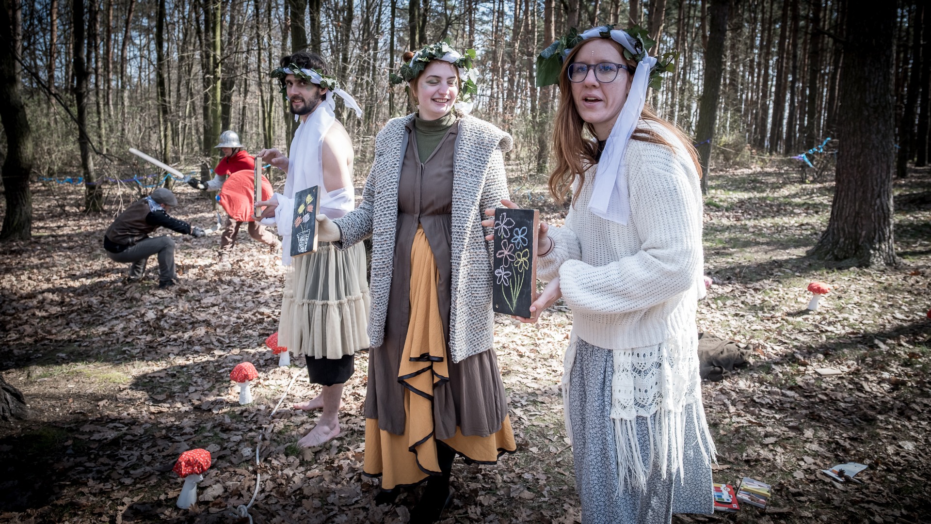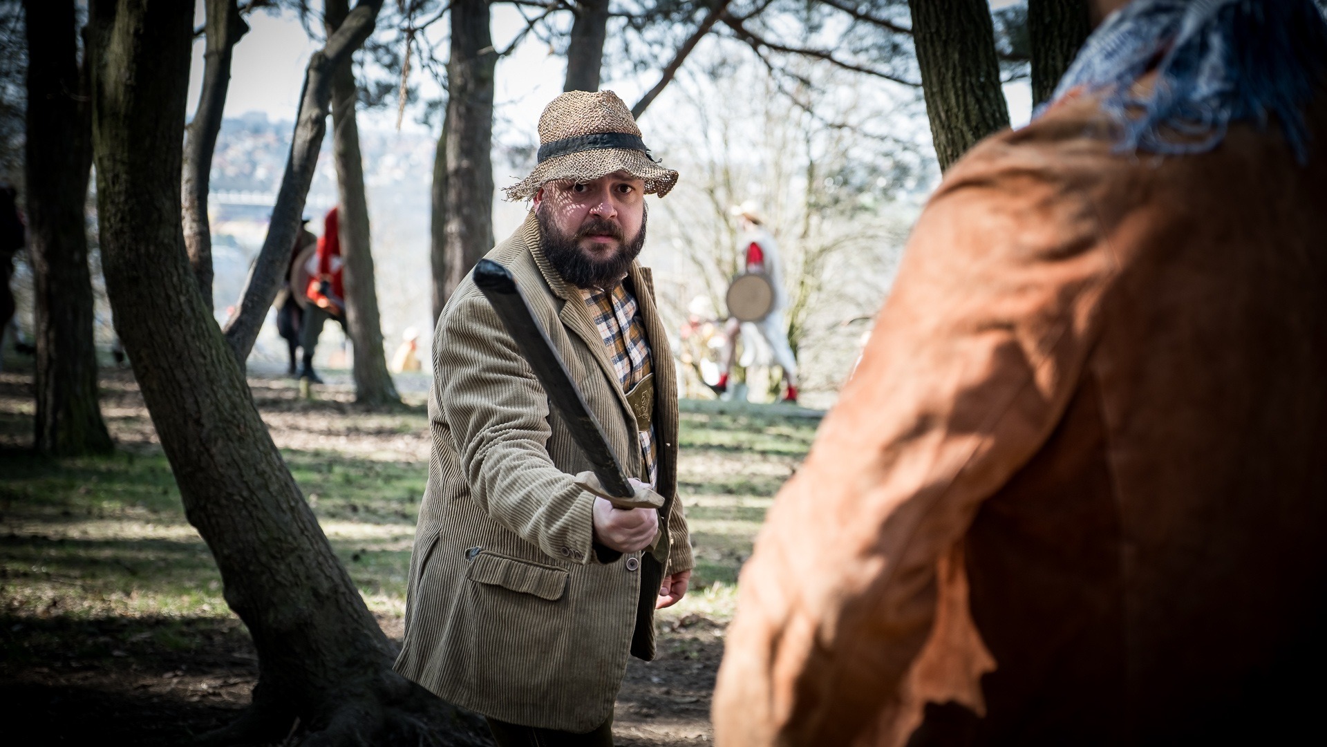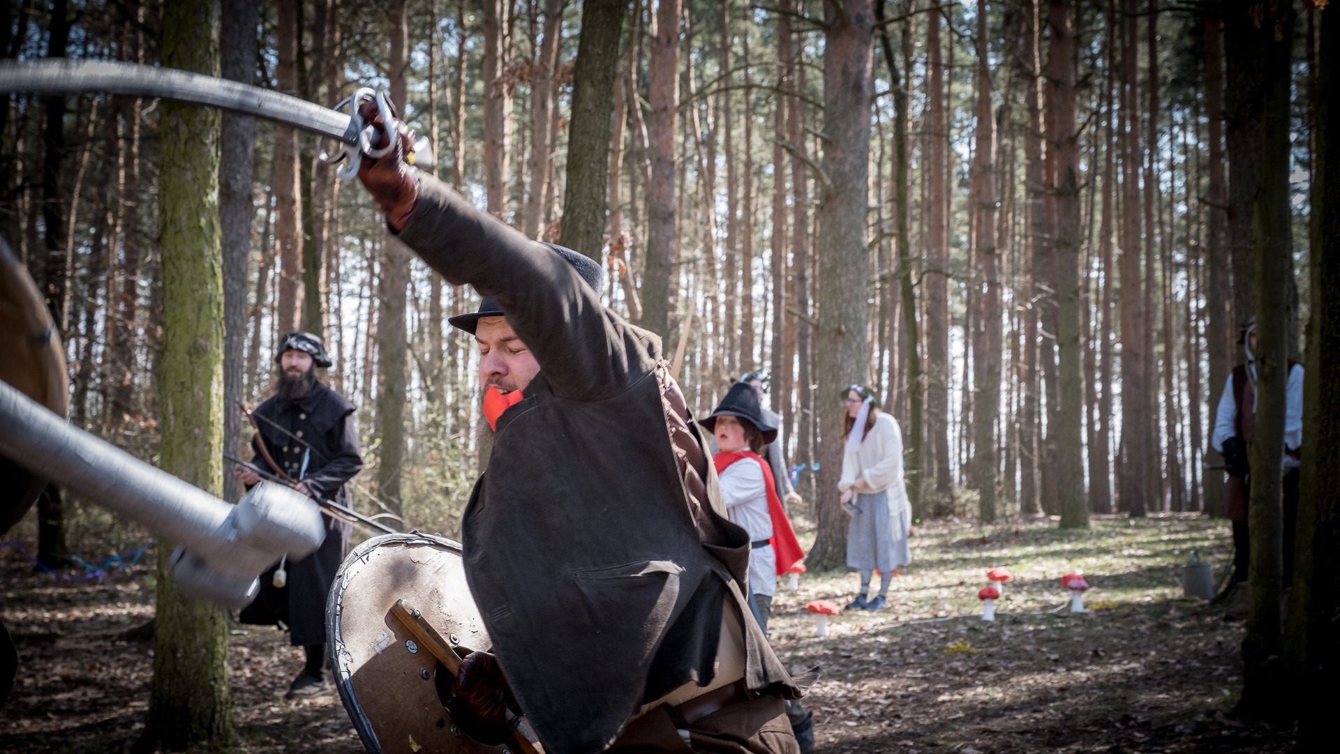 Albis je lesnatou a hornatou zemí daleko stranou zájmu velkých králů a jejich království. Je to divoký kraj a jeho obyvatelé jsou rázní a vzpurní. Blízko Temného lesa se rozkládá od pradávna Ves. Je to pár domů na kopci a několik domů pod kopcem. Na první pohled by se zdála zcela obyčejná – lidé tu obdělávají pole, pasou dobytek a večer posedávají v hospodě. Bystrý pocestný by si však hned všiml, že je tu cosi zvláštního: všichni vesničané bez výjimky nosí pokrývky hlavy.