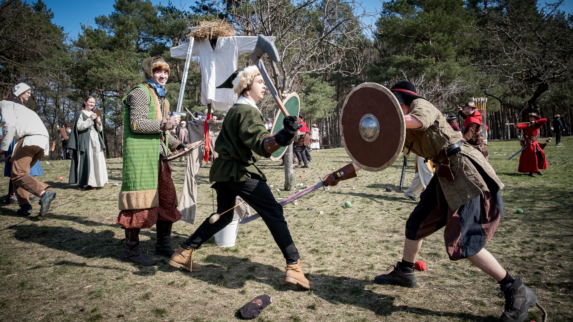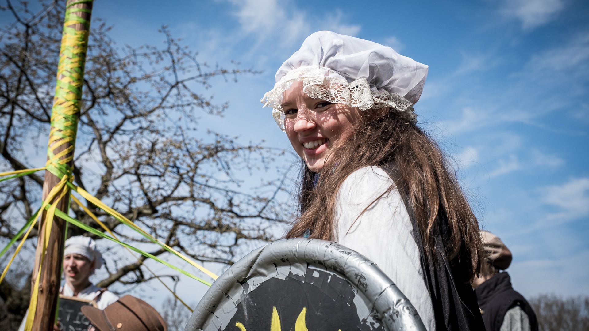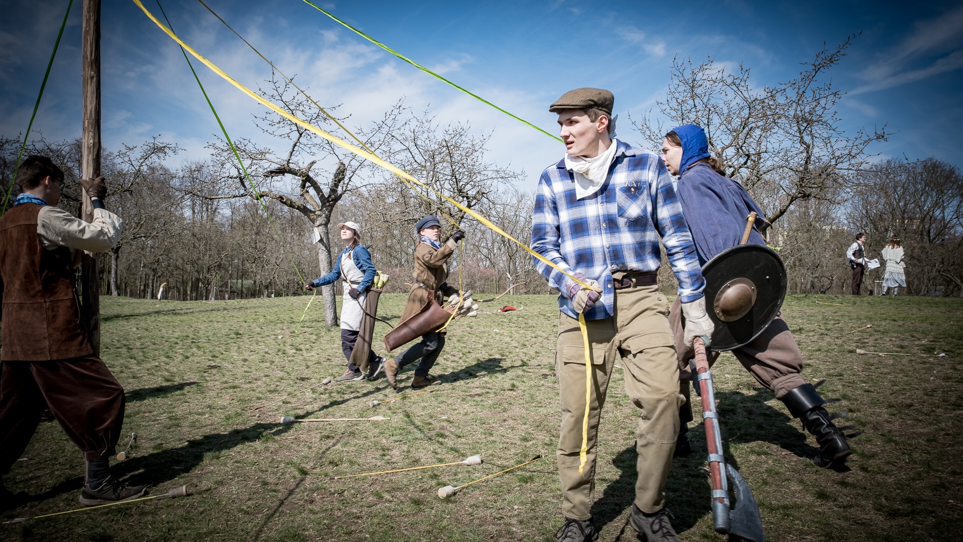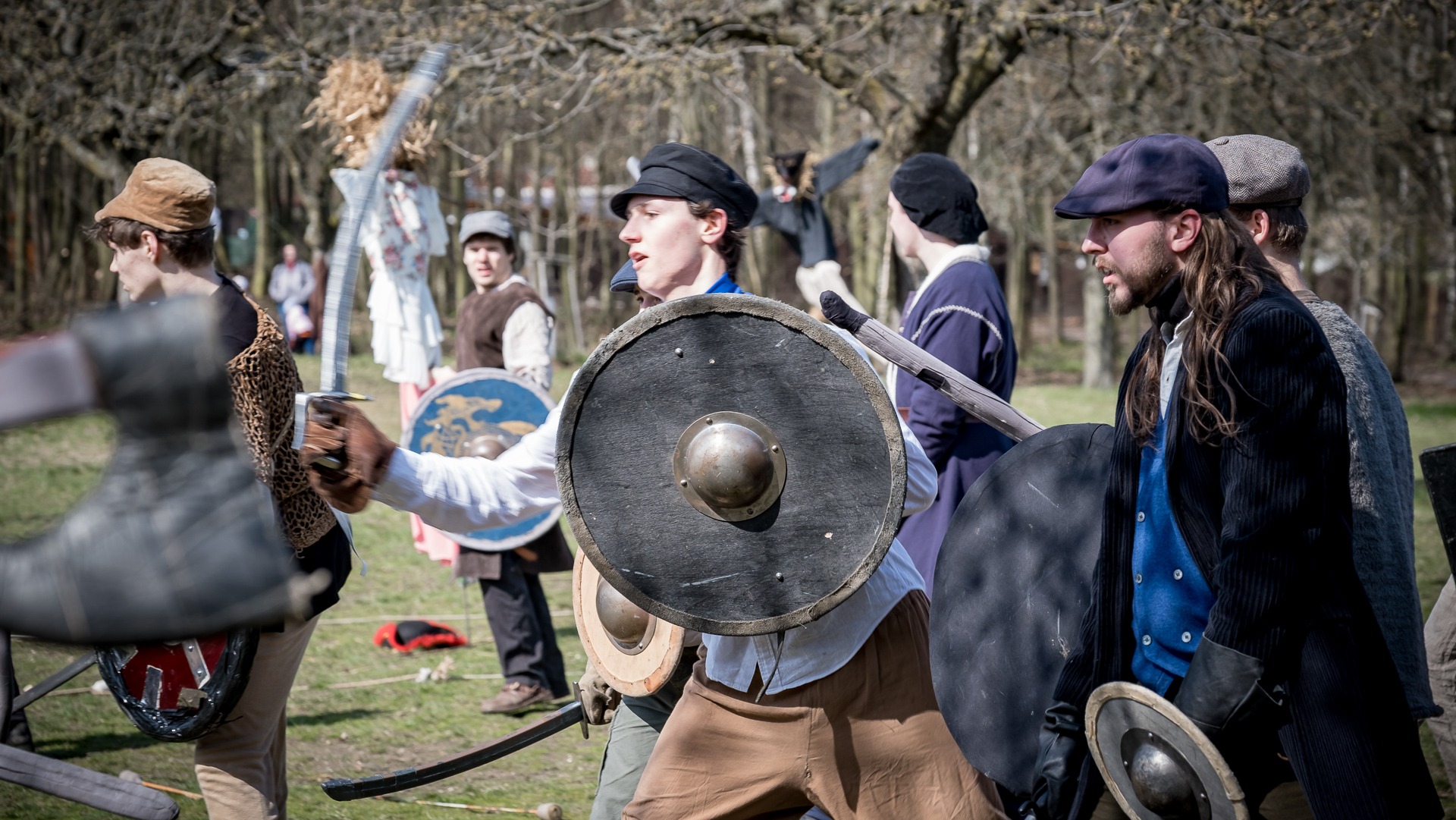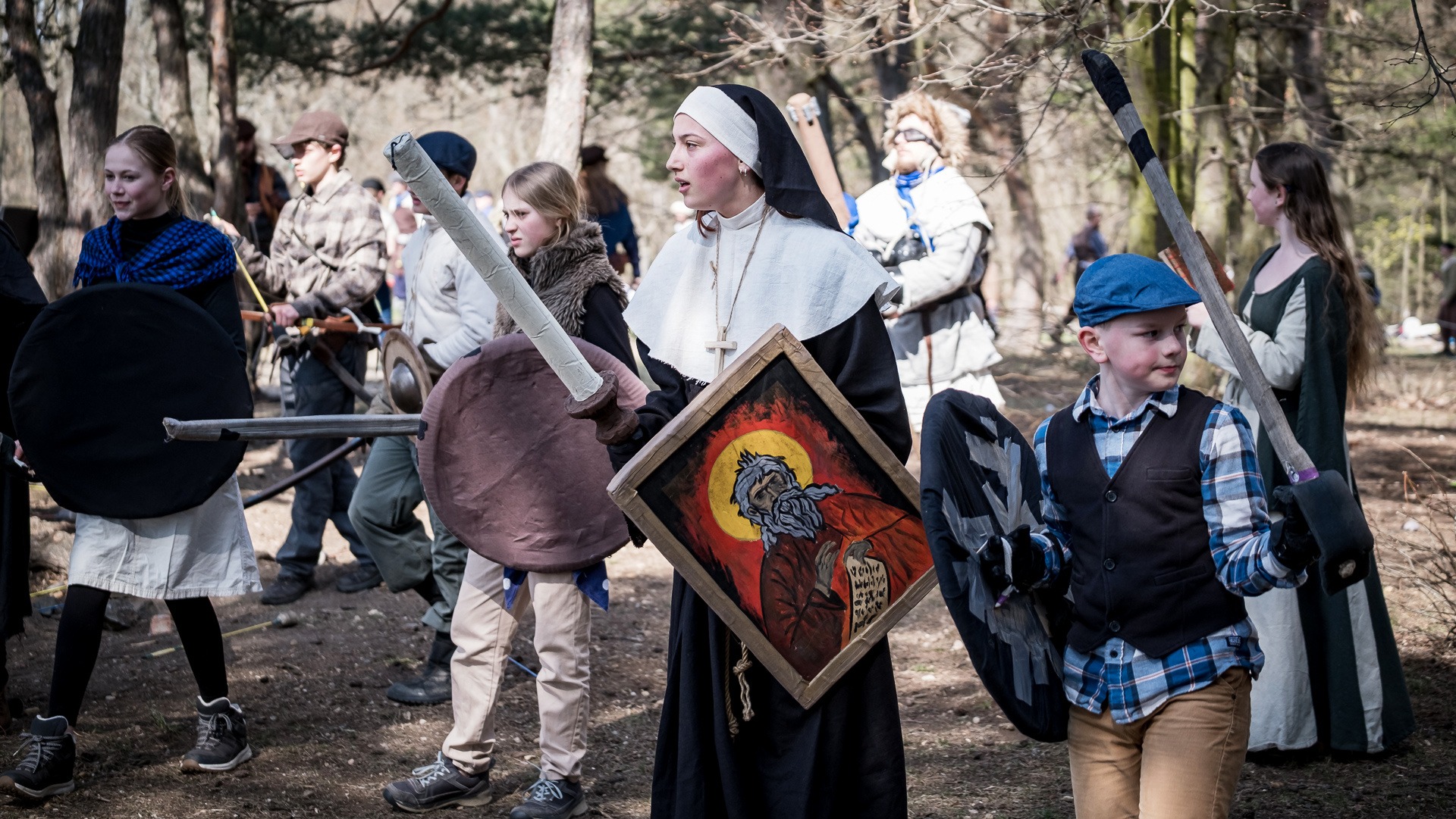 Albis je lesnatou a hornatou zemí daleko stranou zájmu velkých králů a jejich království. Je to divoký kraj a jeho obyvatelé jsou rázní a vzpurní. Blízko Temného lesa se rozkládá od pradávna Ves. Je to pár domů na kopci a několik domů pod kopcem. Na první pohled by se zdála zcela obyčejná – lidé tu obdělávají pole, pasou dobytek a večer posedávají v hospodě. Bystrý pocestný by si však hned všiml, že je tu cosi zvláštního: všichni vesničané bez výjimky nosí pokrývky hlavy.