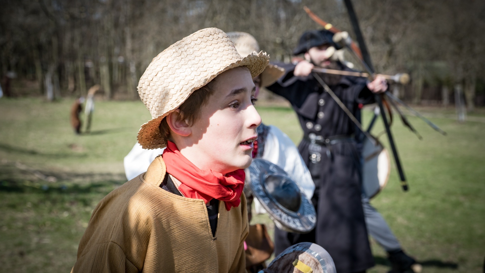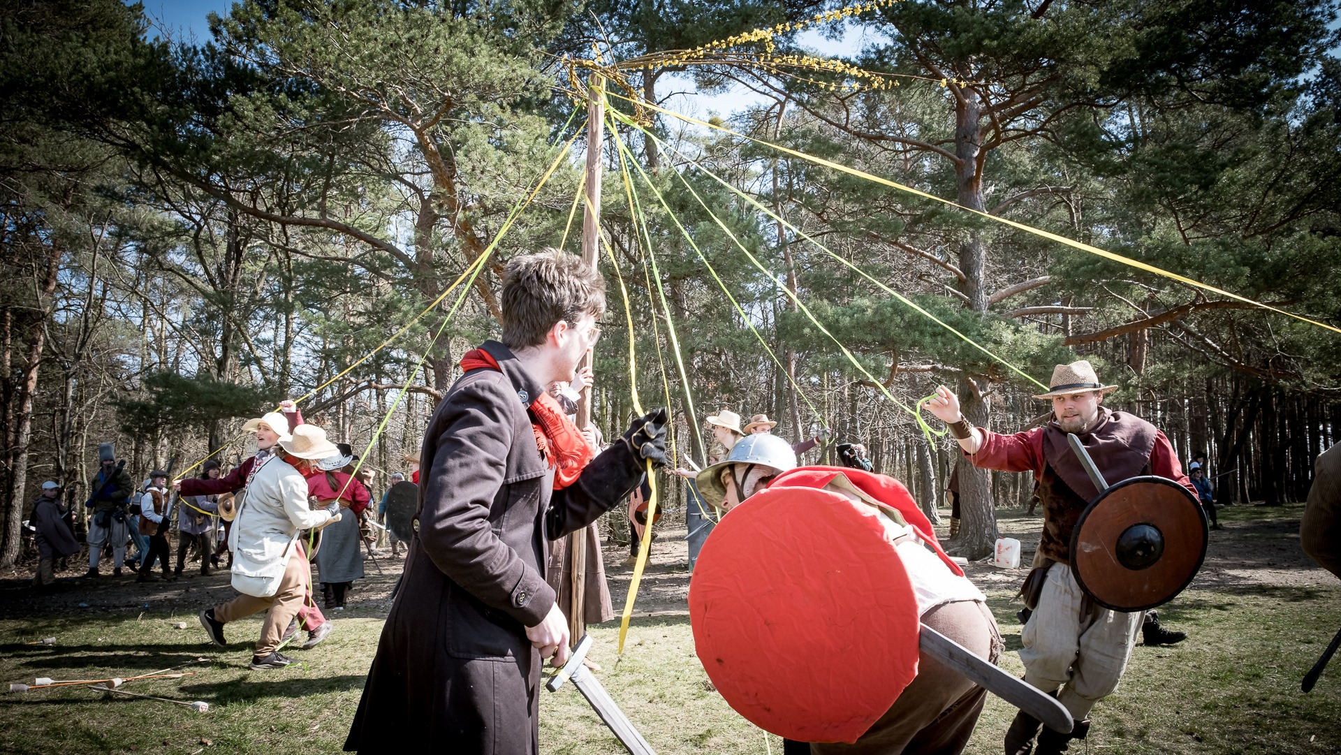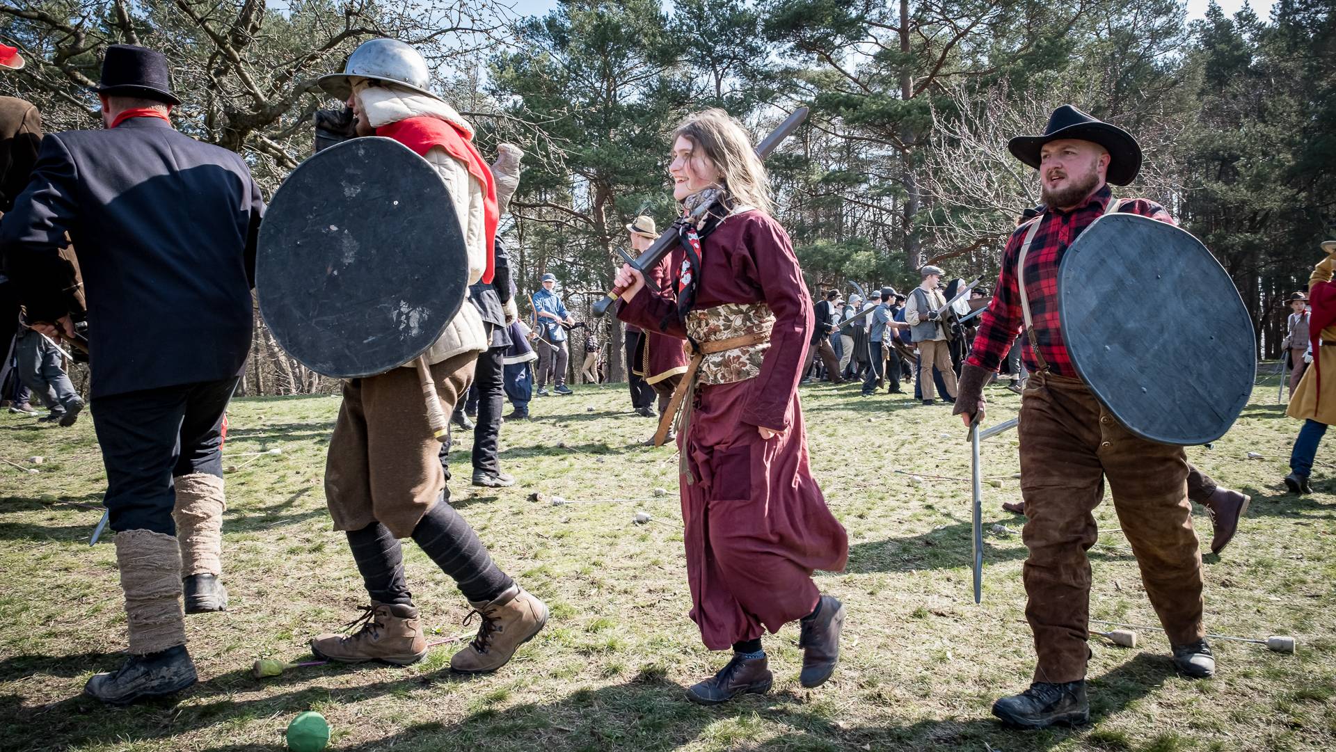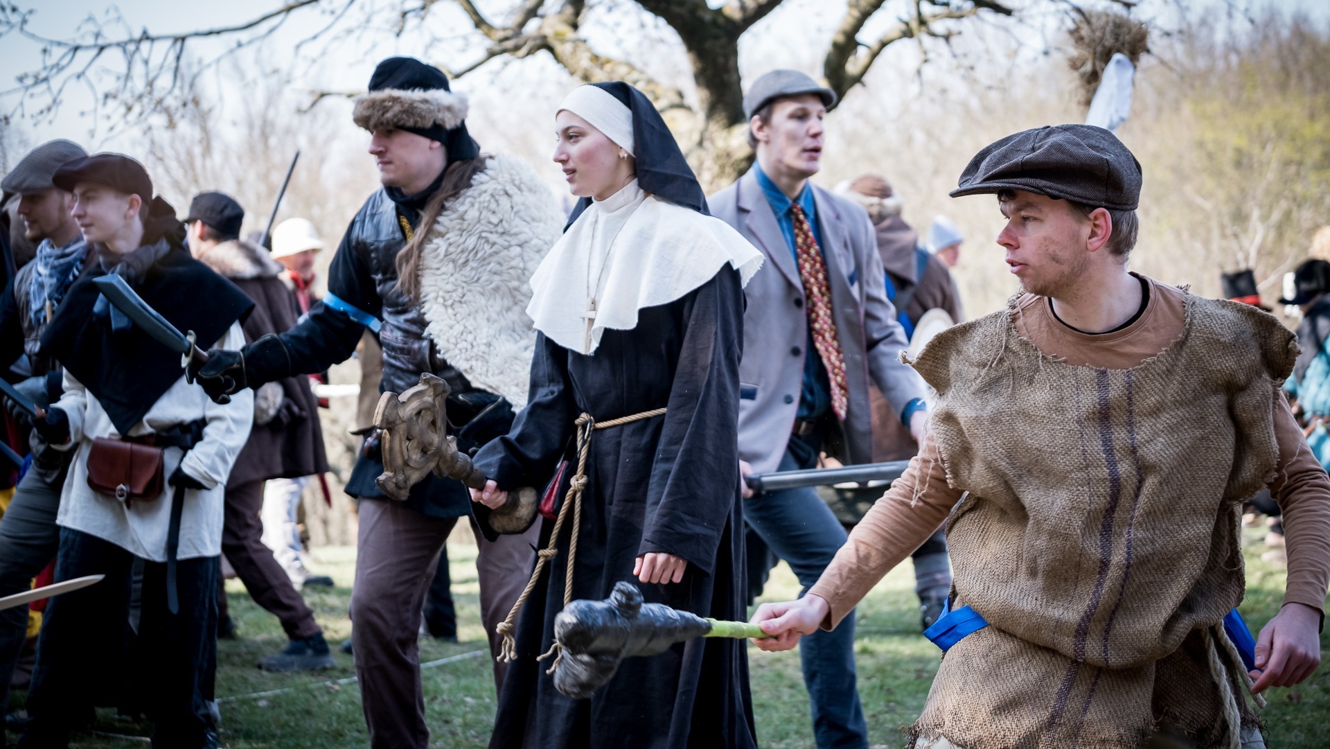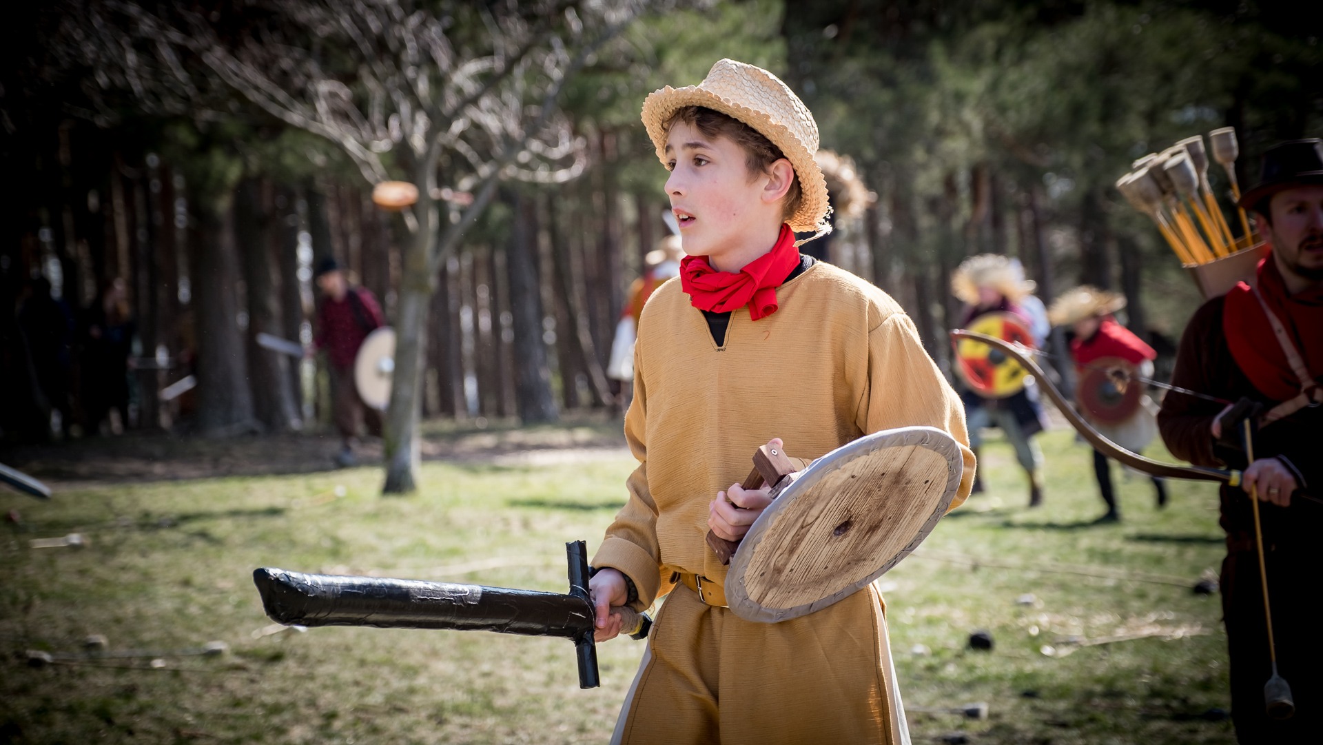 Albis je lesnatou a hornatou zemí daleko stranou zájmu velkých králů a jejich království. Je to divoký kraj a jeho obyvatelé jsou rázní a vzpurní. Blízko Temného lesa se rozkládá od pradávna Ves. Je to pár domů na kopci a několik domů pod kopcem. Na první pohled by se zdála zcela obyčejná – lidé tu obdělávají pole, pasou dobytek a večer posedávají v hospodě. Bystrý pocestný by si však hned všiml, že je tu cosi zvláštního: všichni vesničané bez výjimky nosí pokrývky hlavy.