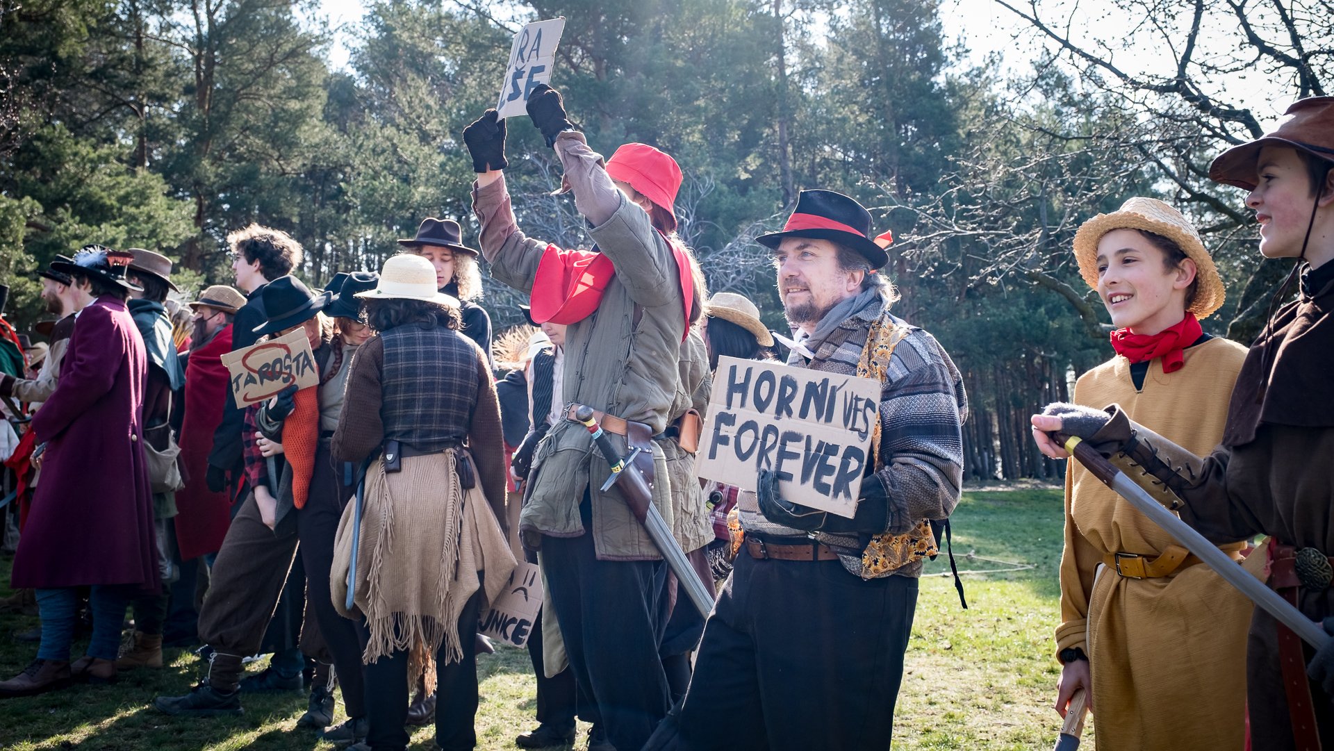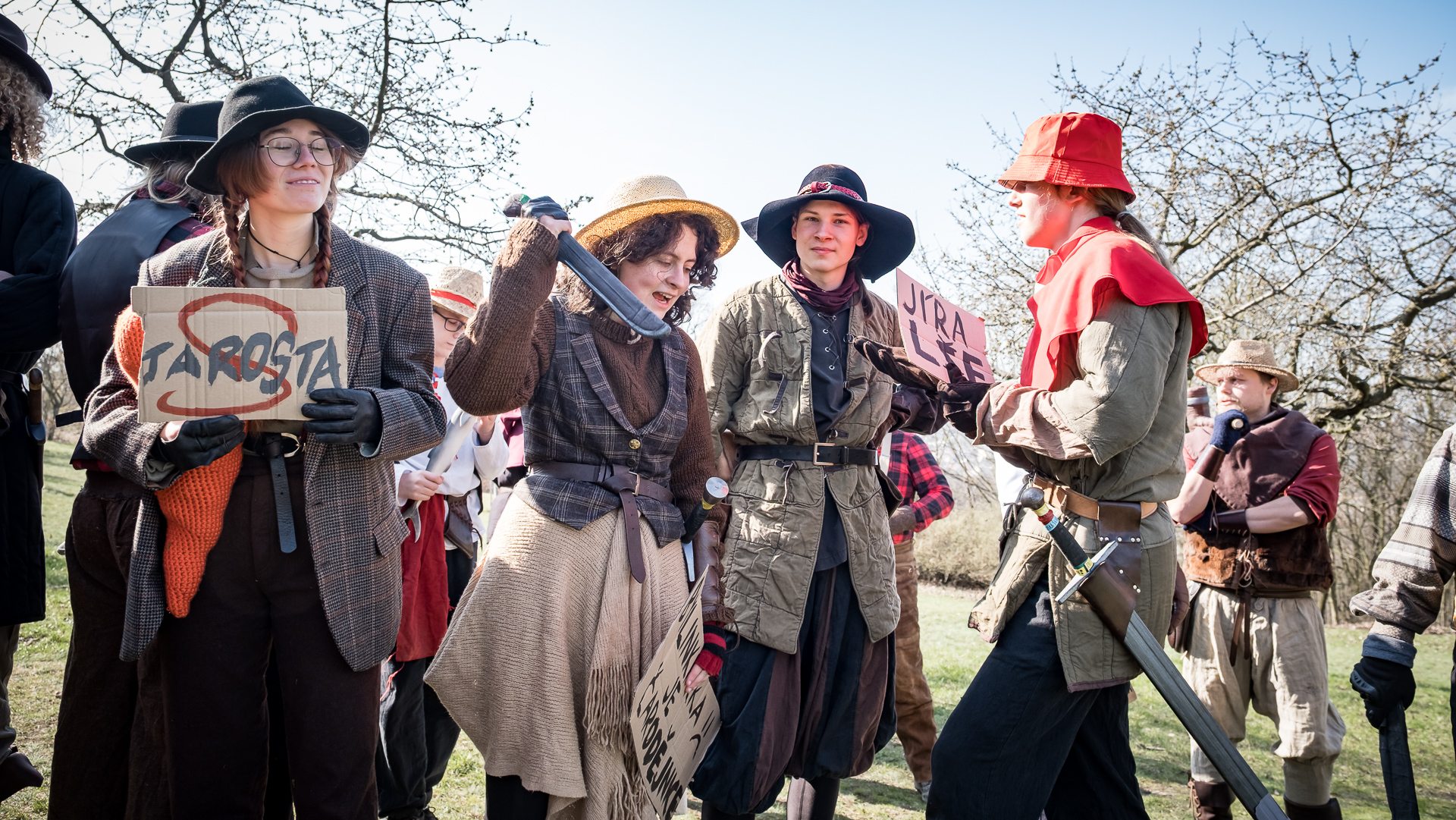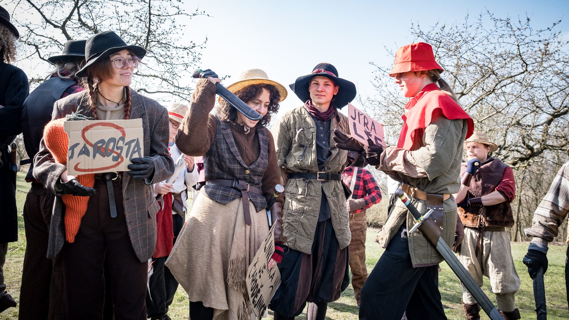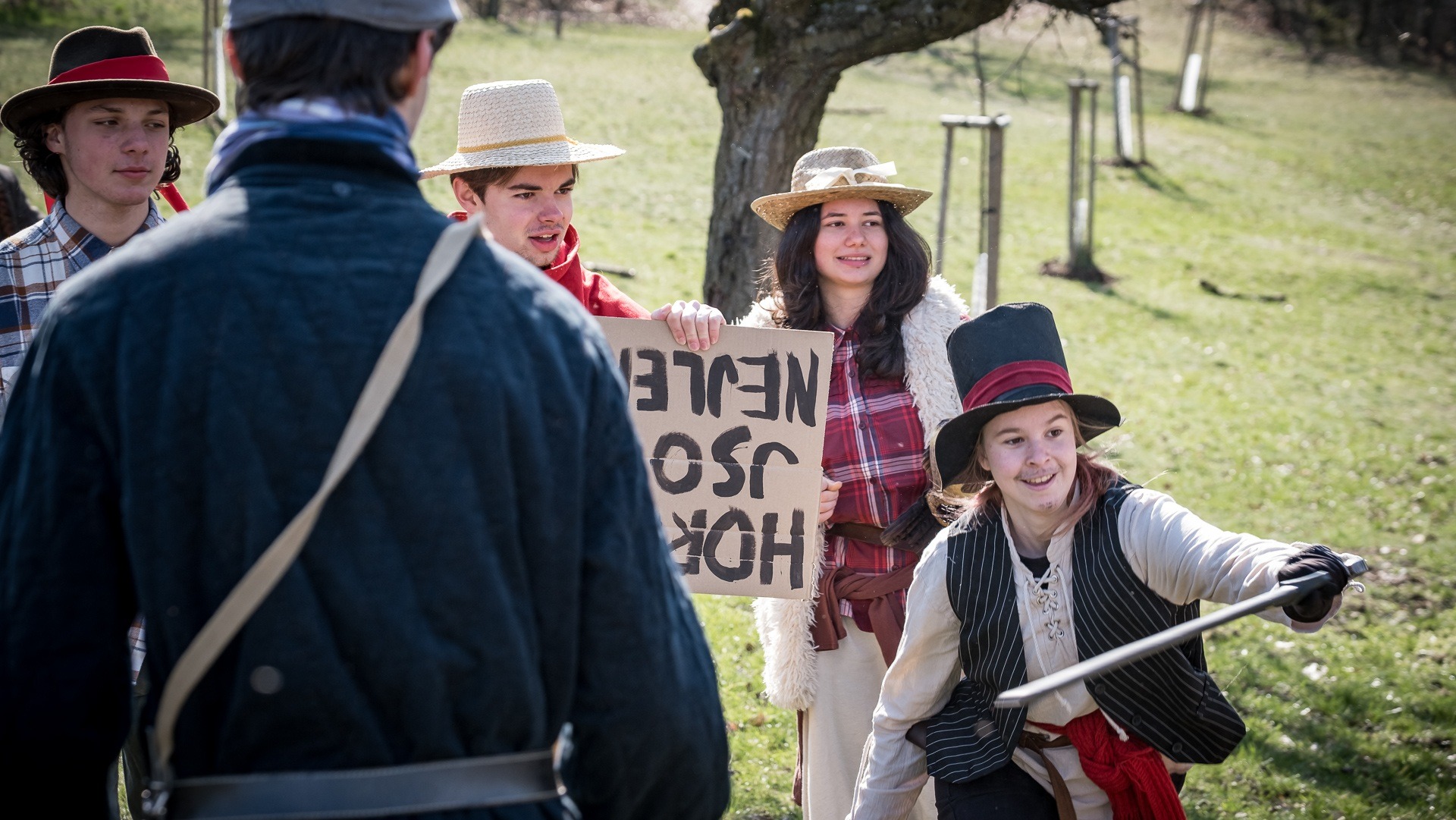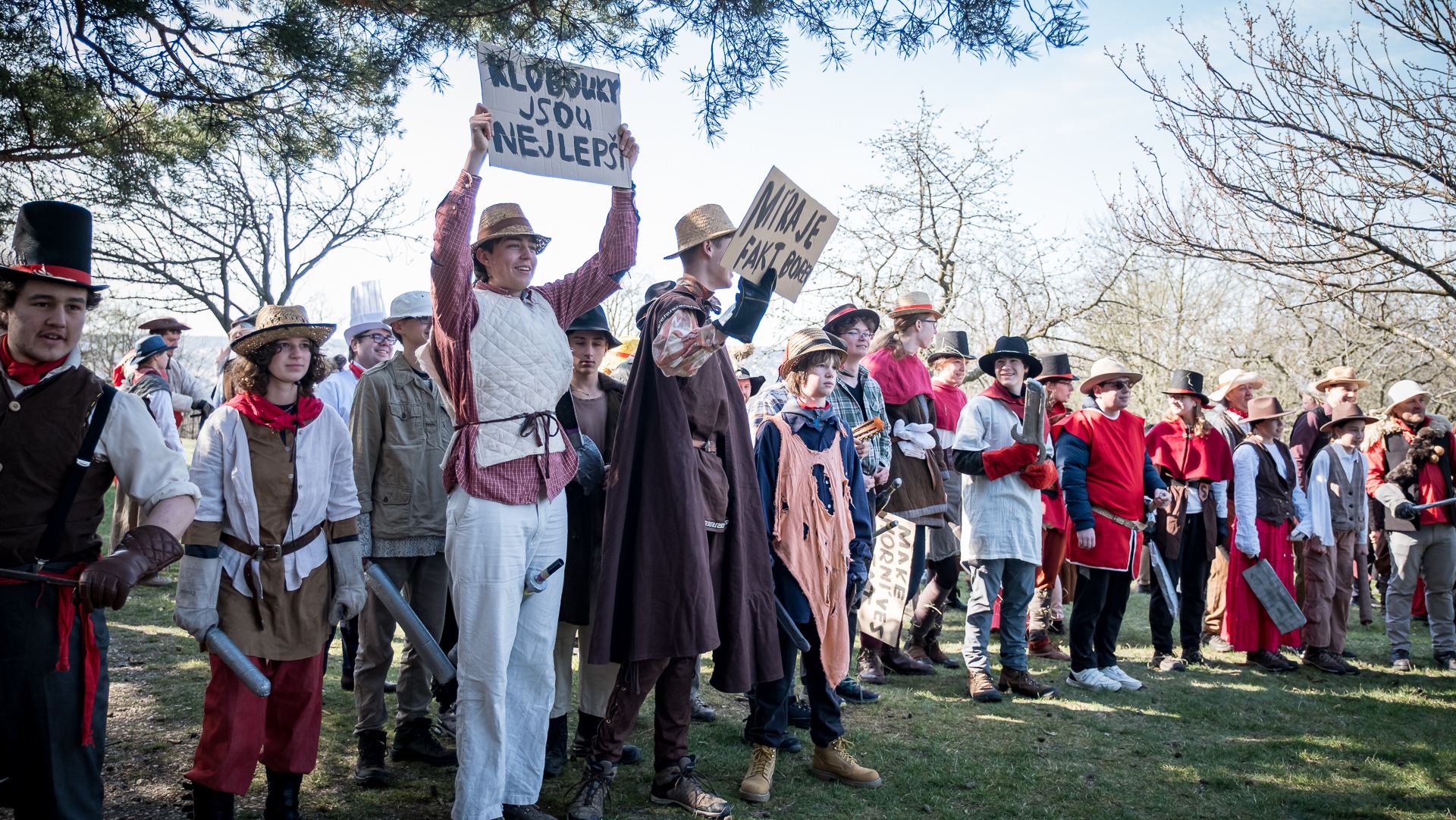 A nejen to – vesnice je rozdělená na dvě části. Ti, co žijí na kopci, nedají dopustit na své klobouky. Ti, co bydlí dole pod kopcem, zas chodí zásadně v čepicích. A jak už to tak bývá, jedna strana pohlíží na tu druhou svrchu, zatímco dole se šeptá o namyšlených “kloboučnících”. Dávný důvod téhle nevraživosti už všichni dávno zapomněli – ale spory a žabomyší války přetrvaly.