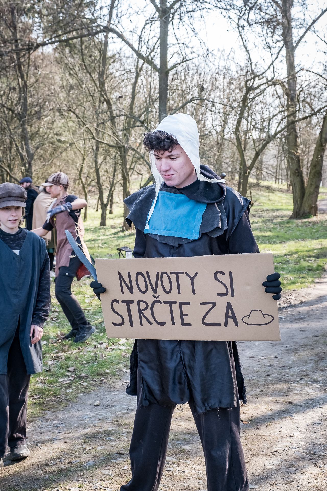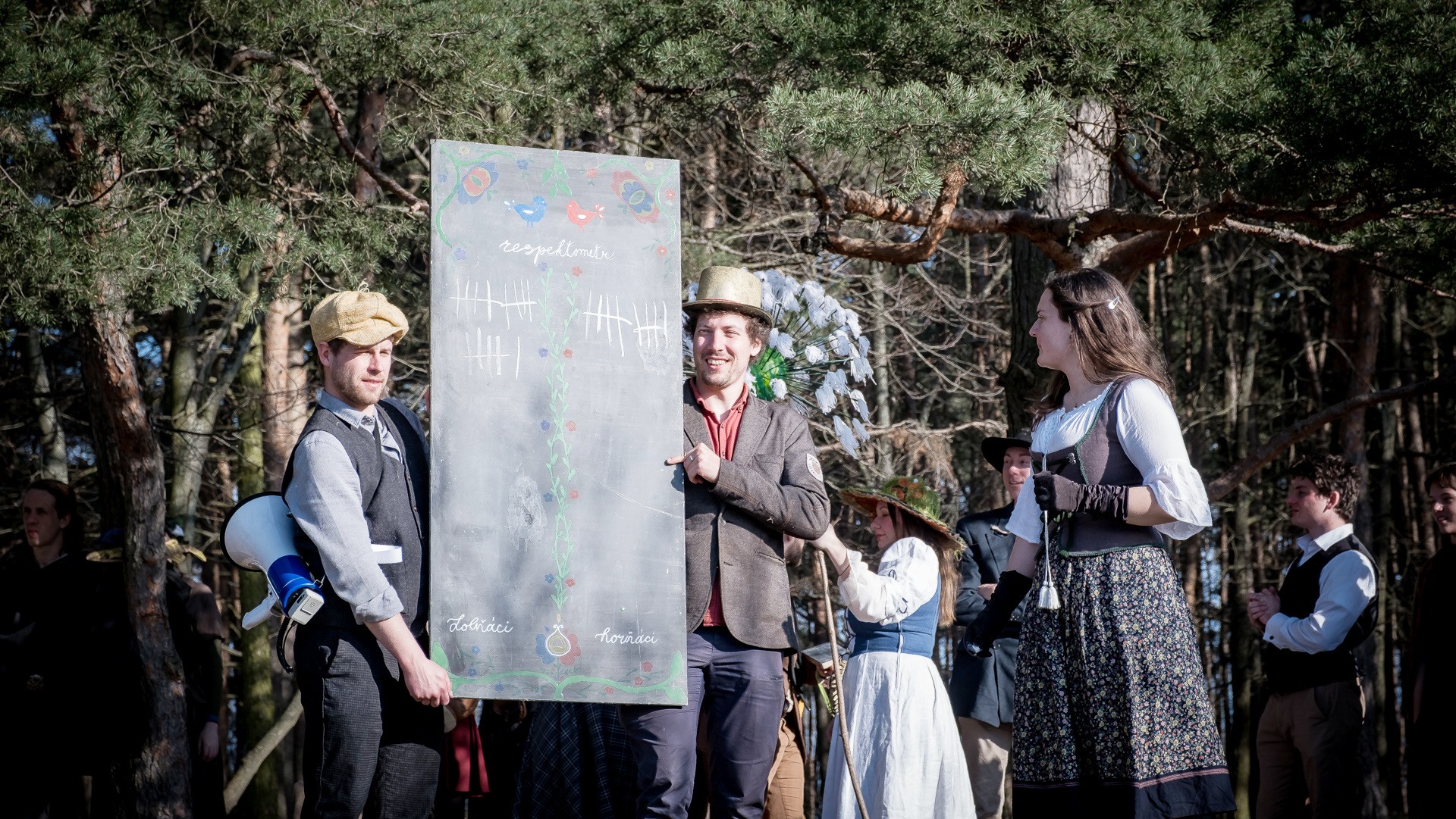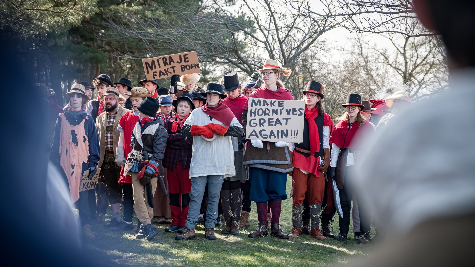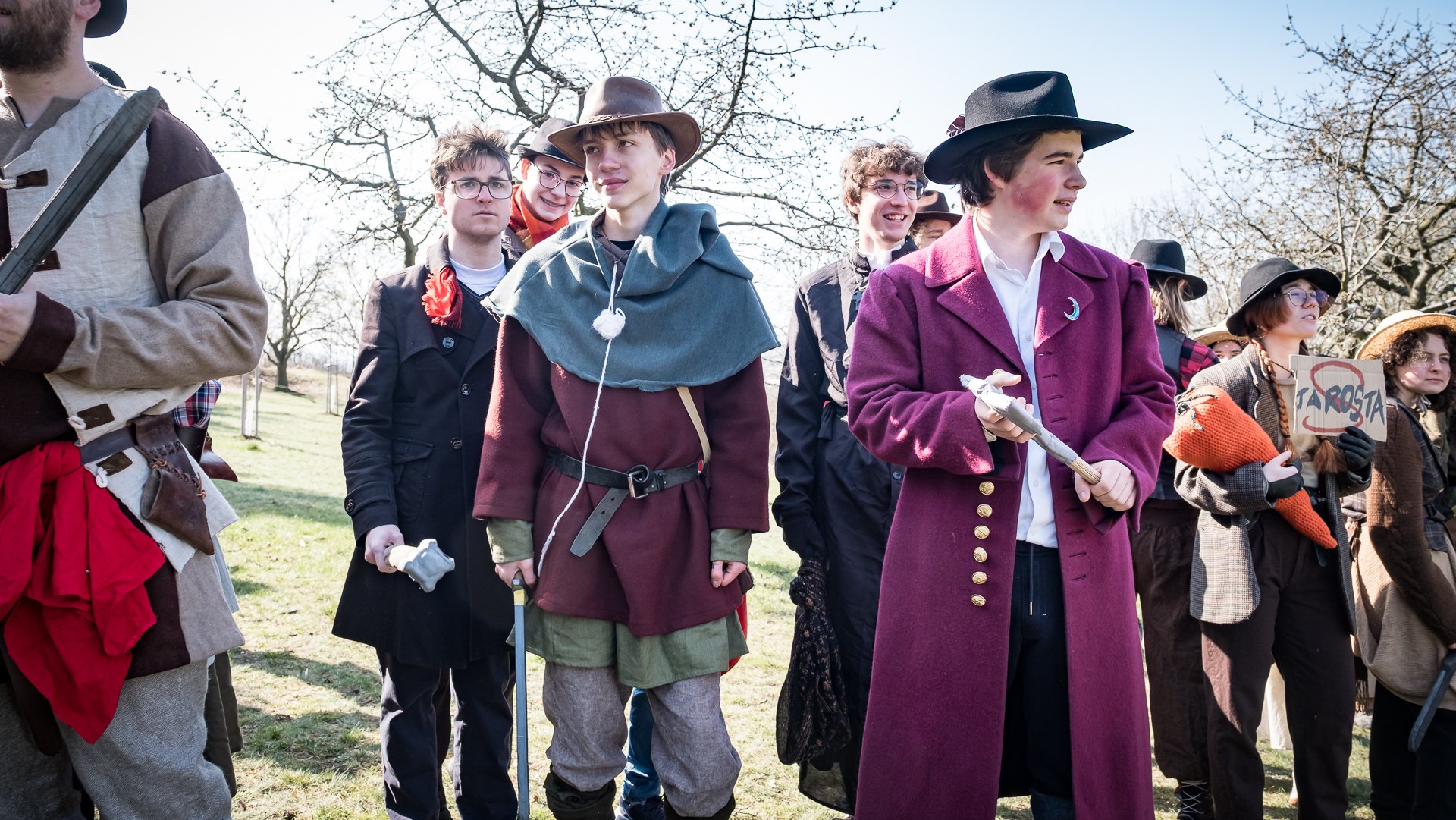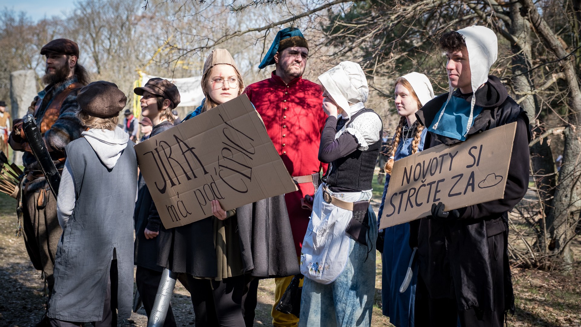 A nejen to – vesnice je rozdělená na dvě části. Ti, co žijí na kopci, nedají dopustit na své klobouky. Ti, co bydlí dole pod kopcem, zas chodí zásadně v čepicích. A jak už to tak bývá, jedna strana pohlíží na tu druhou svrchu, zatímco dole se šeptá o namyšlených “kloboučnících”. Dávný důvod téhle nevraživosti už všichni dávno zapomněli – ale spory a žabomyší války přetrvaly.