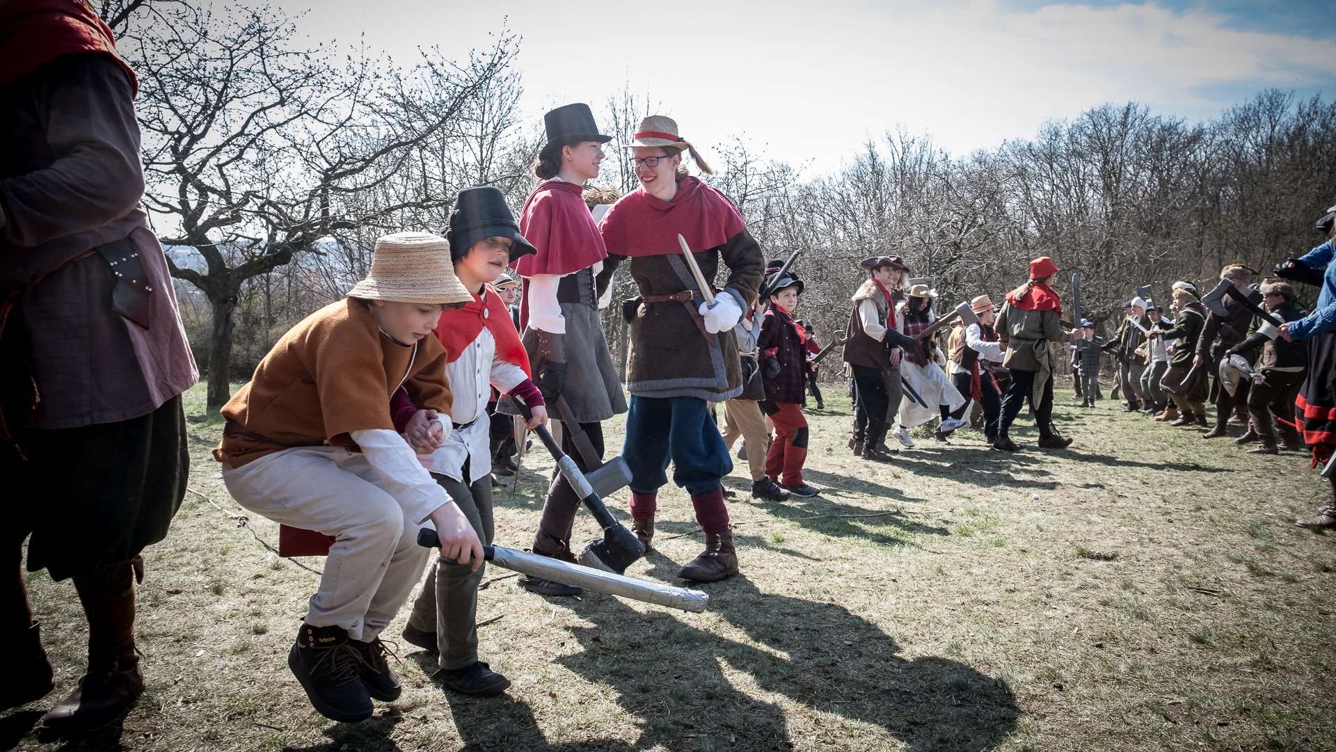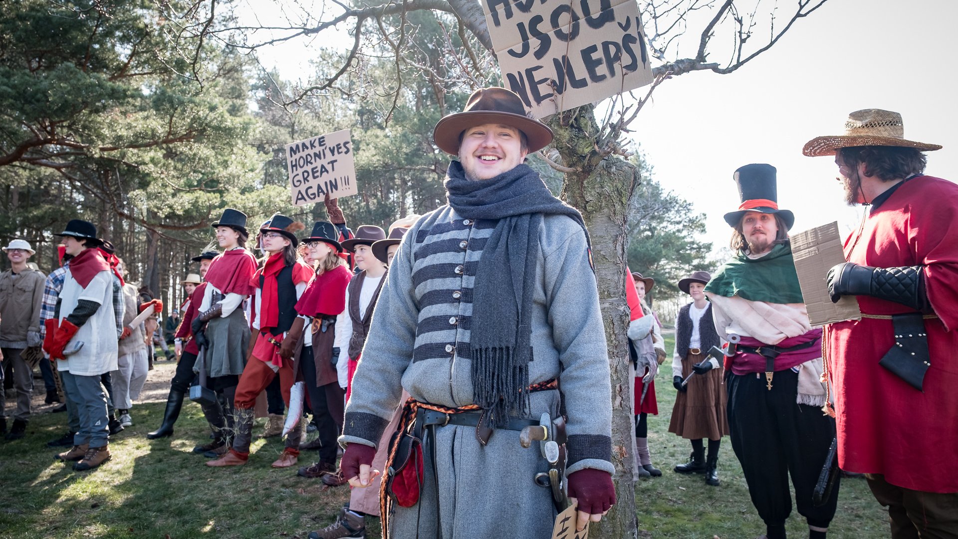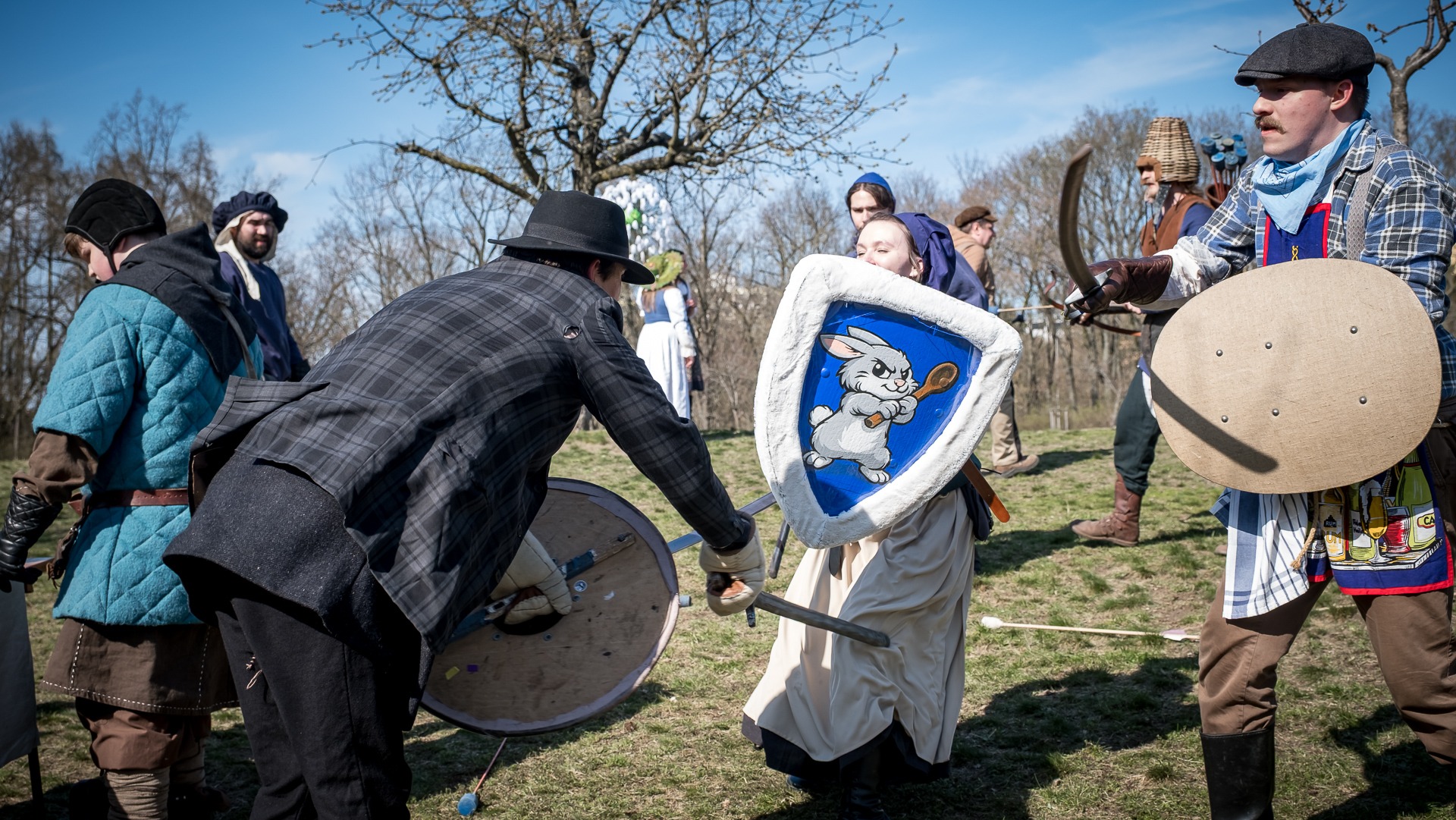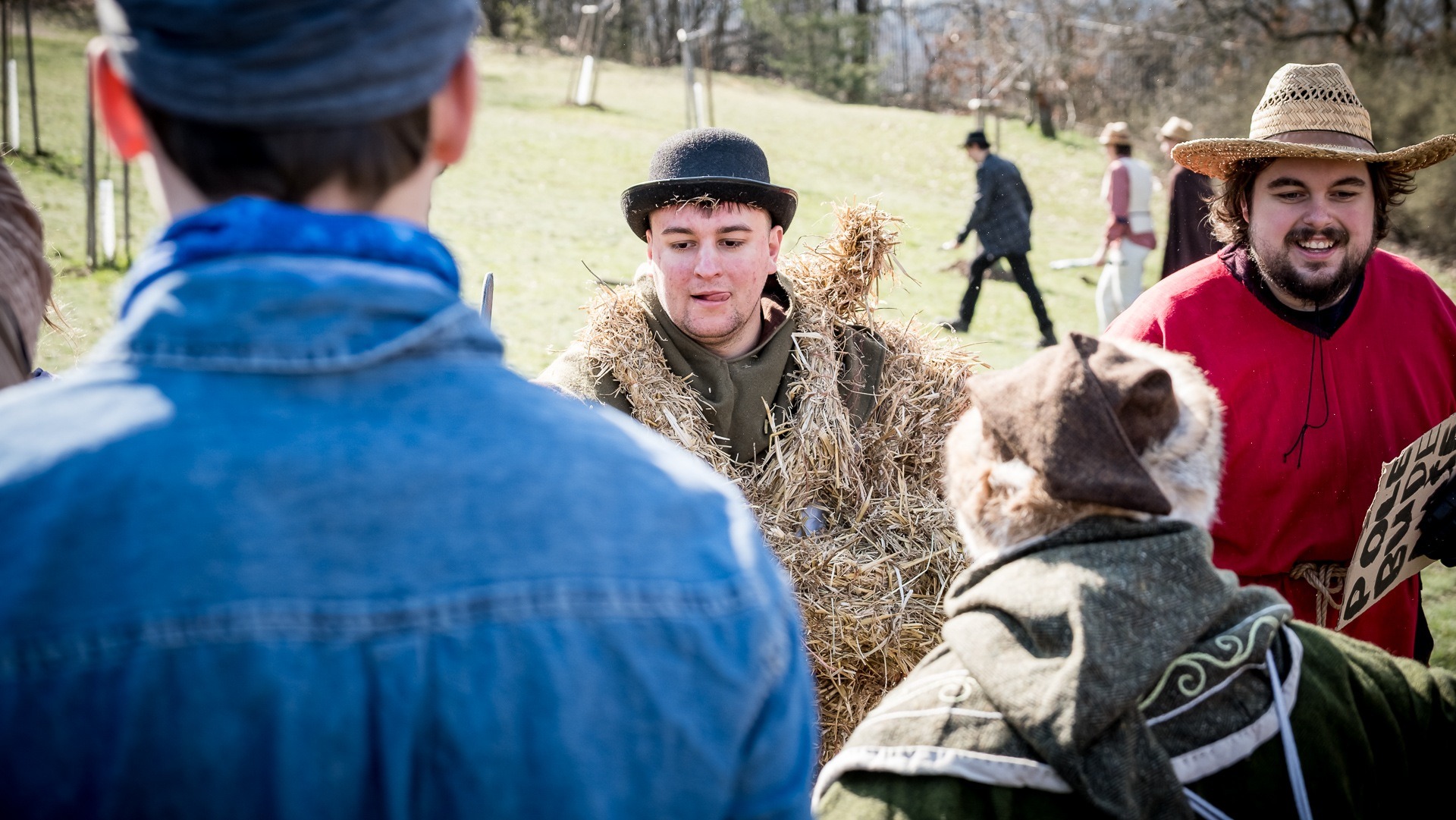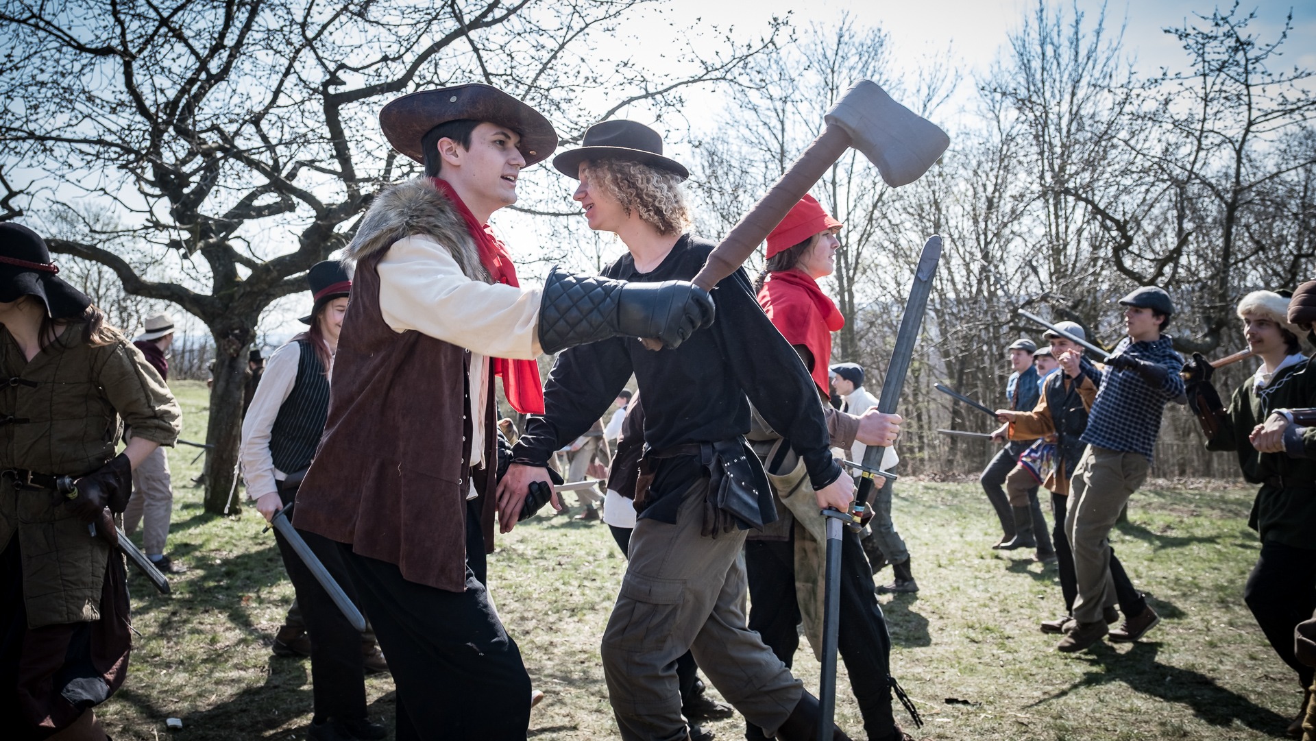 A nejen to – vesnice je rozdělená na dvě části. Ti, co žijí na kopci, nedají dopustit na své klobouky. Ti, co bydlí dole pod kopcem, zas chodí zásadně v čepicích. A jak už to tak bývá, jedna strana pohlíží na tu druhou svrchu, zatímco dole se šeptá o namyšlených “kloboučnících”. Dávný důvod téhle nevraživosti už všichni dávno zapomněli – ale spory a žabomyší války přetrvaly.