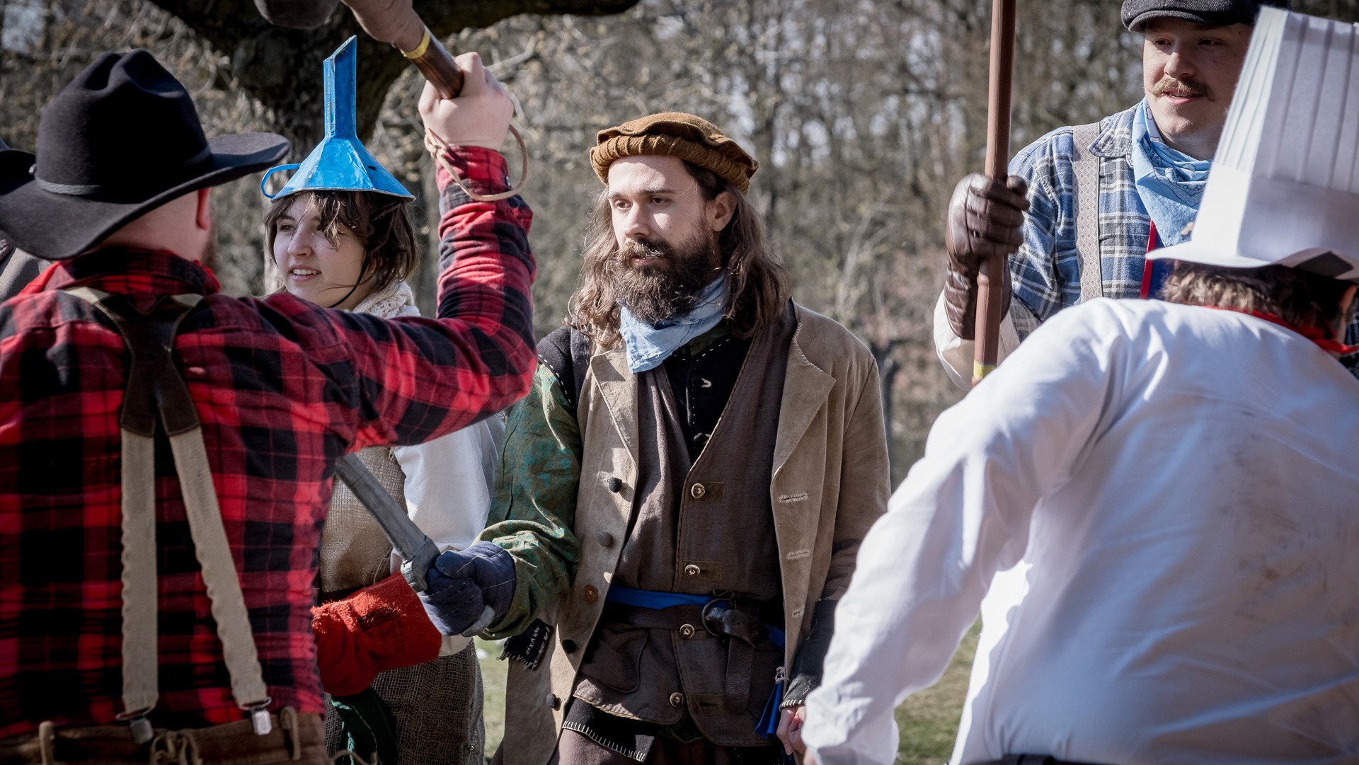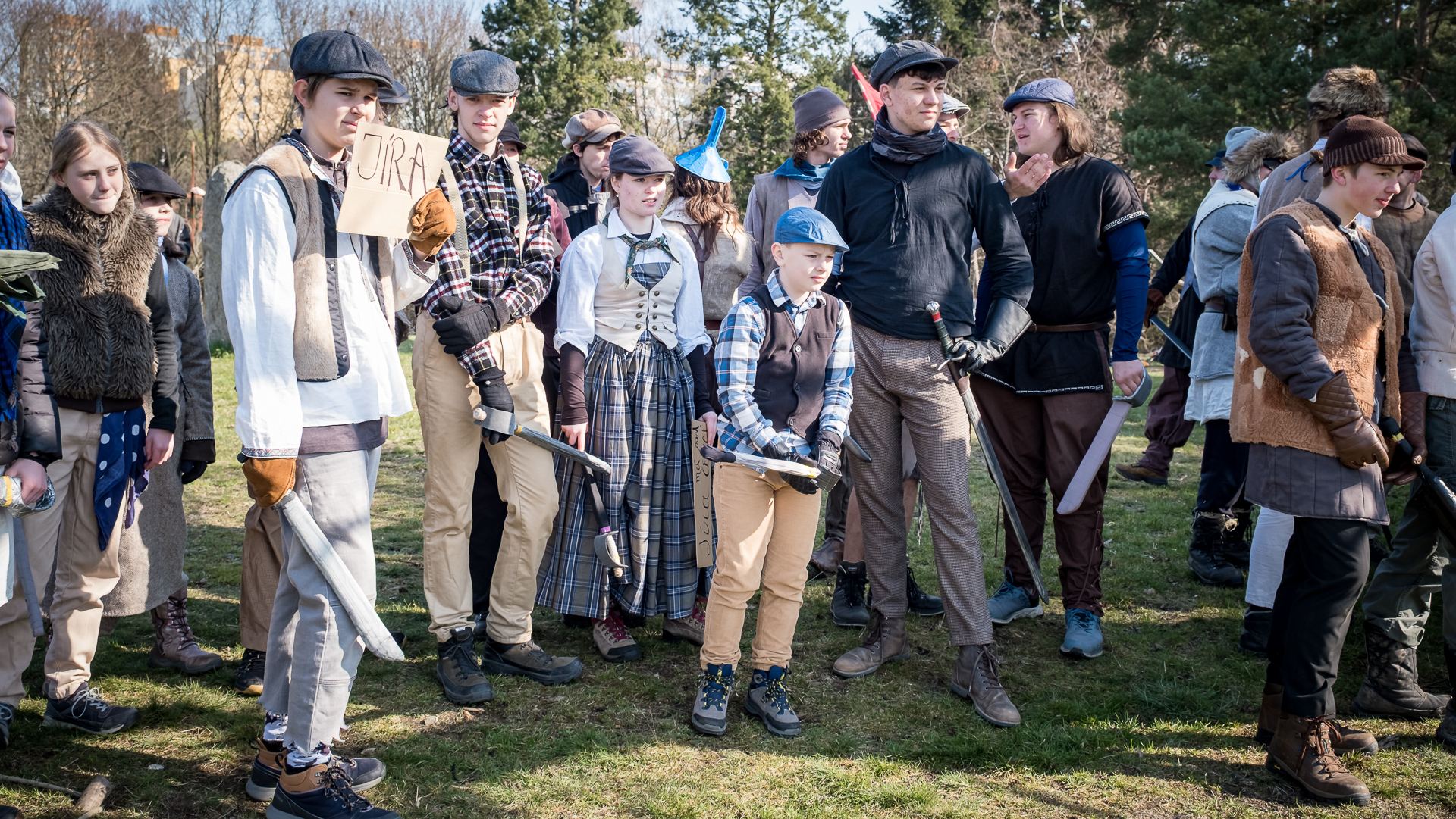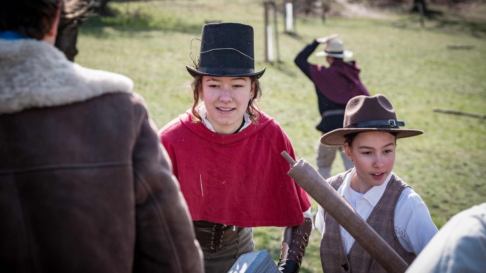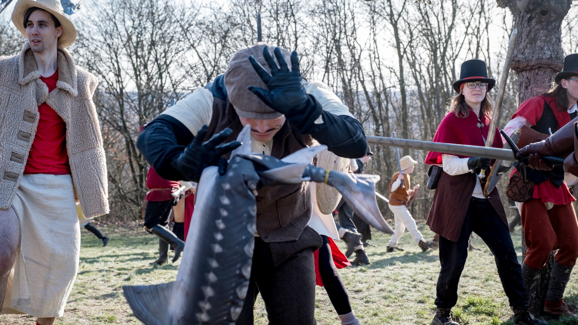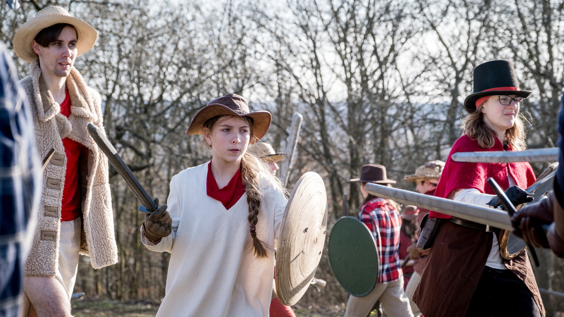 A nejen to – vesnice je rozdělená na dvě části. Ti, co žijí na kopci, nedají dopustit na své klobouky. Ti, co bydlí dole pod kopcem, zas chodí zásadně v čepicích. A jak už to tak bývá, jedna strana pohlíží na tu druhou svrchu, zatímco dole se šeptá o namyšlených “kloboučnících”. Dávný důvod téhle nevraživosti už všichni dávno zapomněli – ale spory a žabomyší války přetrvaly.
