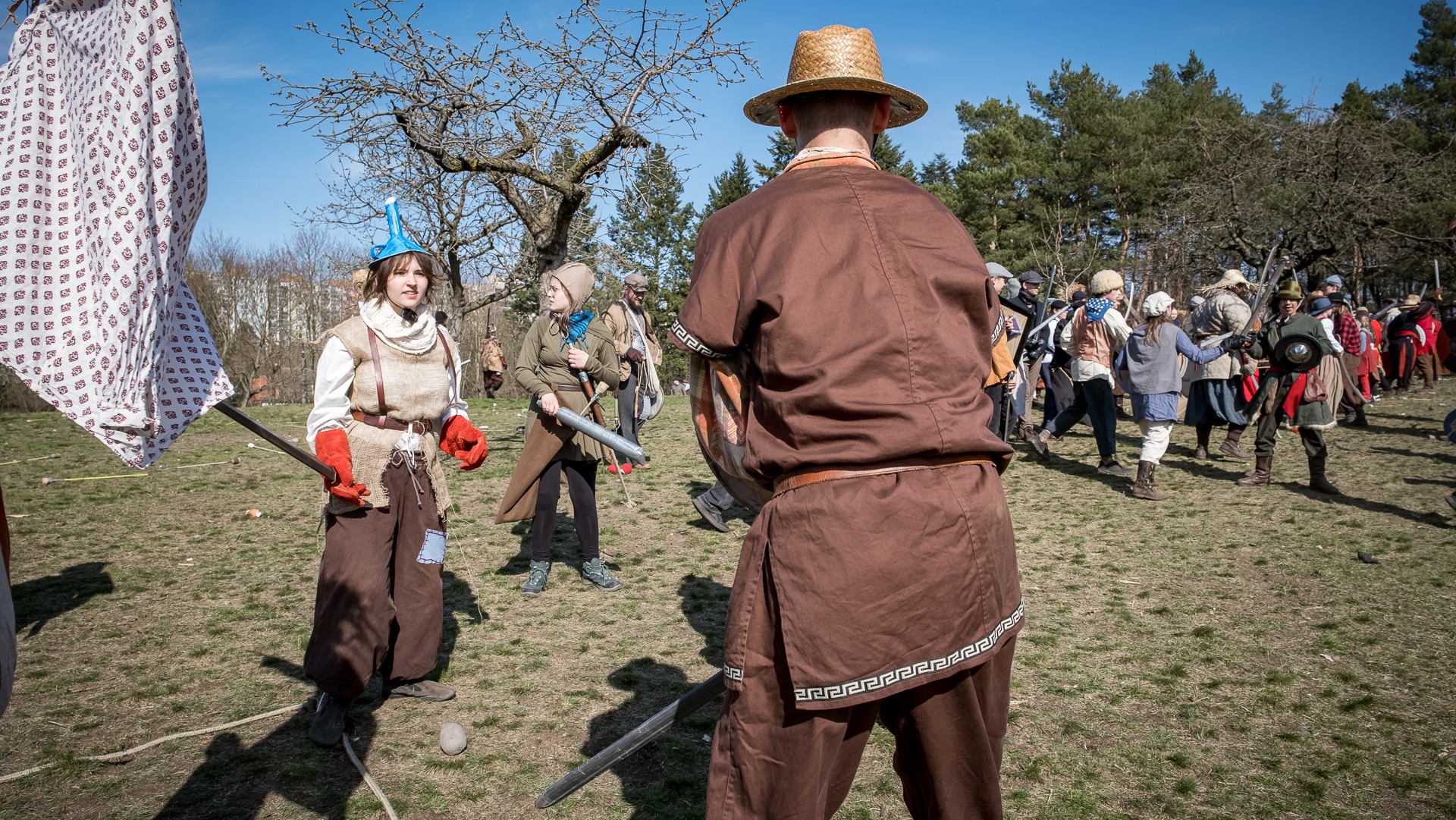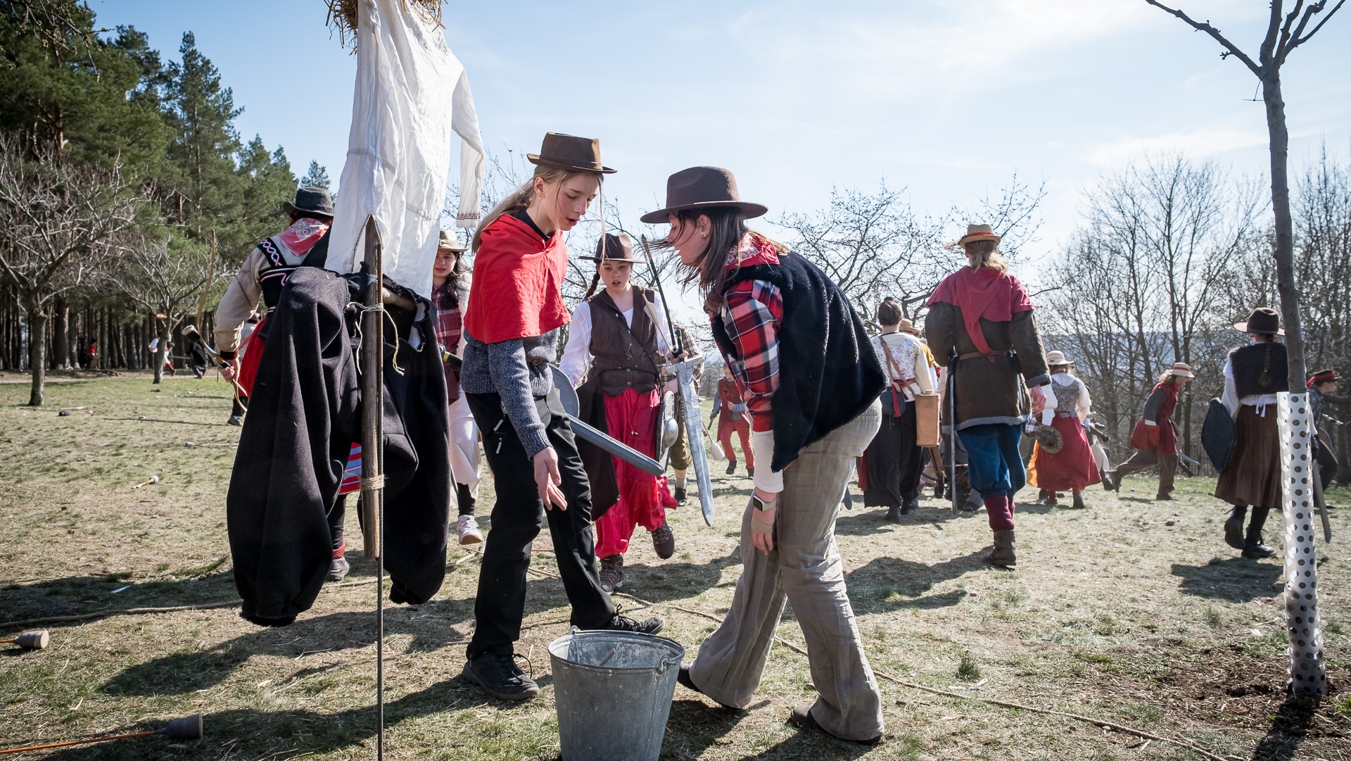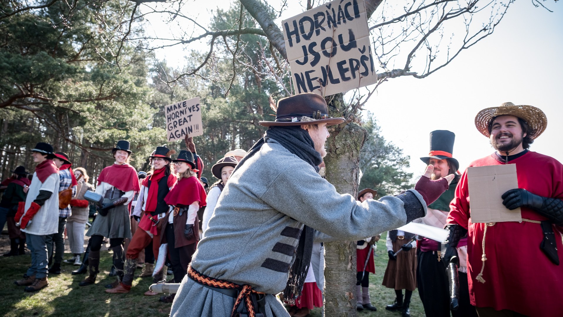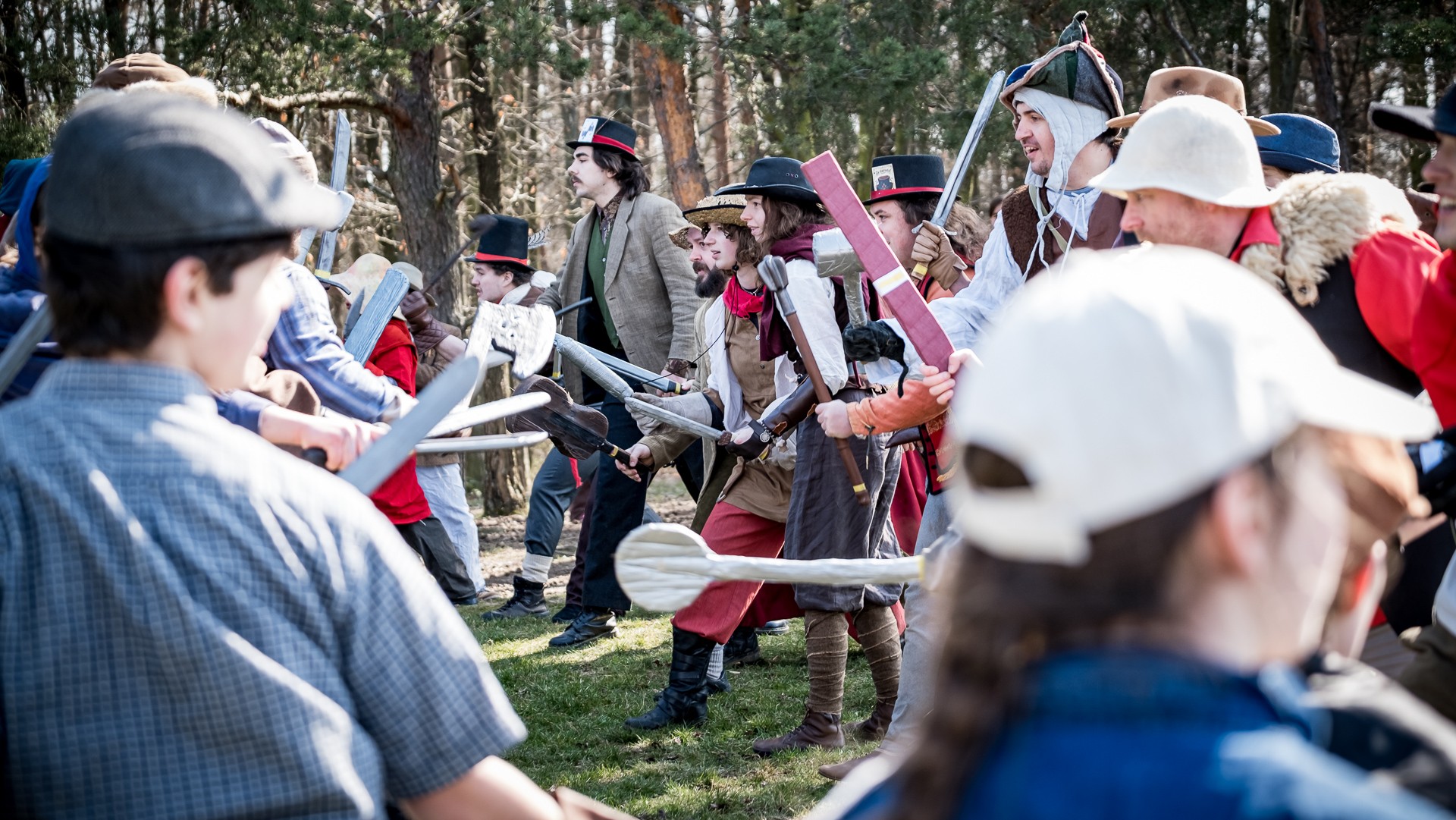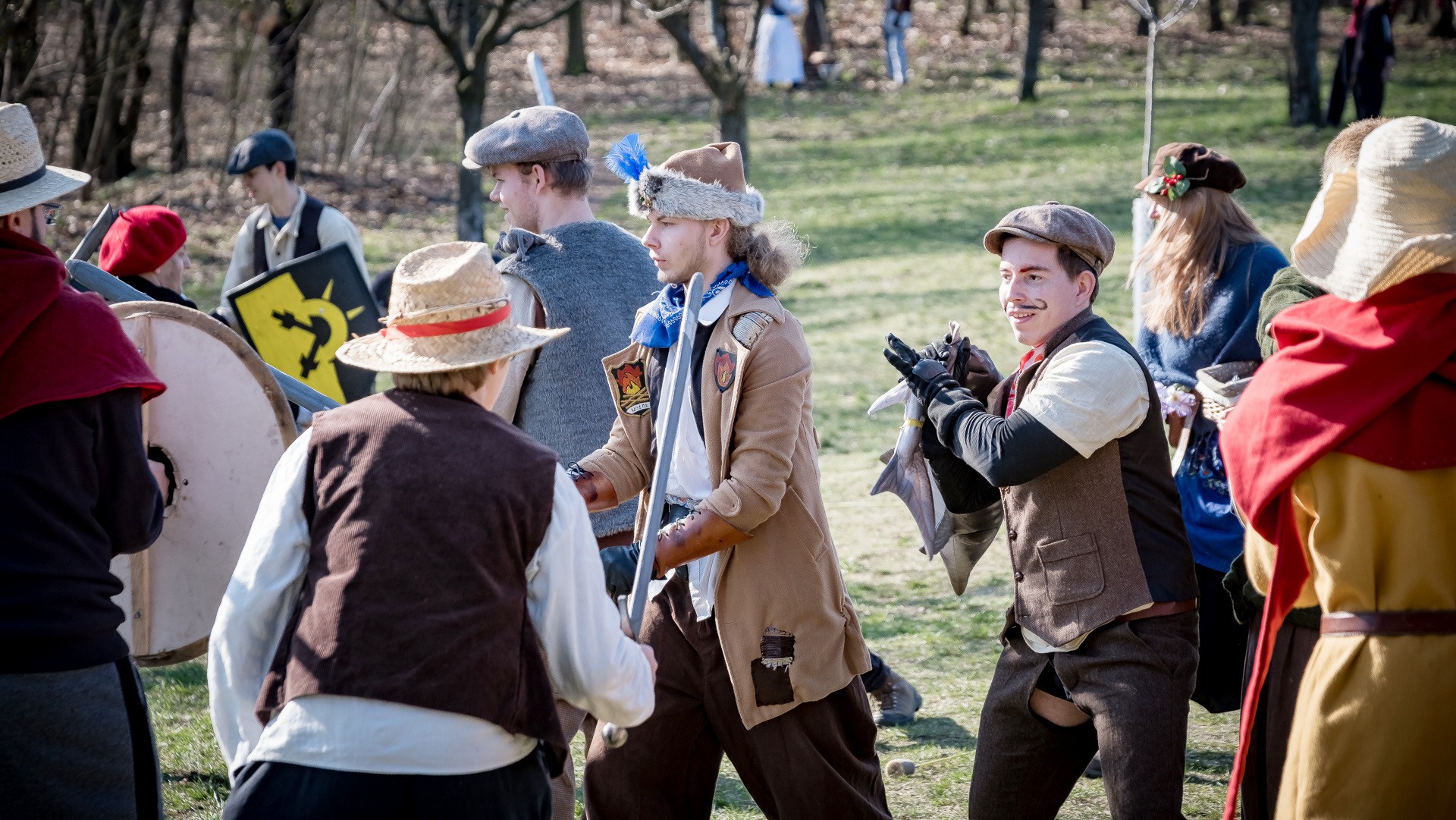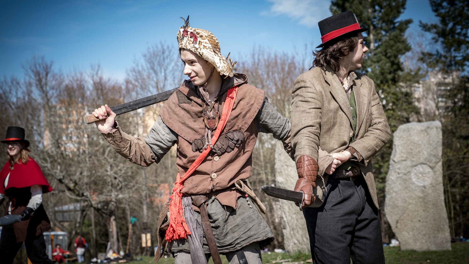A nejen to – vesnice je rozdělená na dvě části. Ti, co žijí na kopci, nedají dopustit na své klobouky. Ti, co bydlí dole pod kopcem, zas chodí zásadně v čepicích. A jak už to tak bývá, jedna strana pohlíží na tu druhou svrchu, zatímco dole se šeptá o namyšlených “kloboučnících”. Dávný důvod téhle nevraživosti už všichni dávno zapomněli – ale spory a žabomyší války přetrvaly.