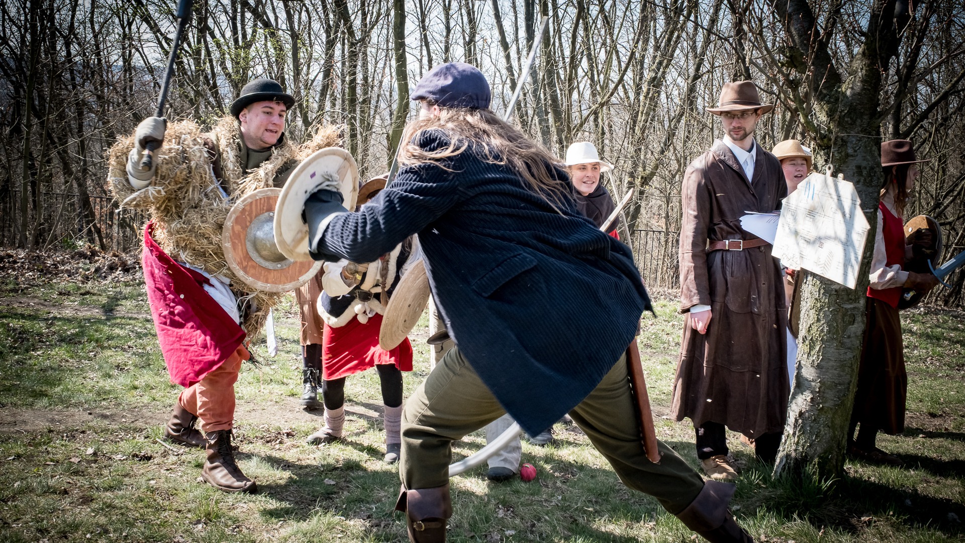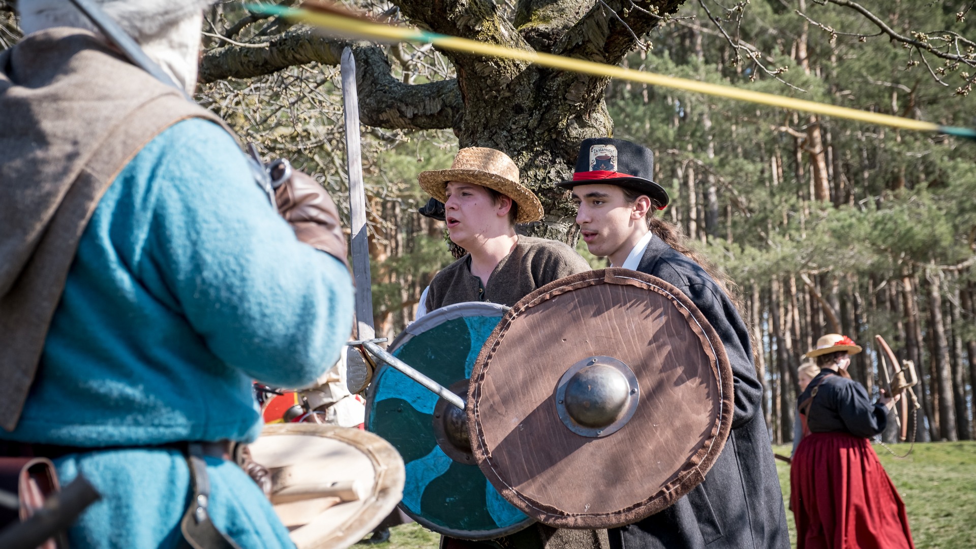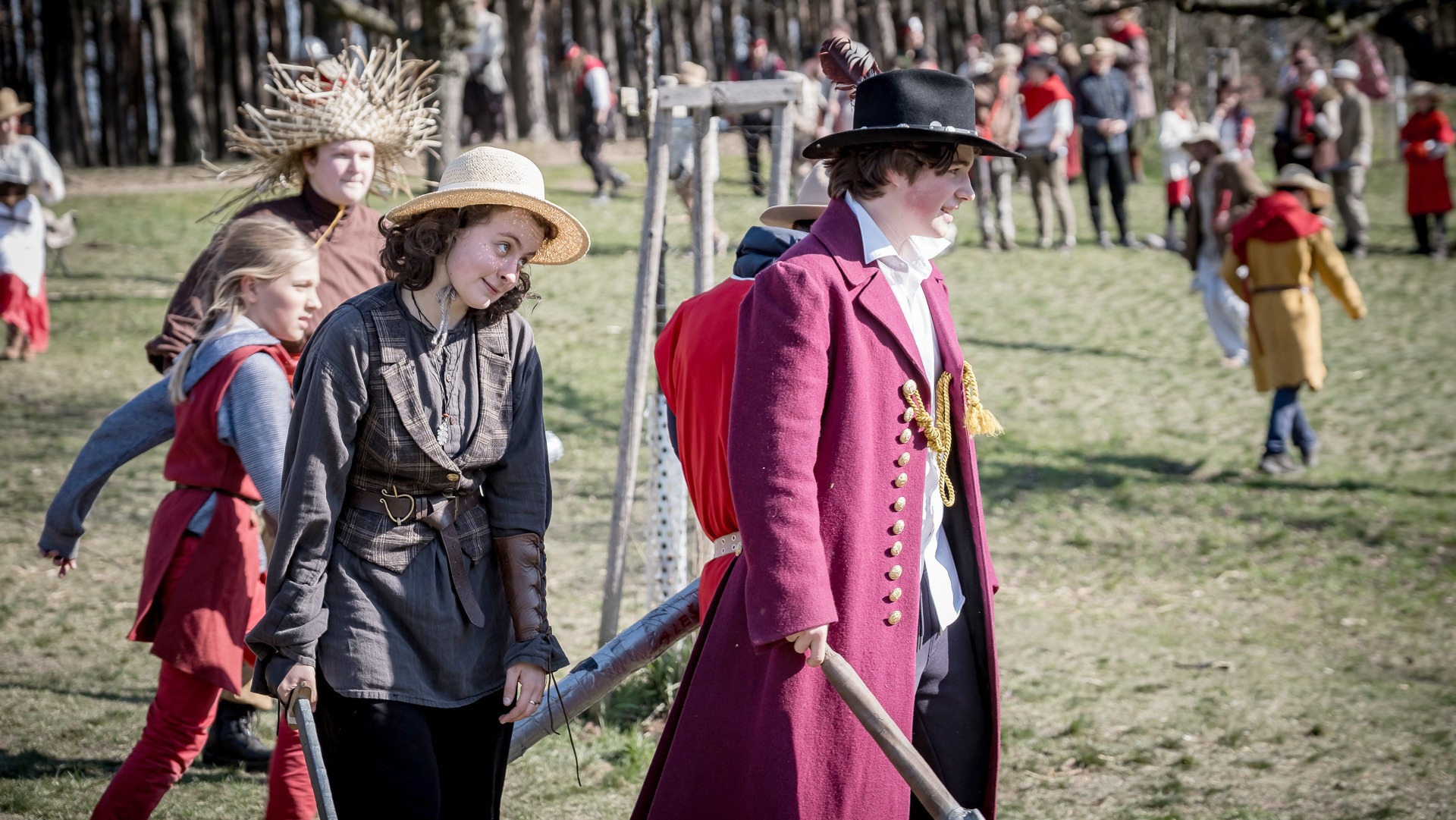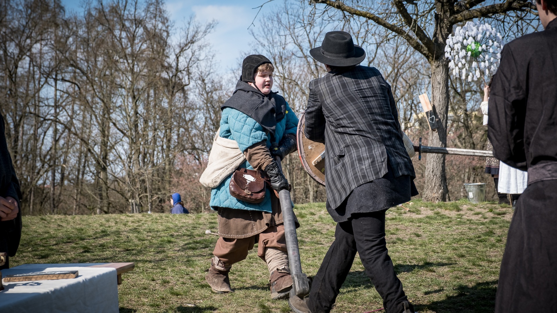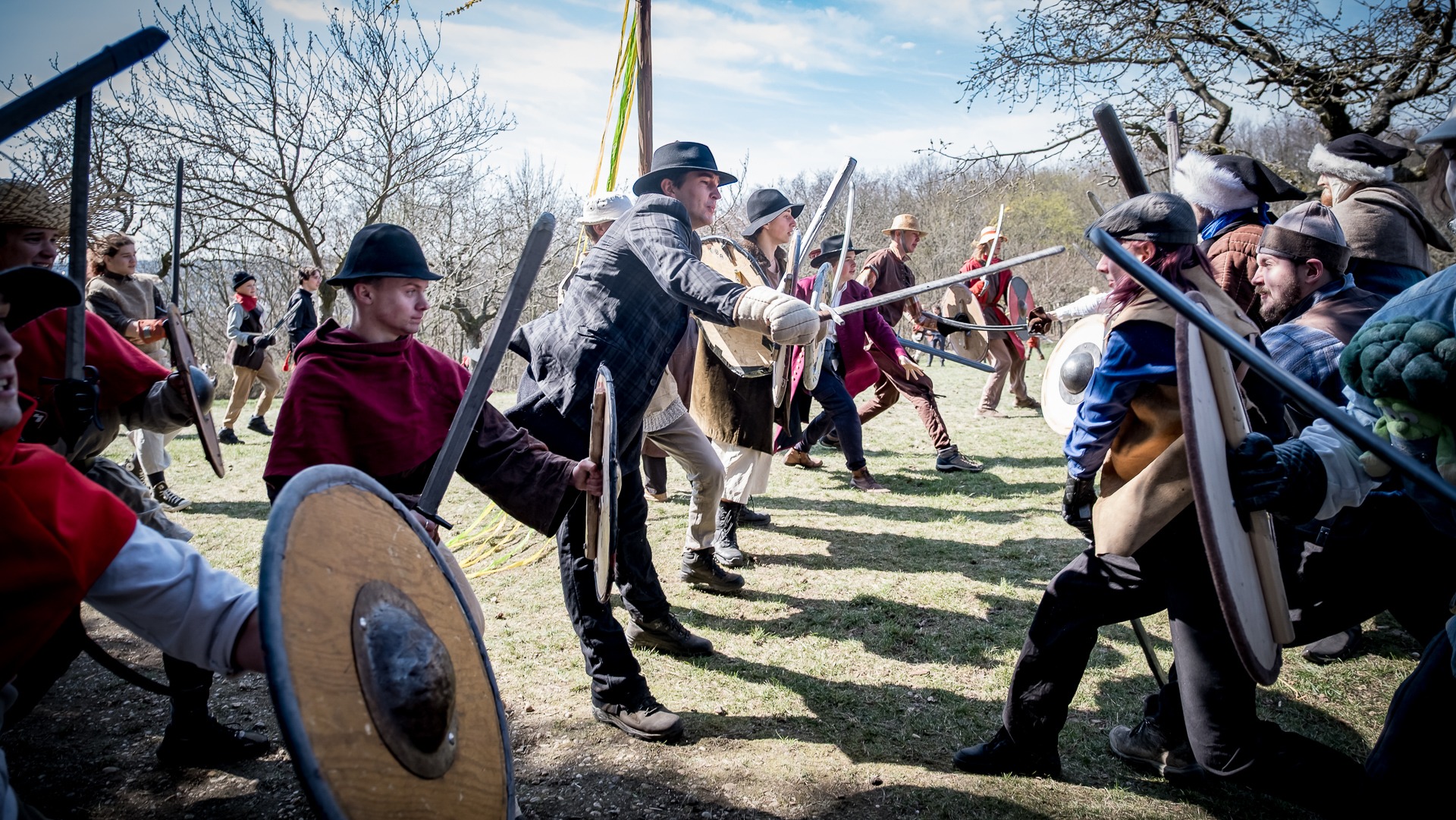 A nejen to – vesnice je rozdělená na dvě části. Ti, co žijí na kopci, nedají dopustit na své klobouky. Ti, co bydlí dole pod kopcem, zas chodí zásadně v čepicích. A jak už to tak bývá, jedna strana pohlíží na tu druhou svrchu, zatímco dole se šeptá o namyšlených “kloboučnících”. Dávný důvod téhle nevraživosti už všichni dávno zapomněli – ale spory a žabomyší války přetrvaly.