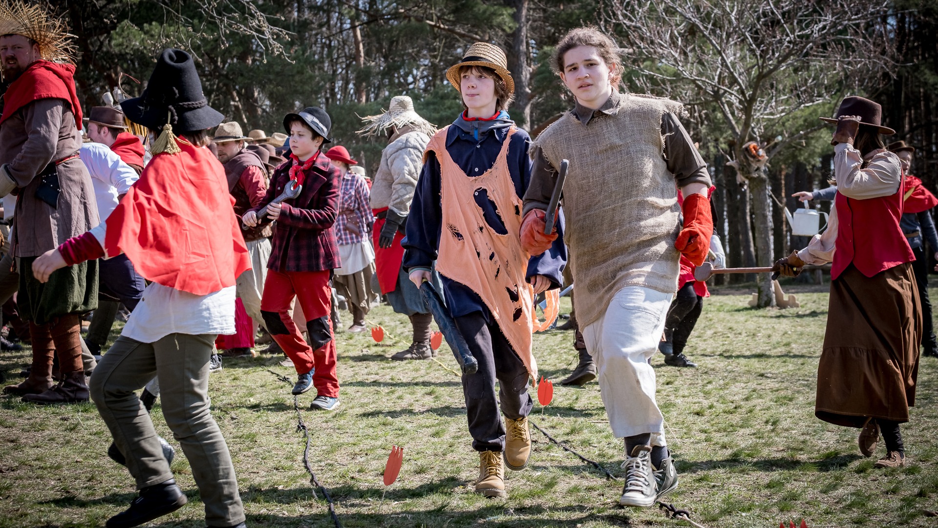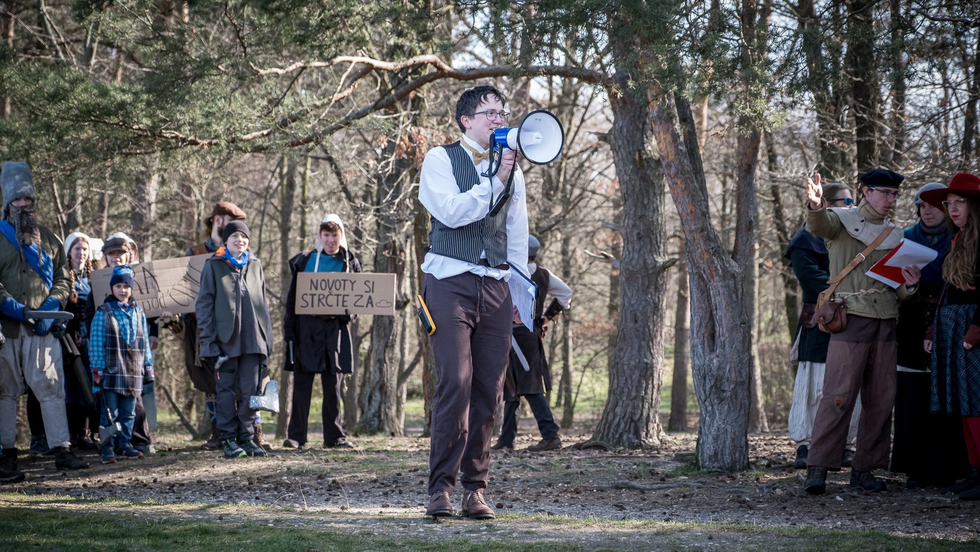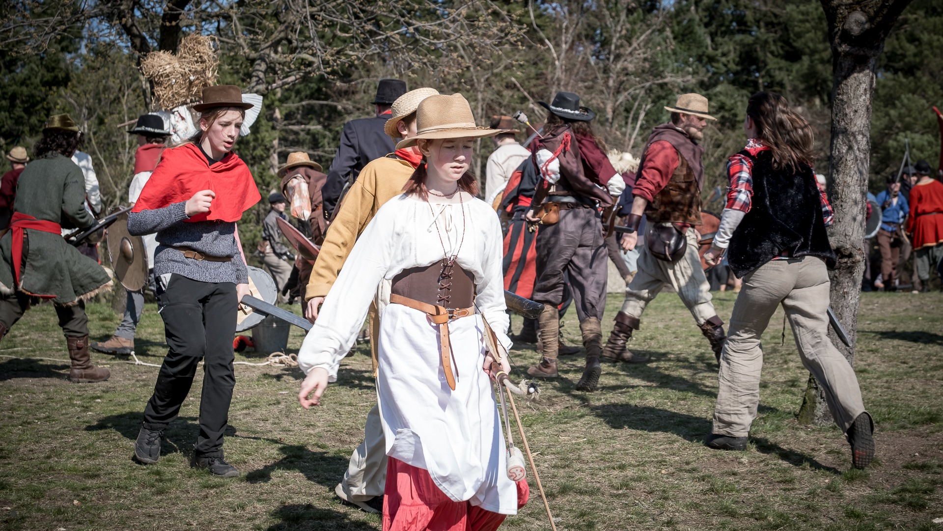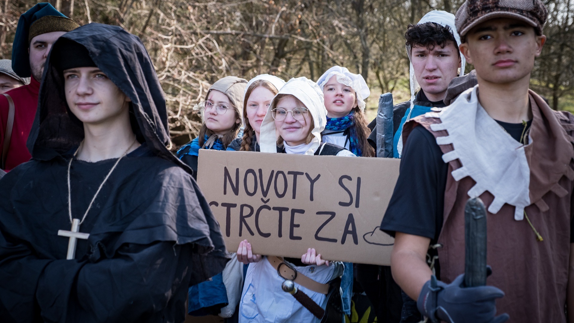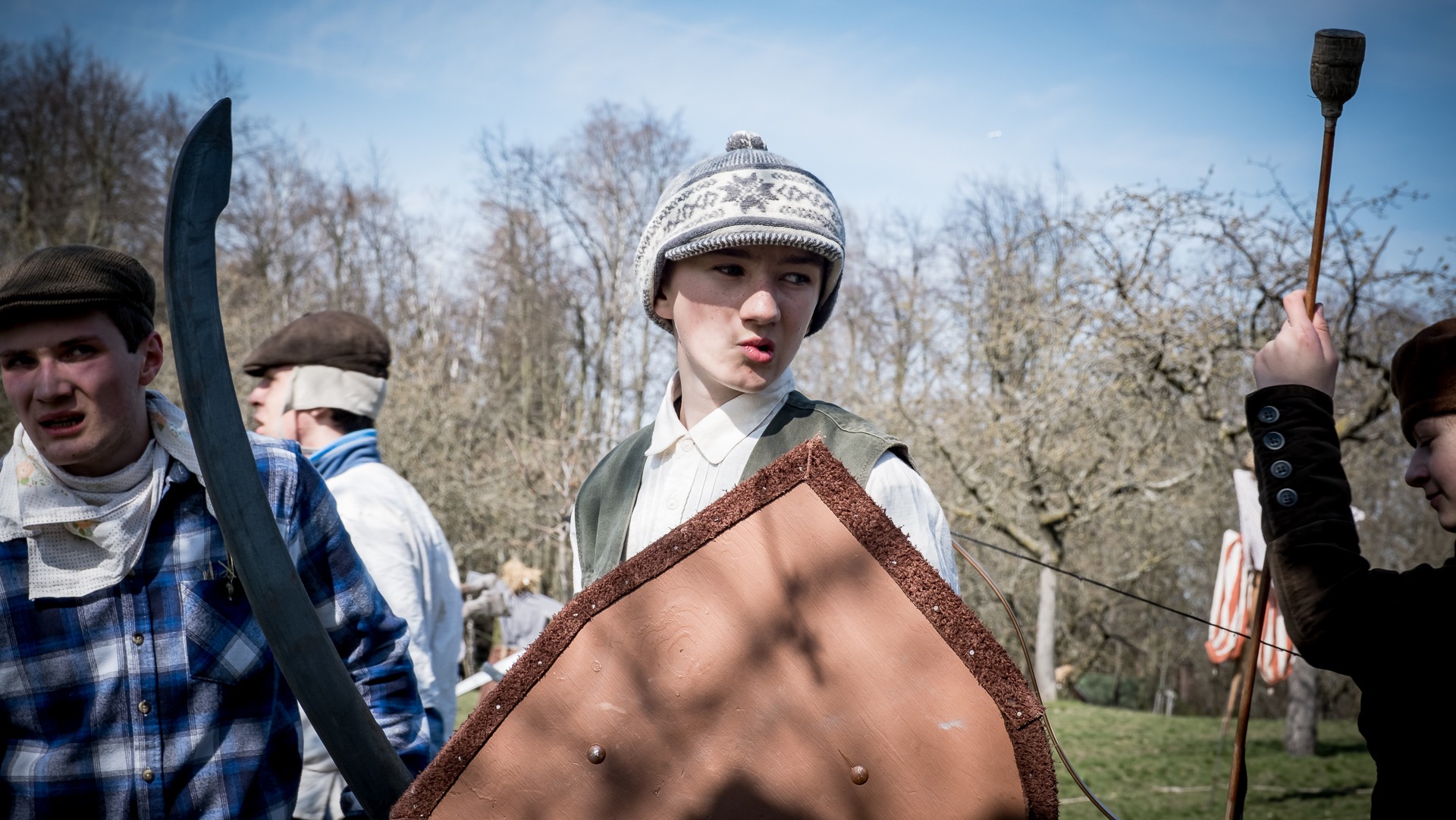 A nejen to – vesnice je rozdělená na dvě části. Ti, co žijí na kopci, nedají dopustit na své klobouky. Ti, co bydlí dole pod kopcem, zas chodí zásadně v čepicích. A jak už to tak bývá, jedna strana pohlíží na tu druhou svrchu, zatímco dole se šeptá o namyšlených “kloboučnících”. Dávný důvod téhle nevraživosti už všichni dávno zapomněli – ale spory a žabomyší války přetrvaly.