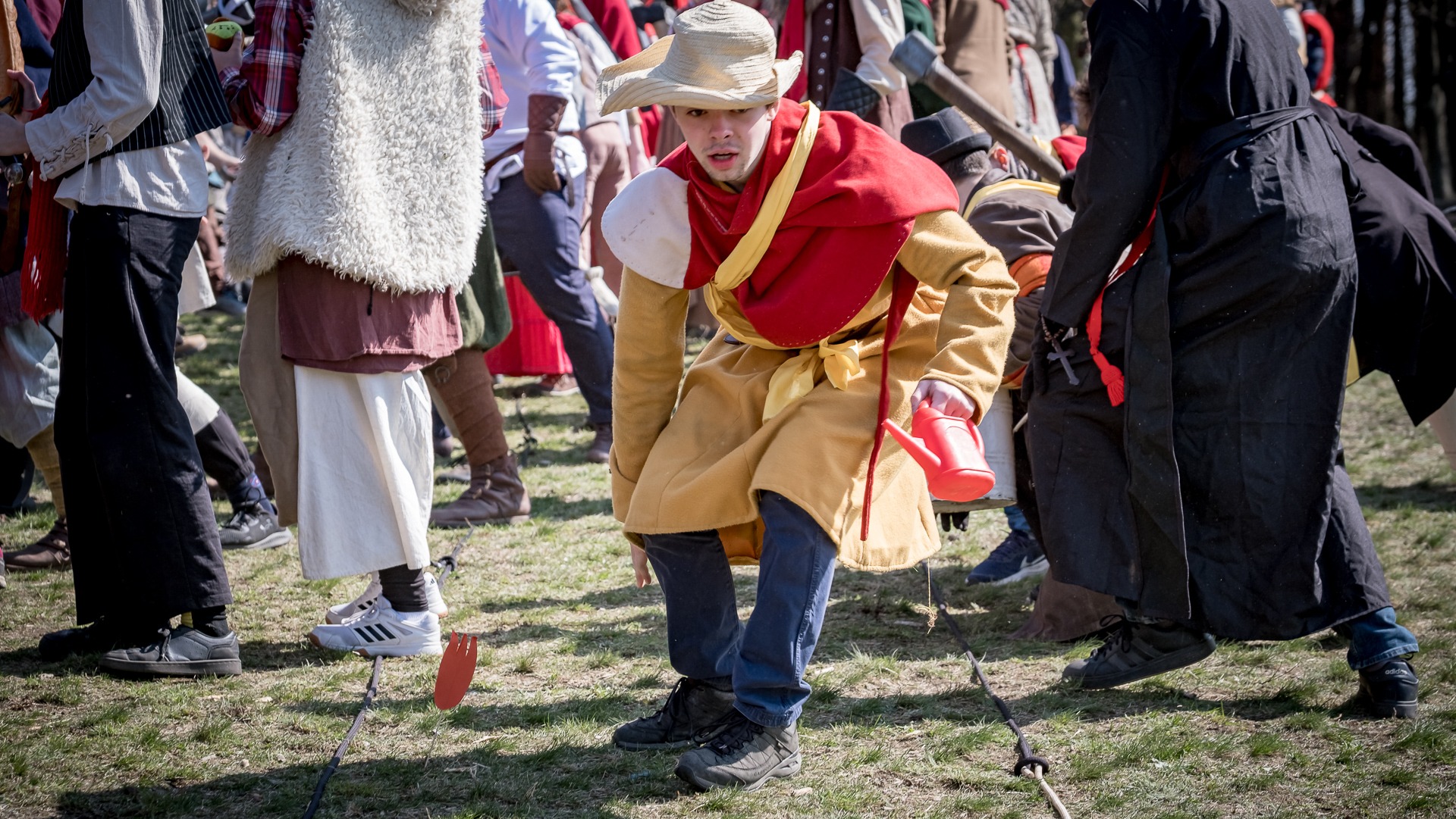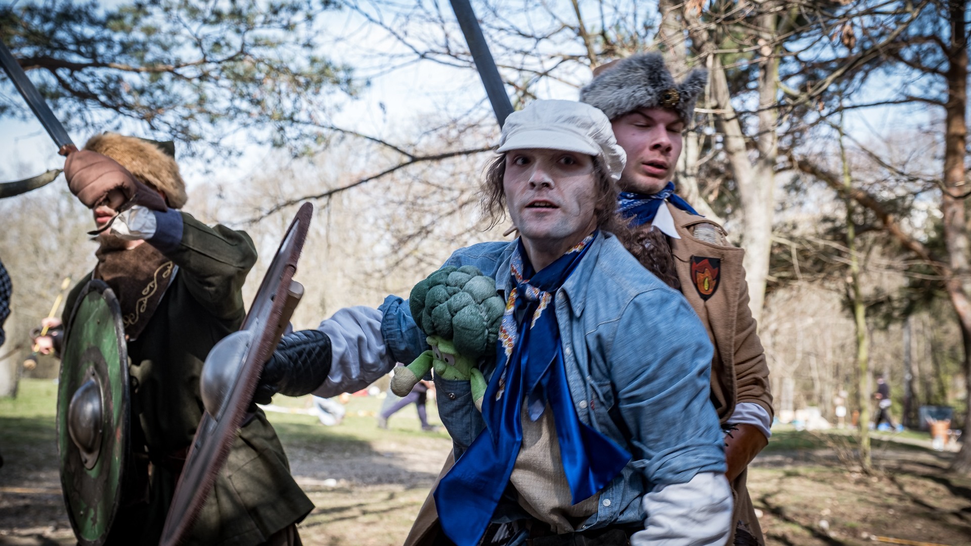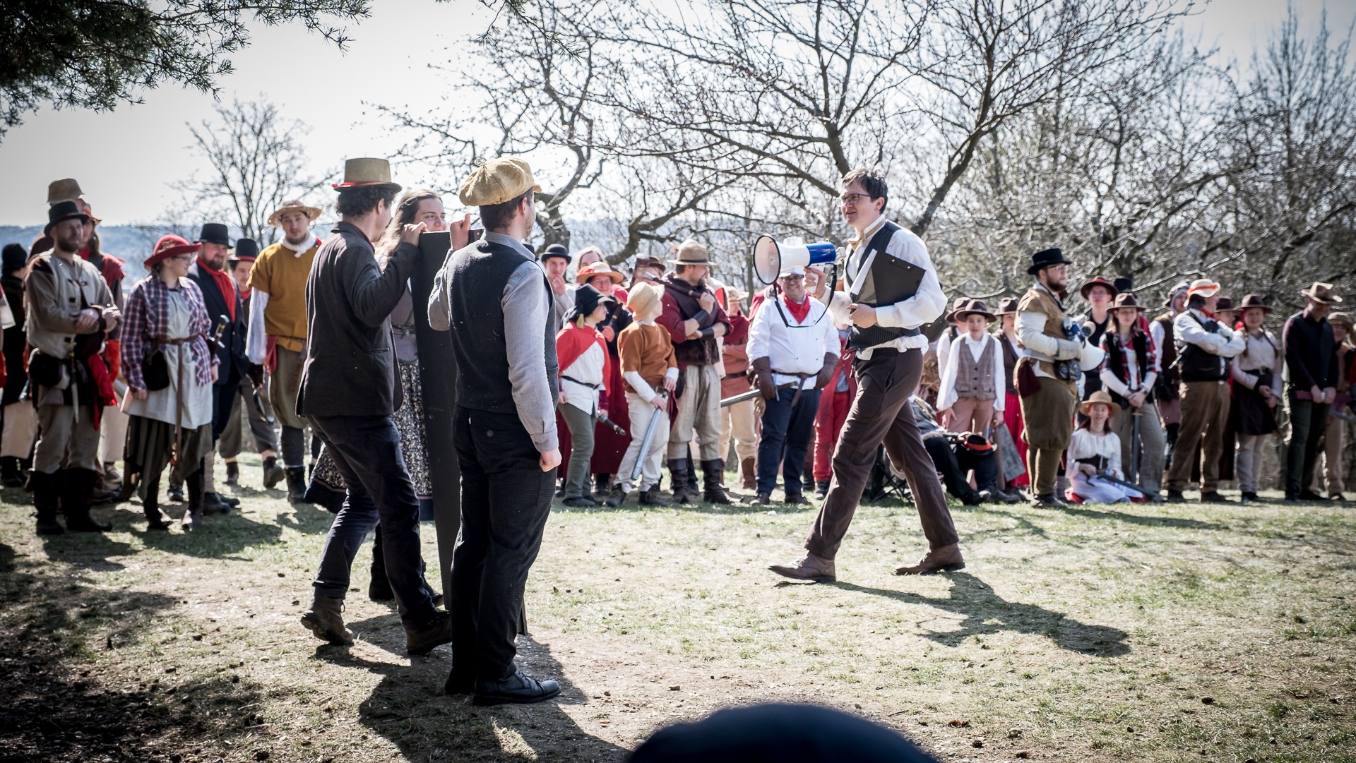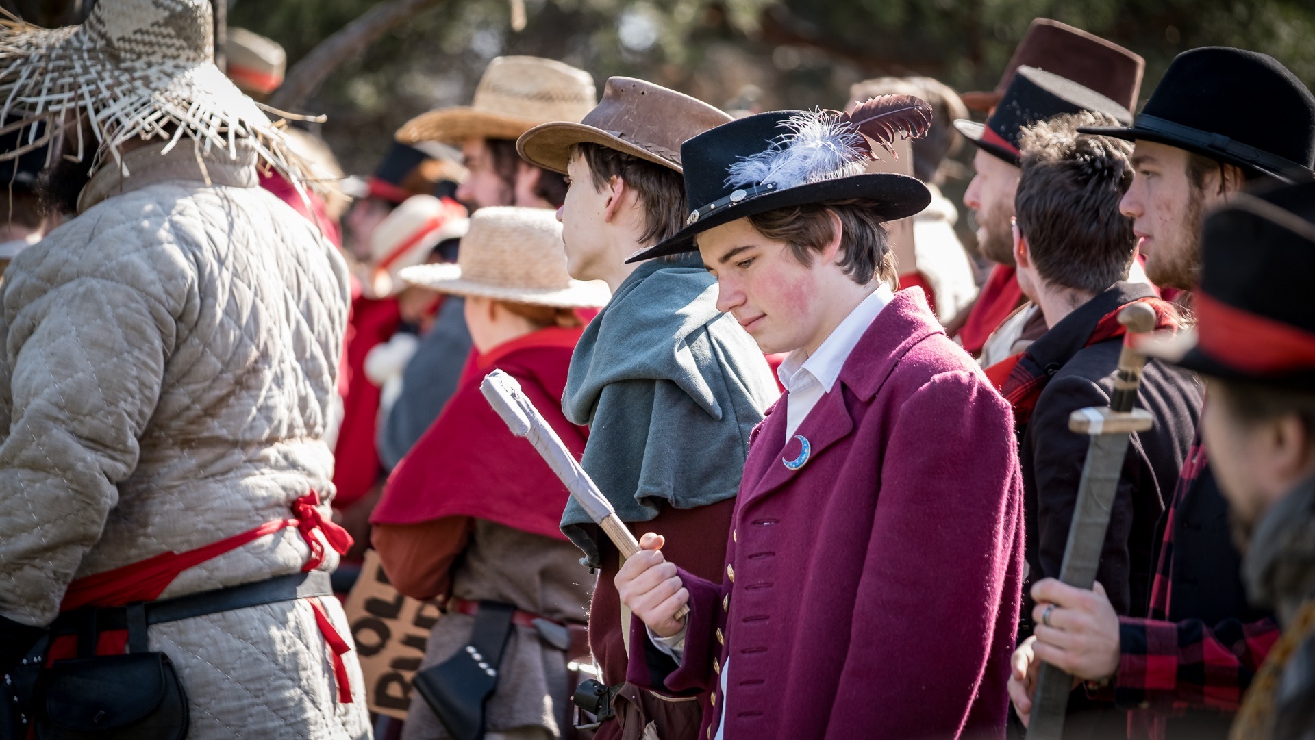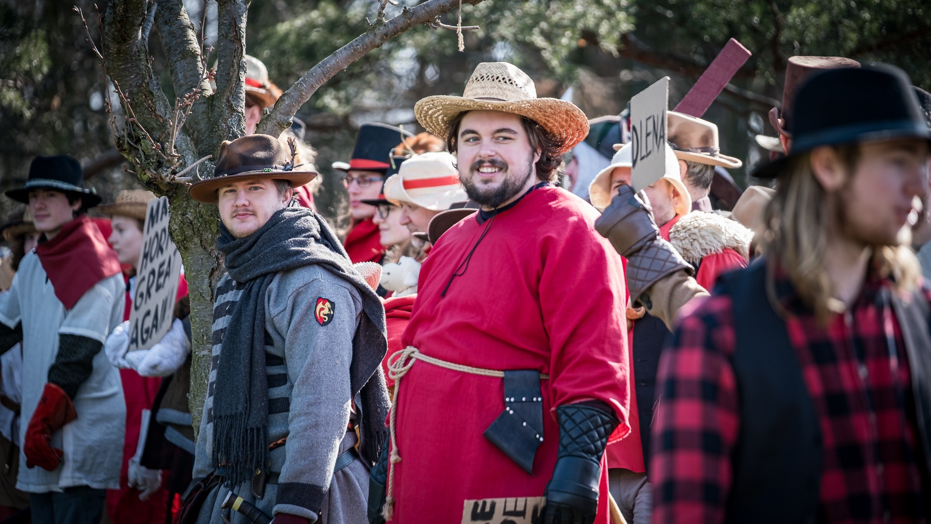 A nejen to – vesnice je rozdělená na dvě části. Ti, co žijí na kopci, nedají dopustit na své klobouky. Ti, co bydlí dole pod kopcem, zas chodí zásadně v čepicích. A jak už to tak bývá, jedna strana pohlíží na tu druhou svrchu, zatímco dole se šeptá o namyšlených “kloboučnících”. Dávný důvod téhle nevraživosti už všichni dávno zapomněli – ale spory a žabomyší války přetrvaly.