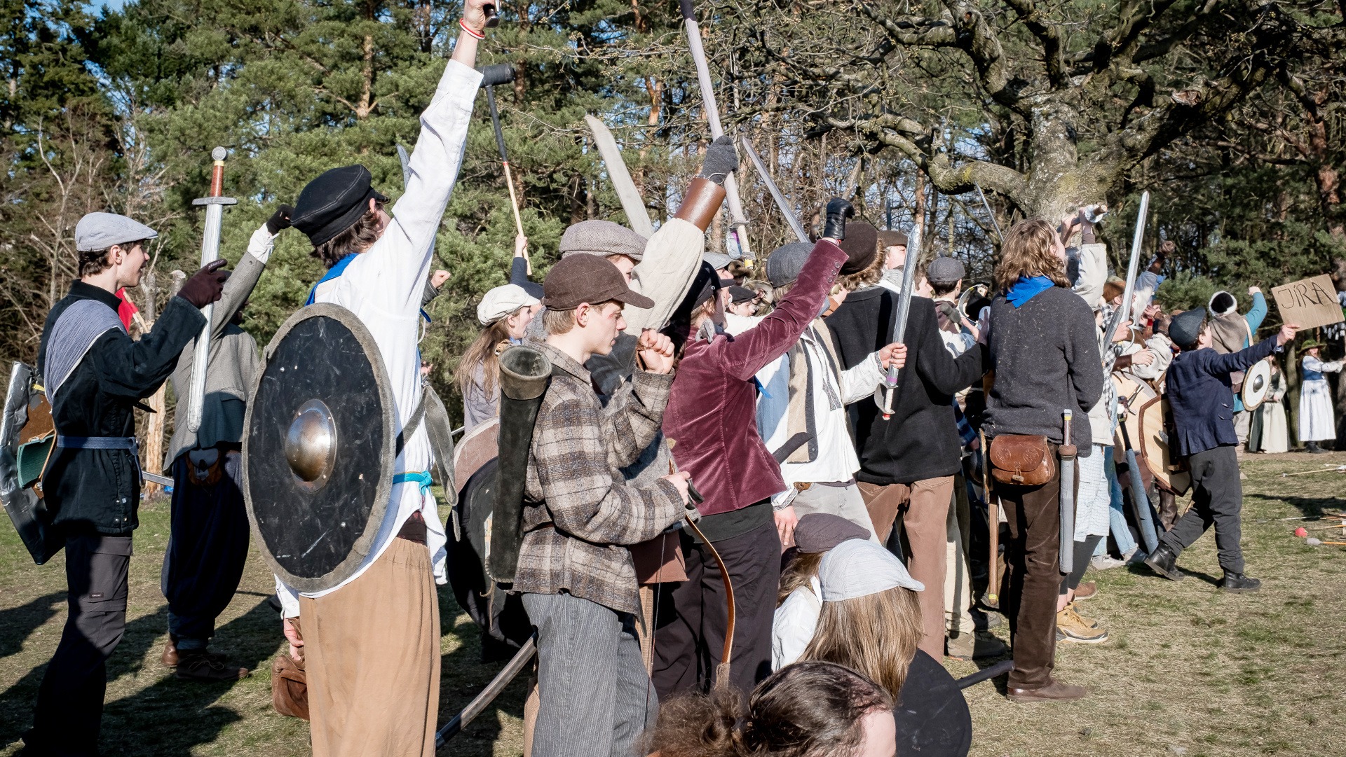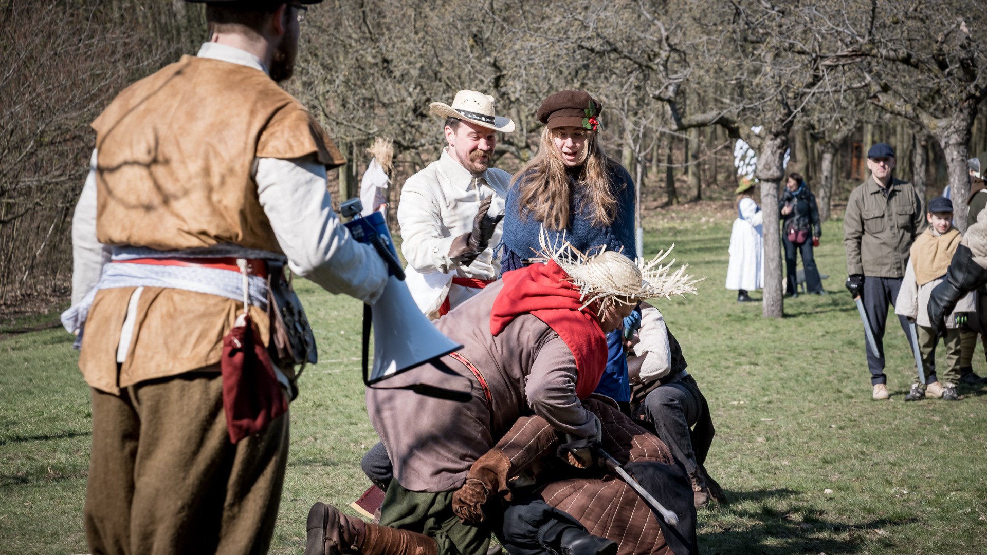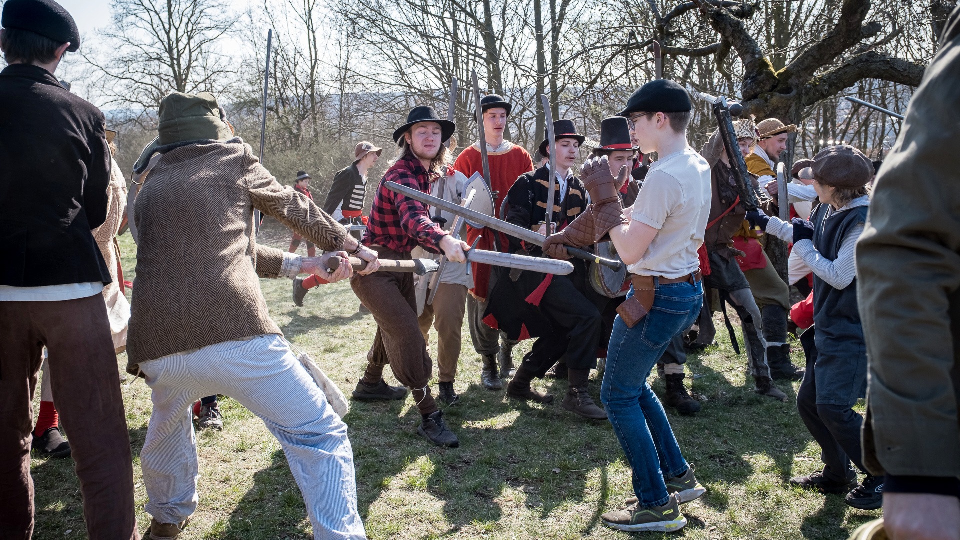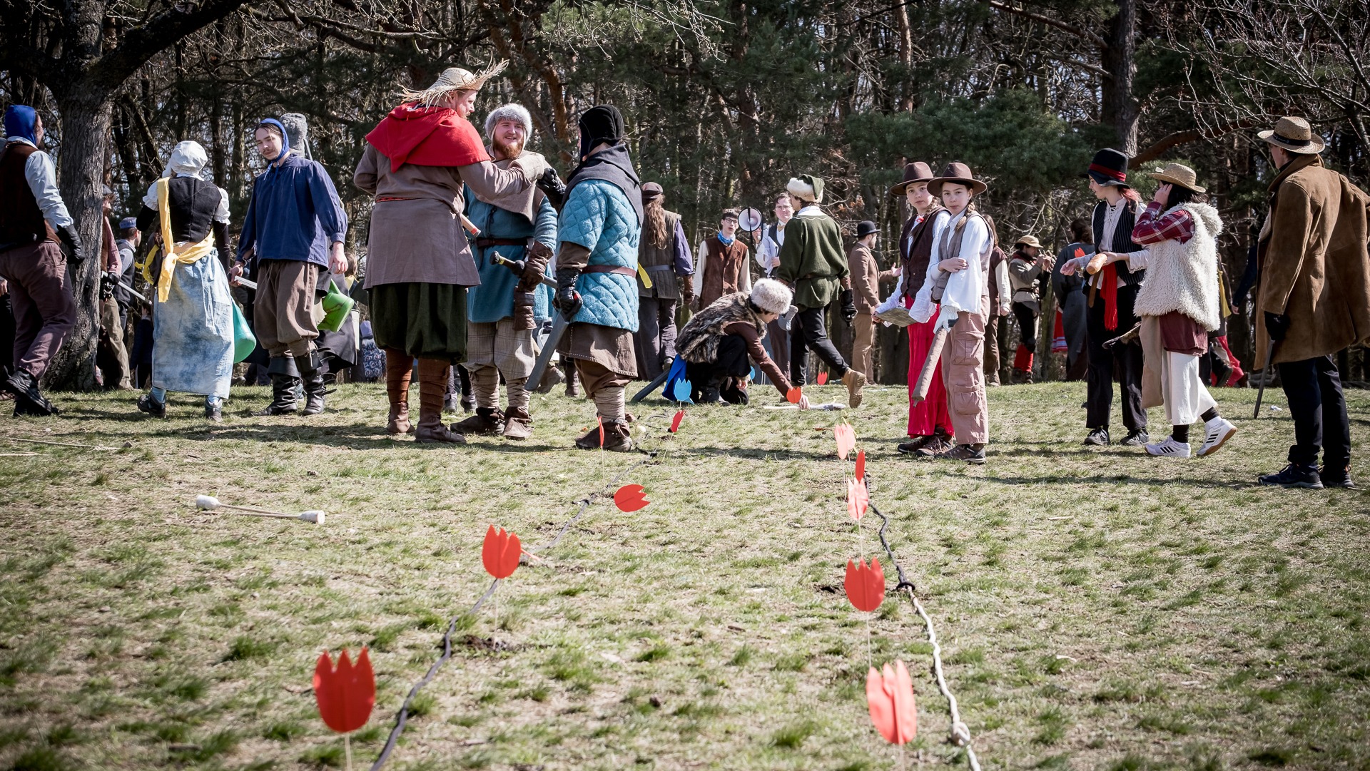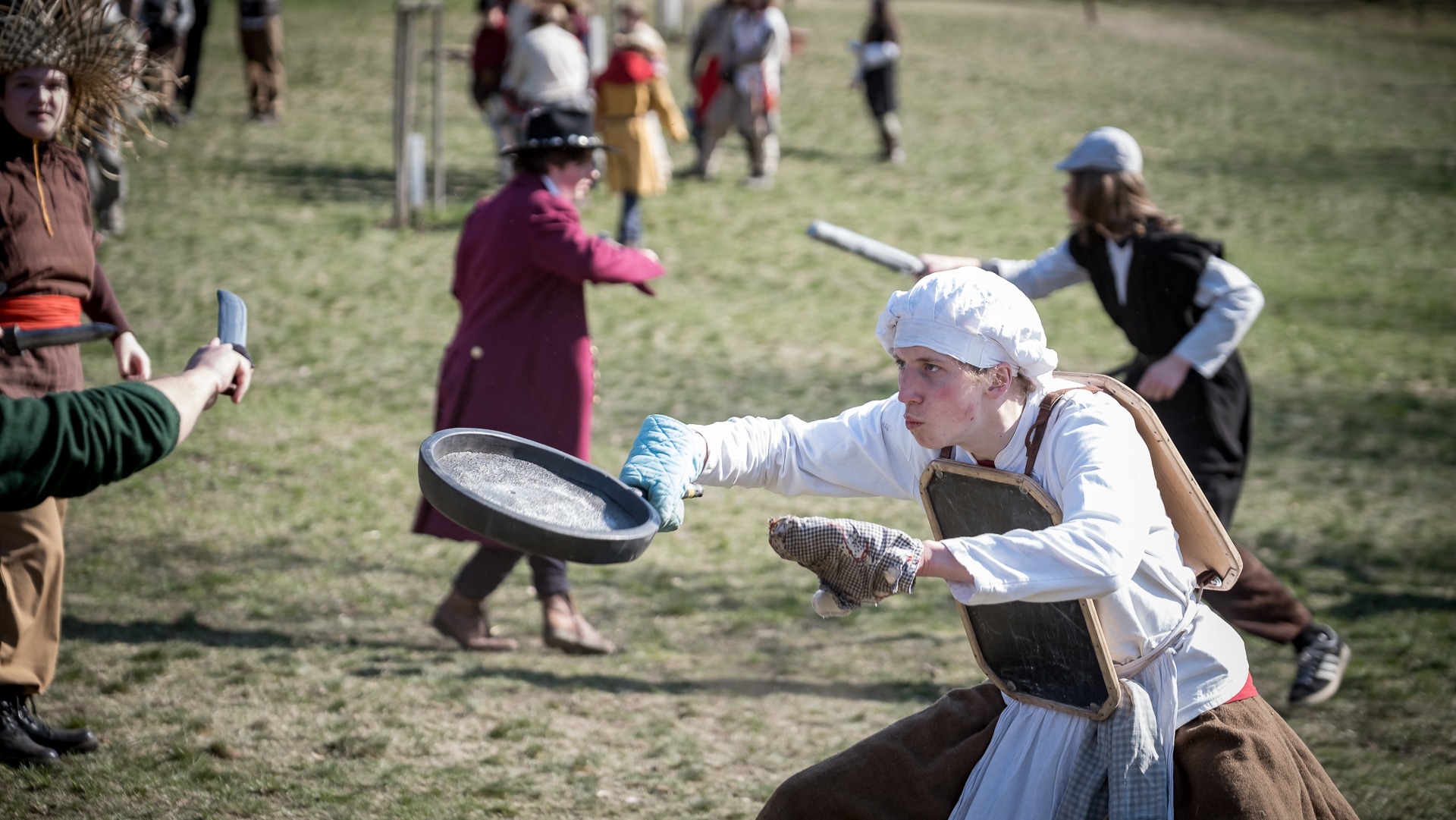 A nejen to – vesnice je rozdělená na dvě části. Ti, co žijí na kopci, nedají dopustit na své klobouky. Ti, co bydlí dole pod kopcem, zas chodí zásadně v čepicích. A jak už to tak bývá, jedna strana pohlíží na tu druhou svrchu, zatímco dole se šeptá o namyšlených “kloboučnících”. Dávný důvod téhle nevraživosti už všichni dávno zapomněli – ale spory a žabomyší války přetrvaly.